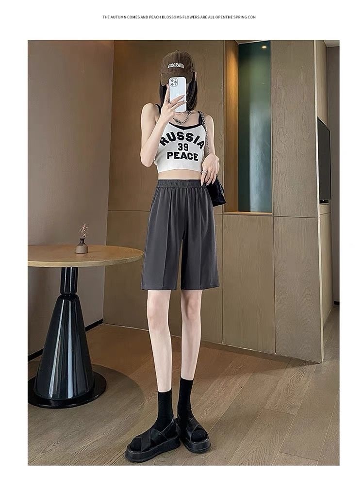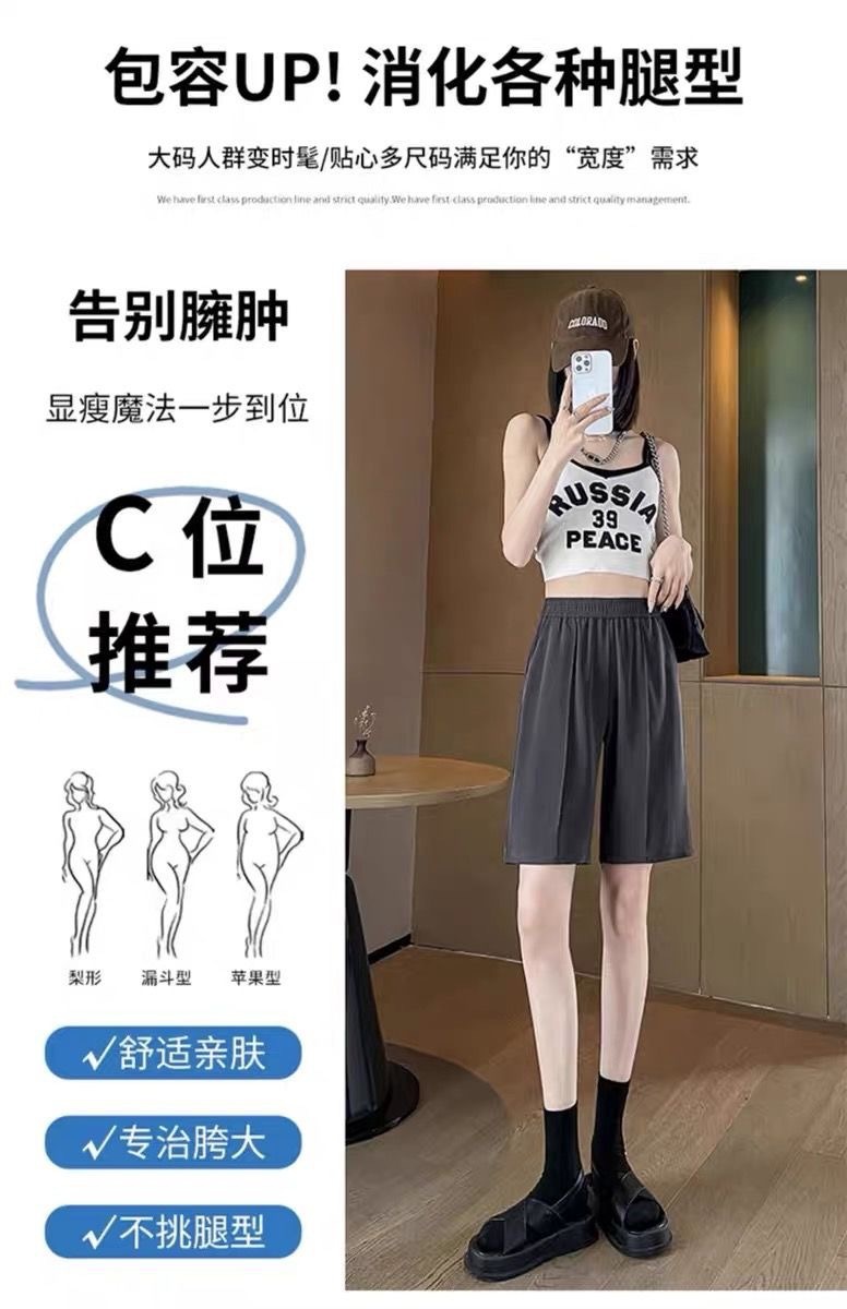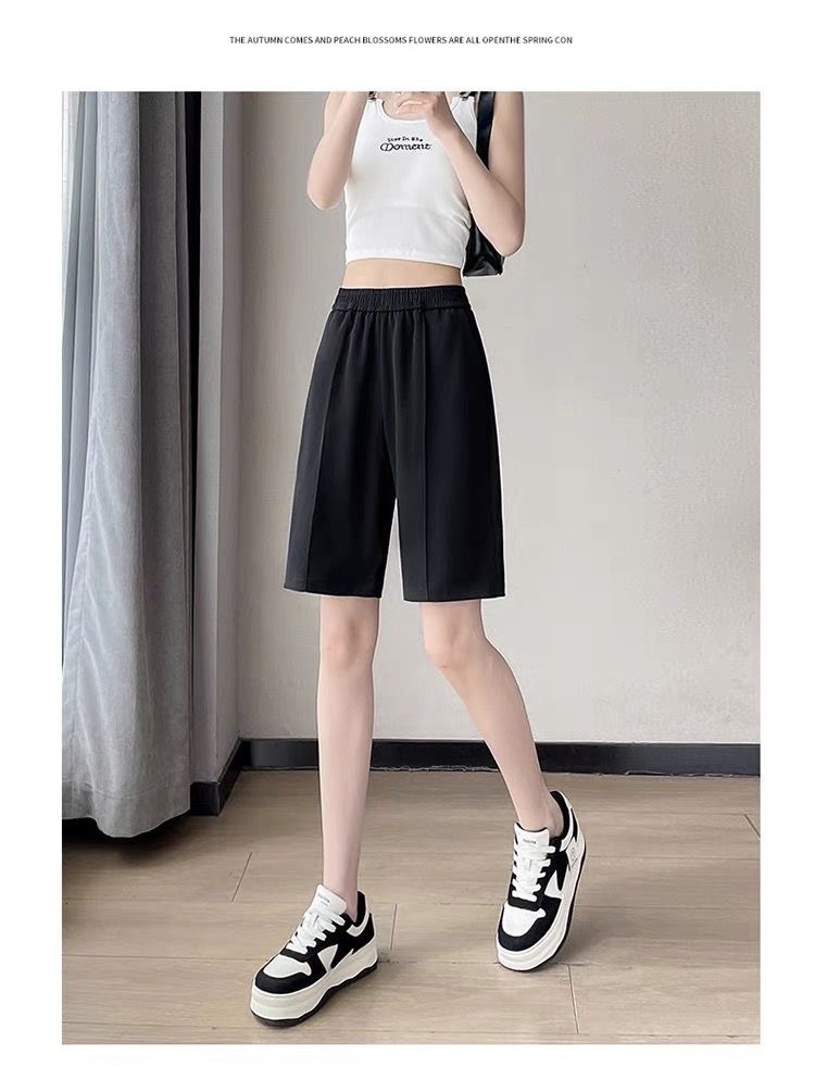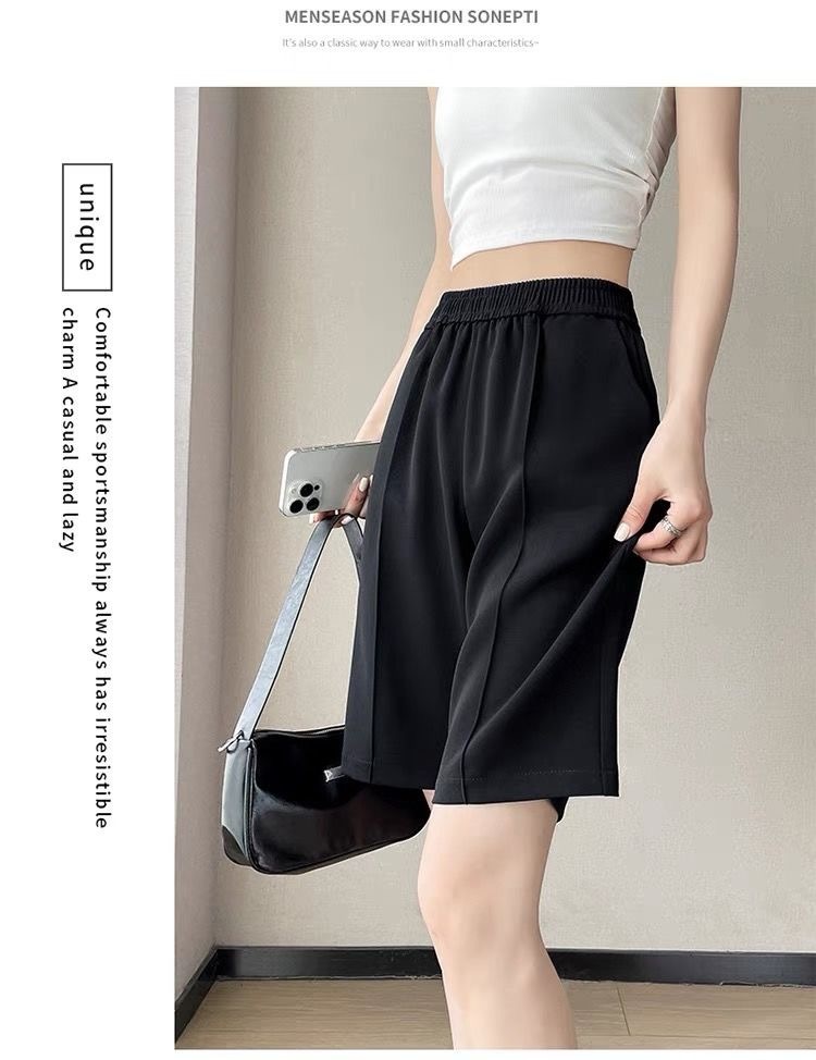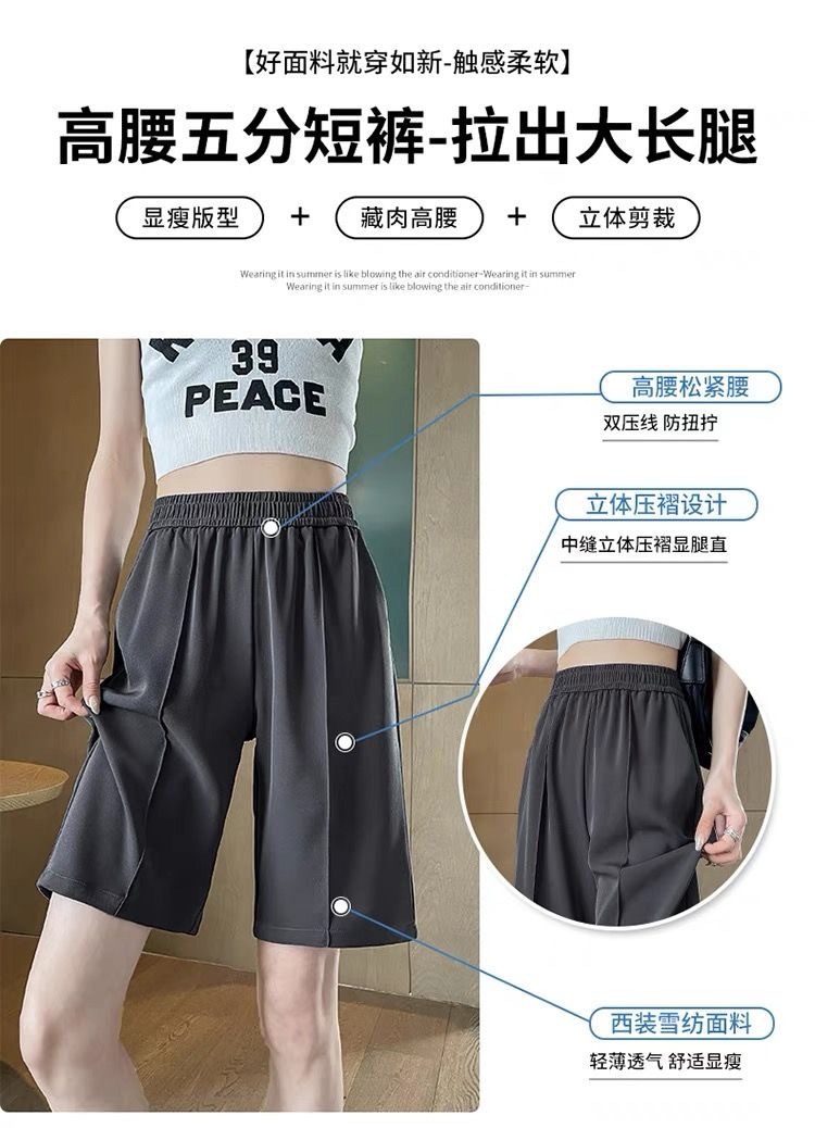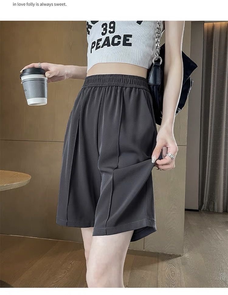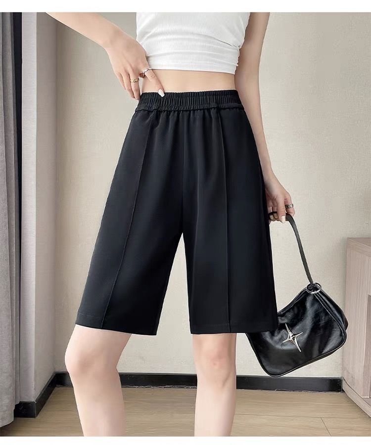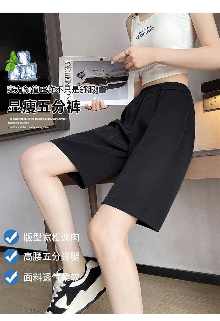 검은 세트 반바지 여성 2025 년 여름 새로운 높은 허리 작은 캐주얼 느슨한 넓은 다리 바지스토어 가기