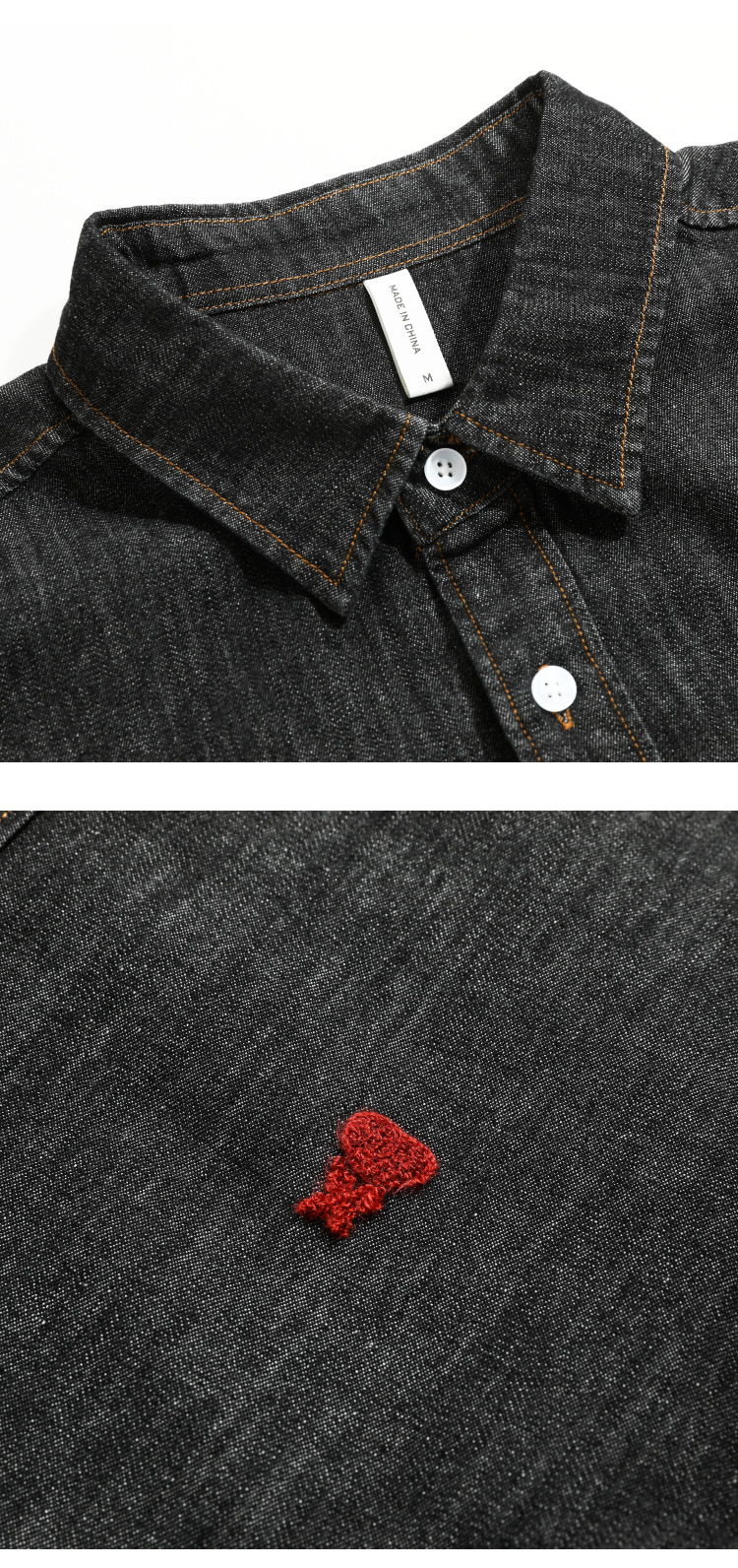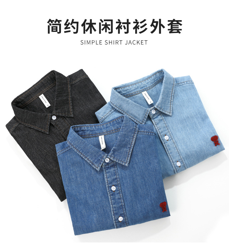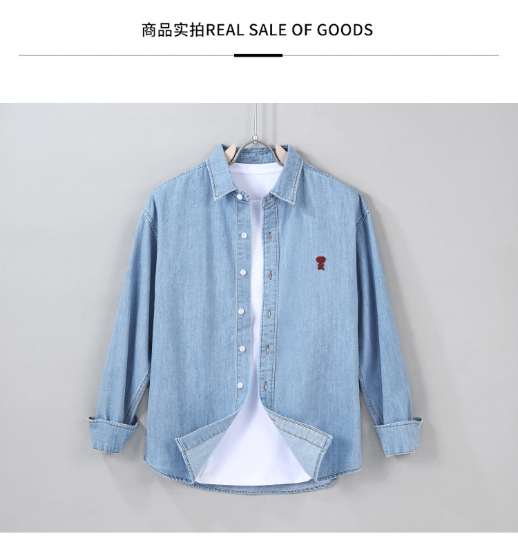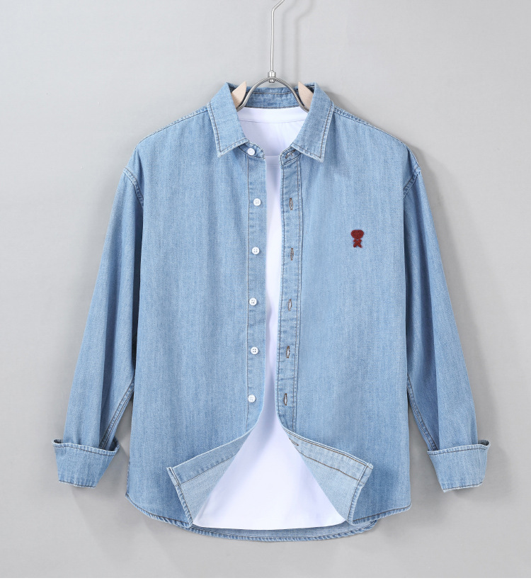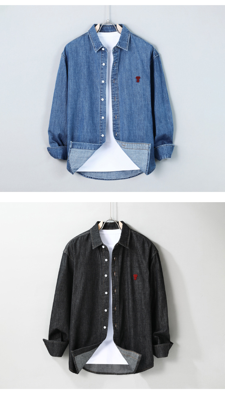 남자 봄과 가을 새 데님 긴팔 캐주얼 셔츠 간단한 자수 유행 루즈 올 매치 셔츠 8937스토어 가기