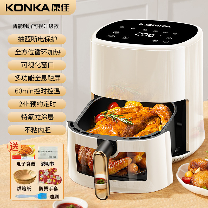 새로운 에어 프라이어 가정용 지능형 다기능 비주얼 터치 스크린 전기 프라이어 오일 프리 대용량 오븐 올인원 기계스토어 가기