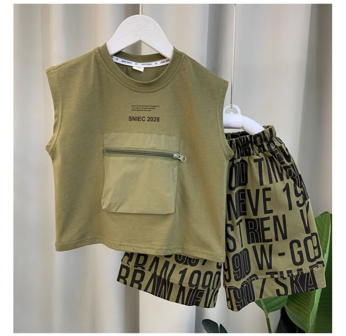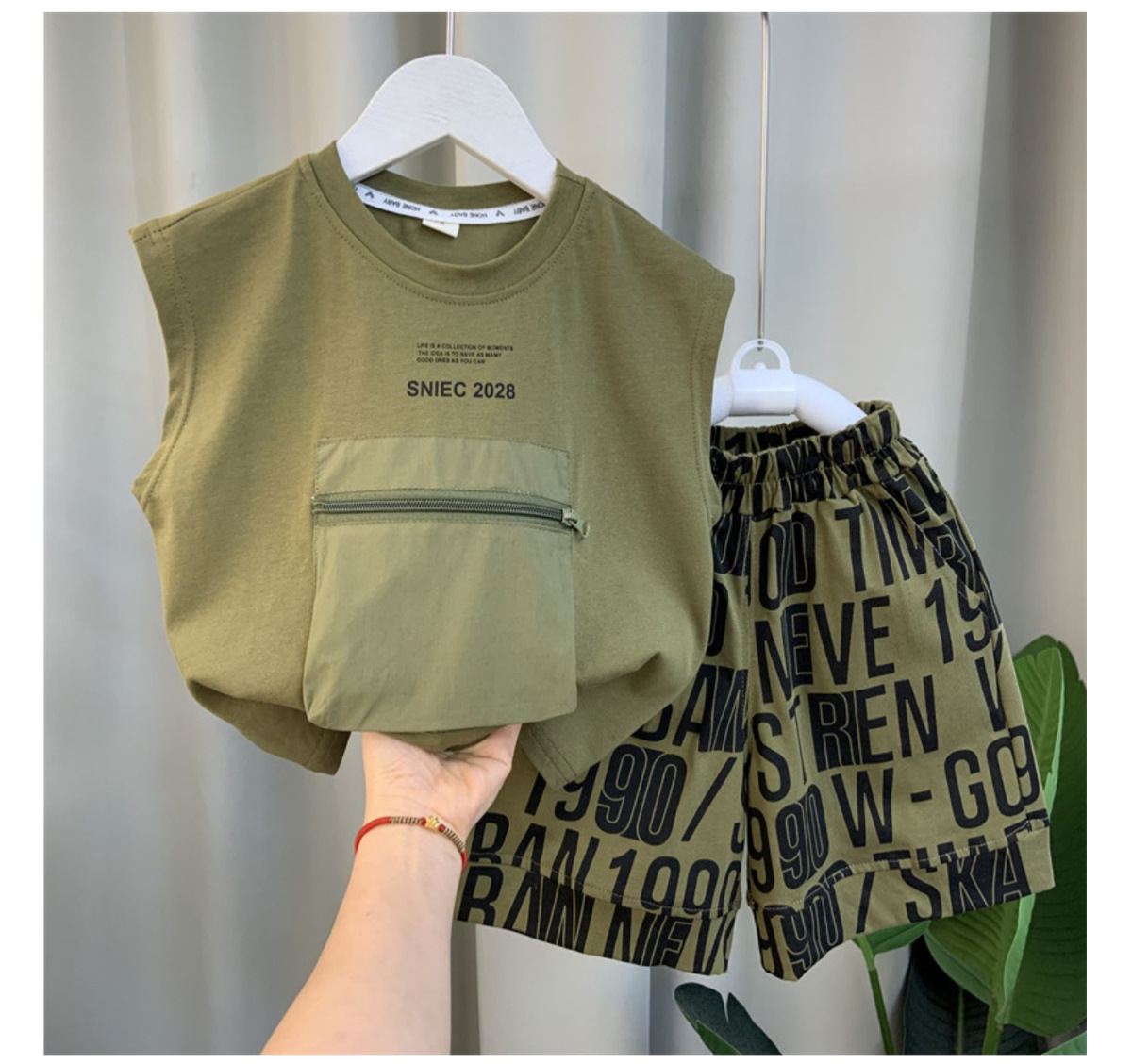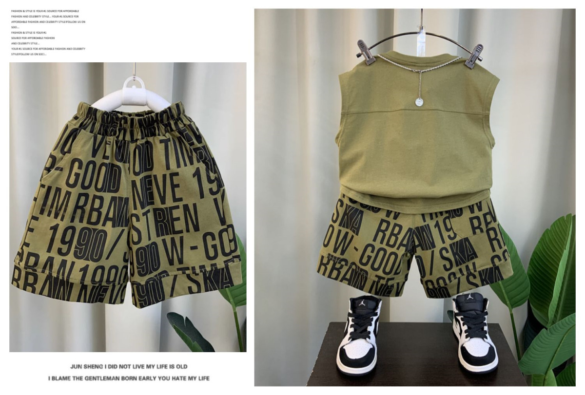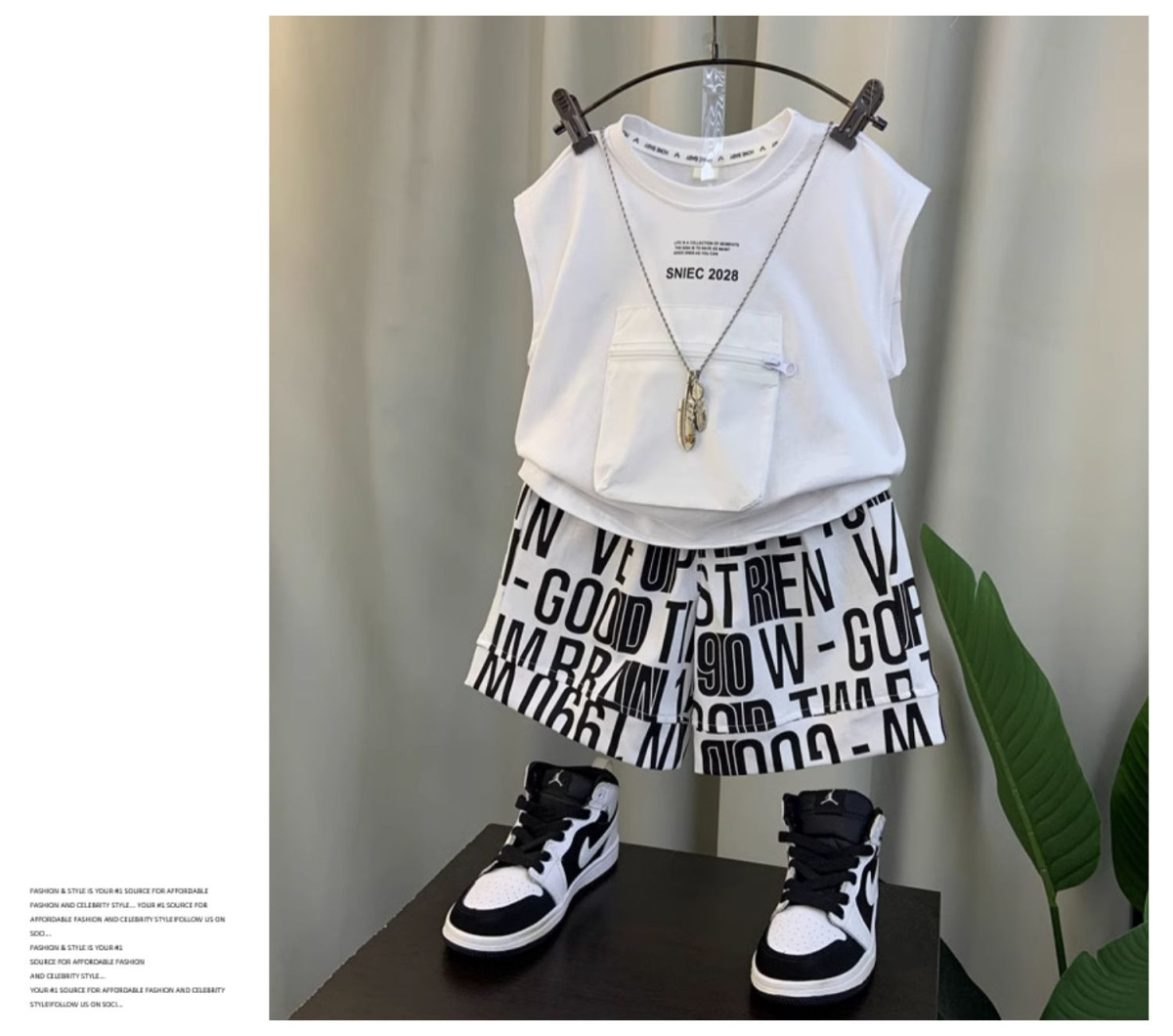 소년 여름 조끼 세트 2024 새로운 유행 아기 여름 민소매 옷 어린이 투피스 세트스토어 가기