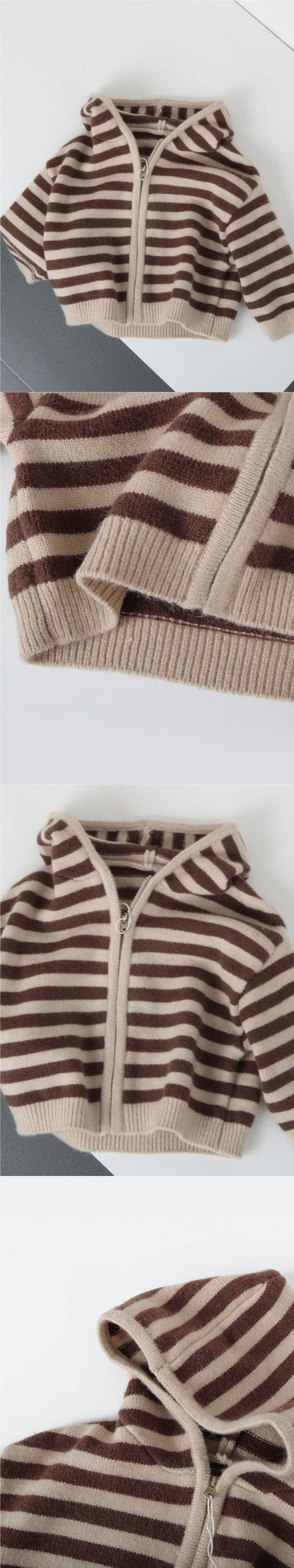 새로운 봄과 가을 소년과 소녀 부드러운 왁스 지퍼 줄무늬 카디건 스웨터 아기 스타일리즈 후드 스웨터 외부 내구성스토어 가기