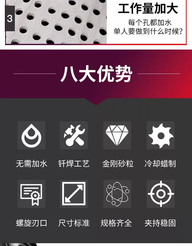 • 브레이징 홀 오프너(검정색)(업그레이드 모델)는 각각 6+8 건식 드릴링 가능)