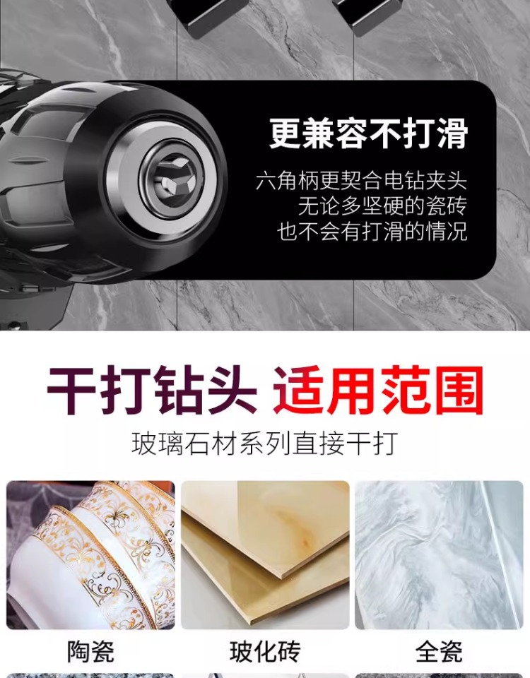 타일 드릴링 비트, 브레이징 전체 도자기 유리 유리 타일 대리석 구멍 오프너, 물을 넣지 않고 건식 드릴링, 대형 M&스토어 가기