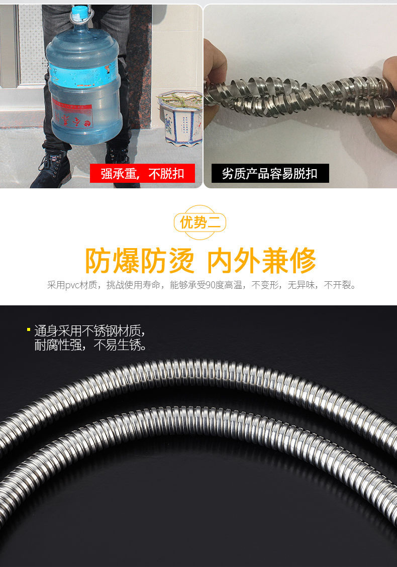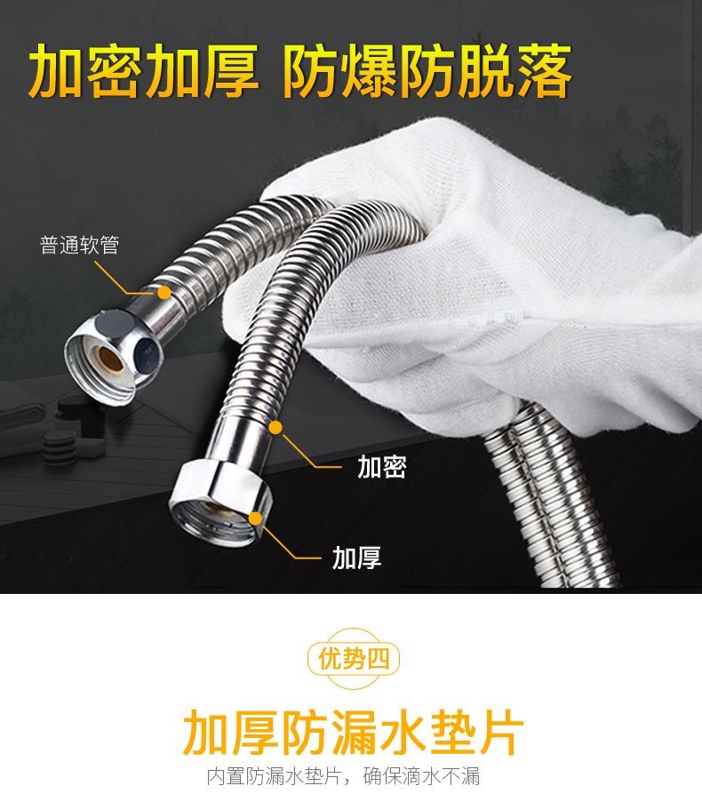 304 스테인레스 스틸 샤워 호스 샤워 호스 방폭형 레인 샤워 헤드 수도관 호스 1.7m 유니버설