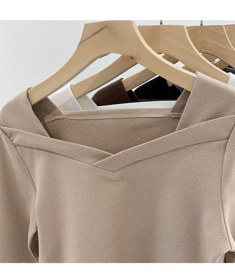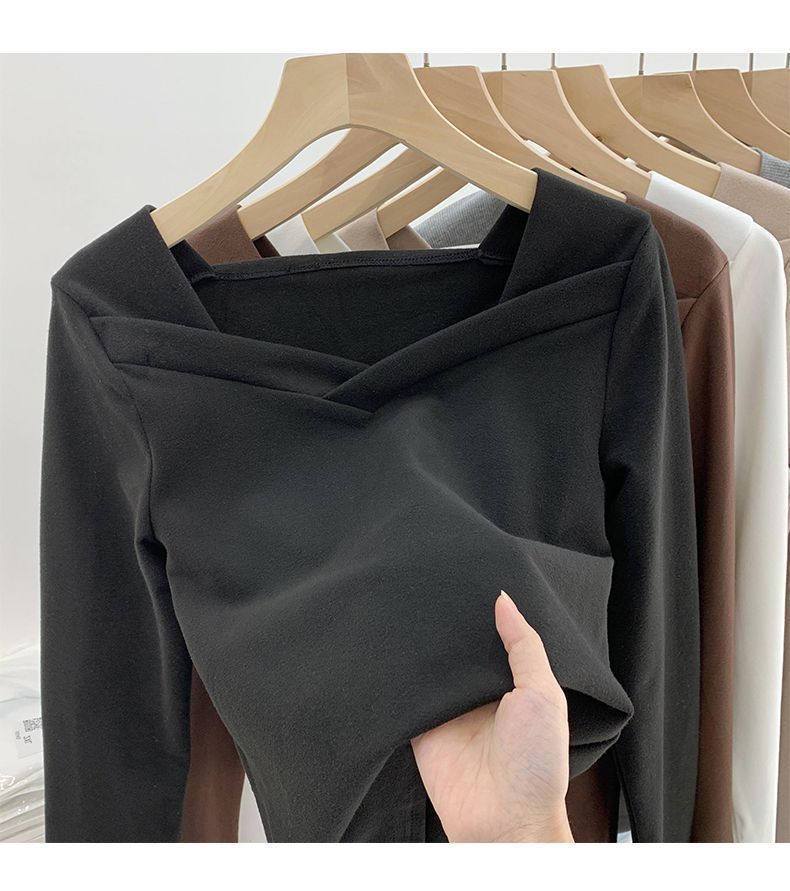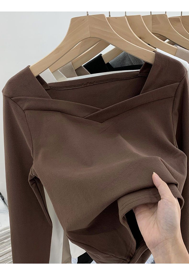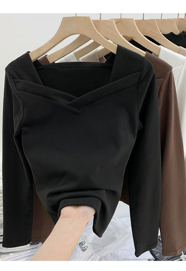 양면 벨벳 바닥 셔츠 새로운 디자인 스퀘어 넥 불규칙한 스타일 슬림 이너 탑 2024 가을 겨울 여성 의류스토어 가기