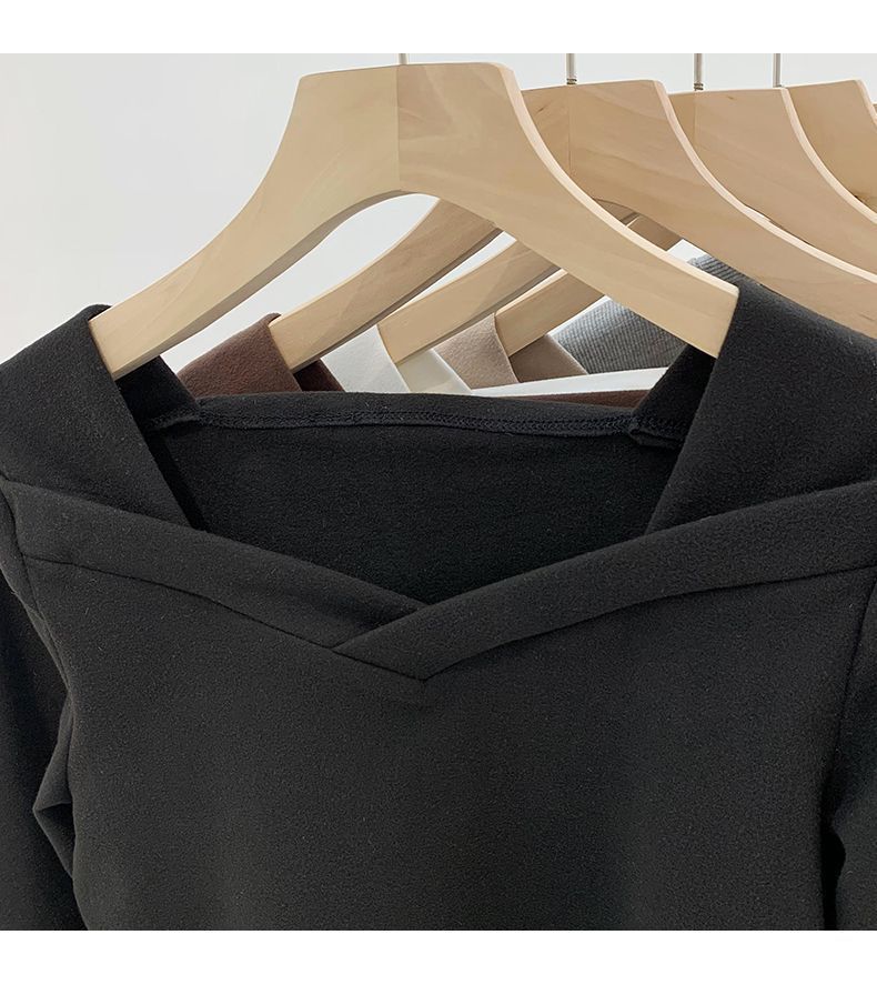 德绒打底衫新款设计感方领不规则洋气修身内搭上衣秋冬女装穿搭潮