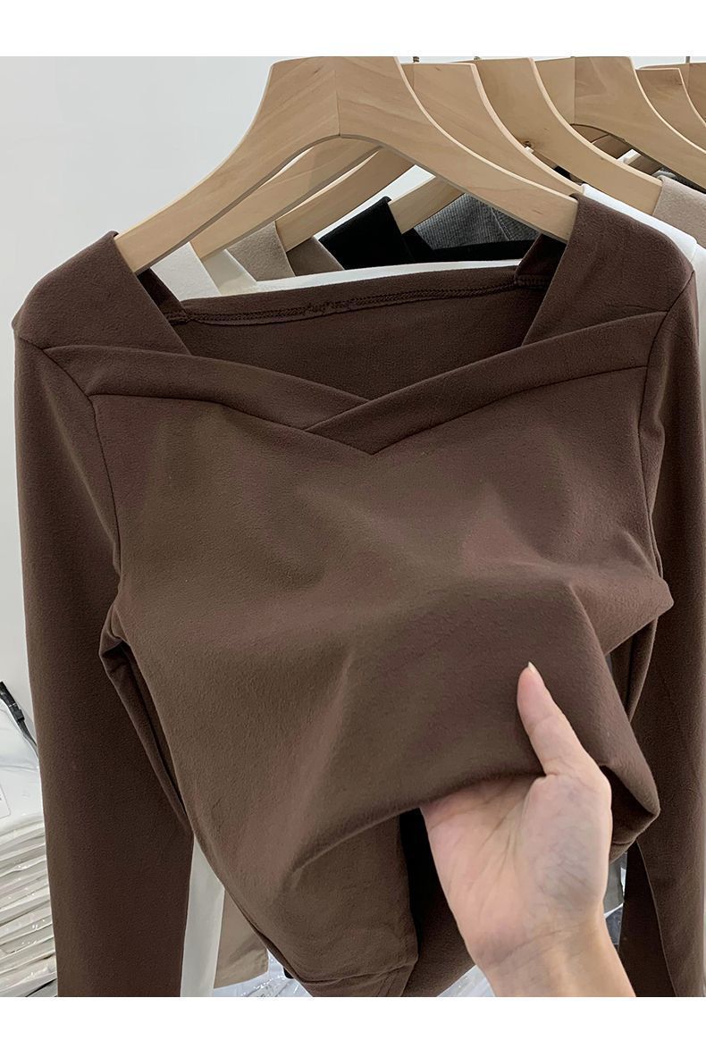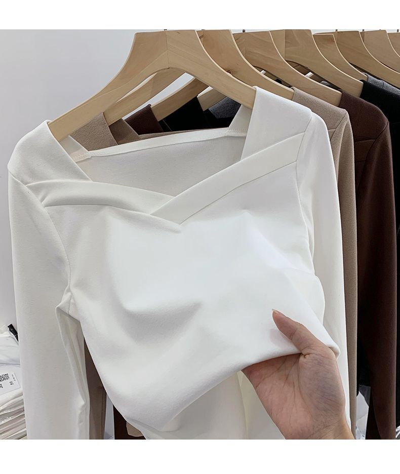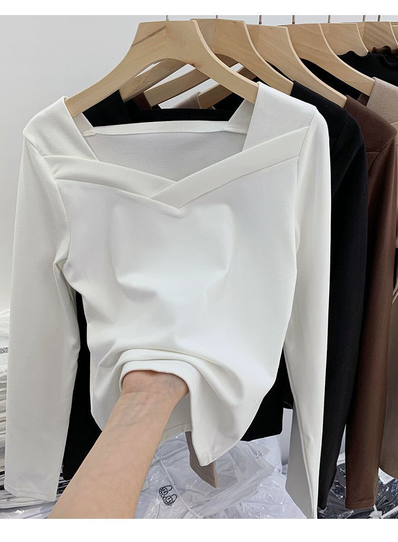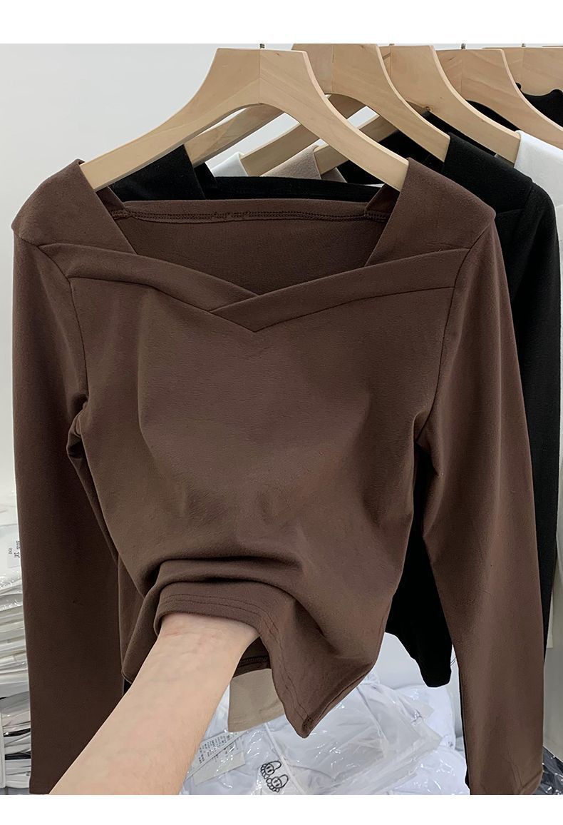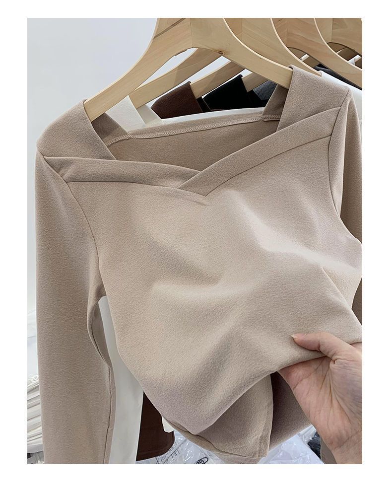 양면 벨벳 바닥 셔츠 새로운 디자인 스퀘어 넥 불규칙한 스타일 슬림 이너 탑 2024 가을 겨울 여성 의류