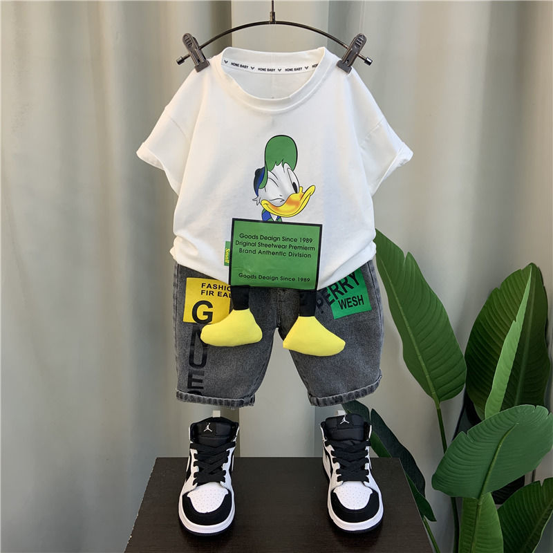 남자들의 여름 세트 2024 새로운 서양식 소년 인터넷 연예인 프라이드 스트리트 옷 어린이 아기 패션 브랜드 반팔 여름 옷