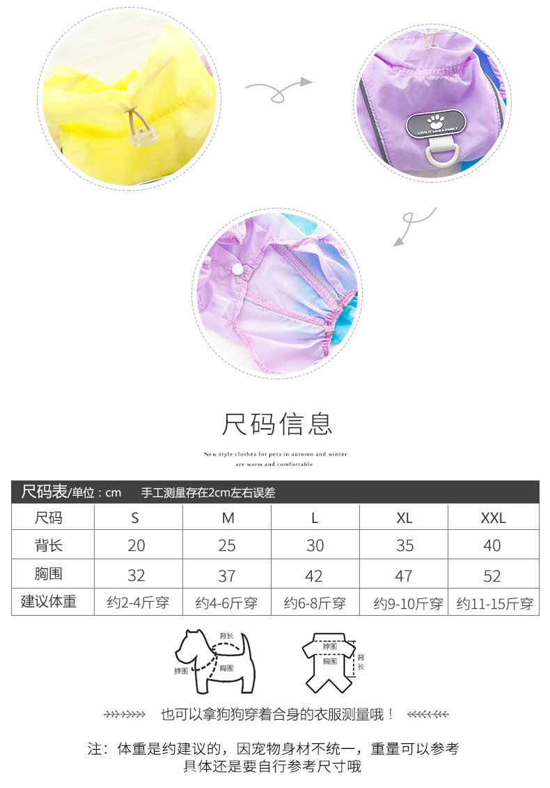 개 옷 봄과 여름 얇은 야외 4 개 다리 선 스크린 통기성 견인 작은 개 테디 애완 동물 6773