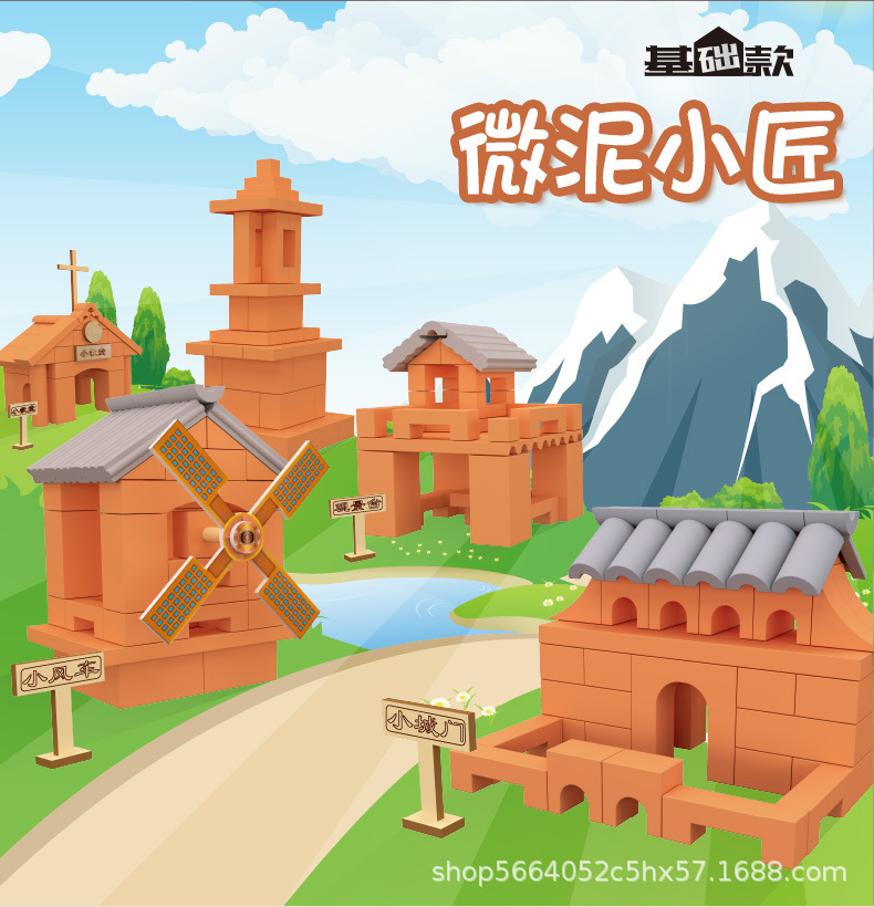 마이크로 머드 브릭토이 미니 타일로 집을 짓고 진짜 벽돌로 머드를 만들 수 있는 벽돌공 기본 모델