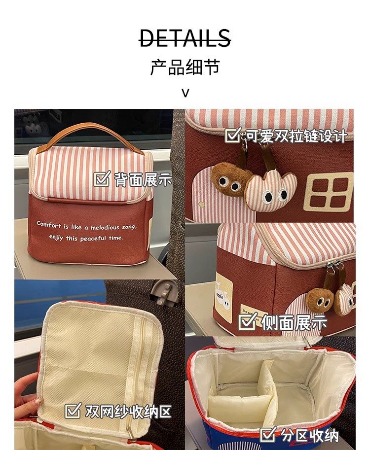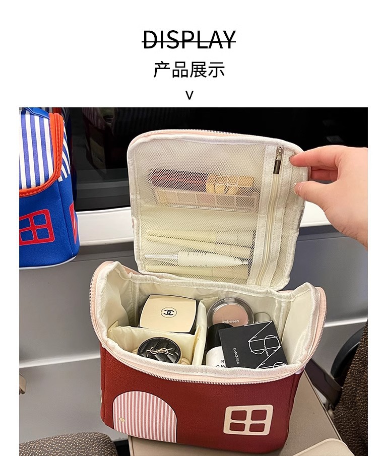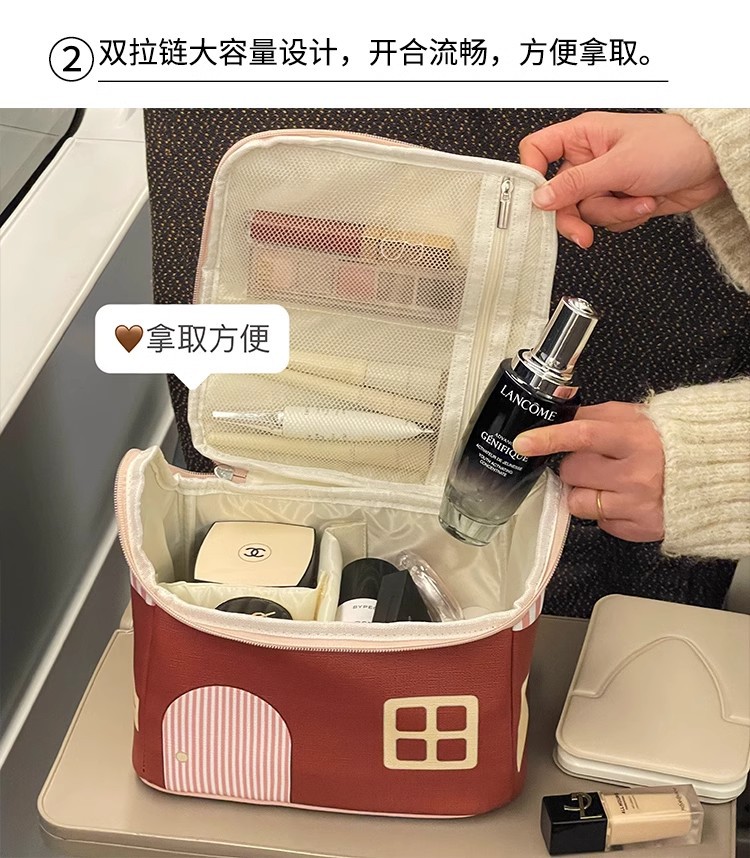 폭발성 도파민 작은 집 메이크업 가방 파티션 방수 세척 가방 여행 고급 스킨 케어 보관 가방 휴대용