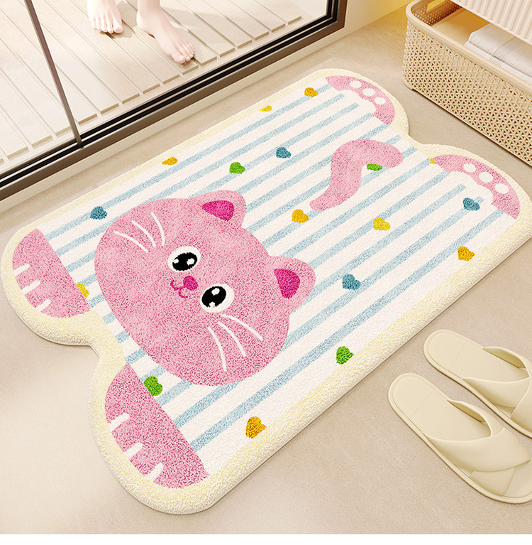 욕실 바닥 매트 가정용 흡수성 미끄럼 방지 매트 만화 귀여운 모조 캐시미어 바닥 매트 화장실 문 더러운-머리카락을위한 저항하는 발 매트