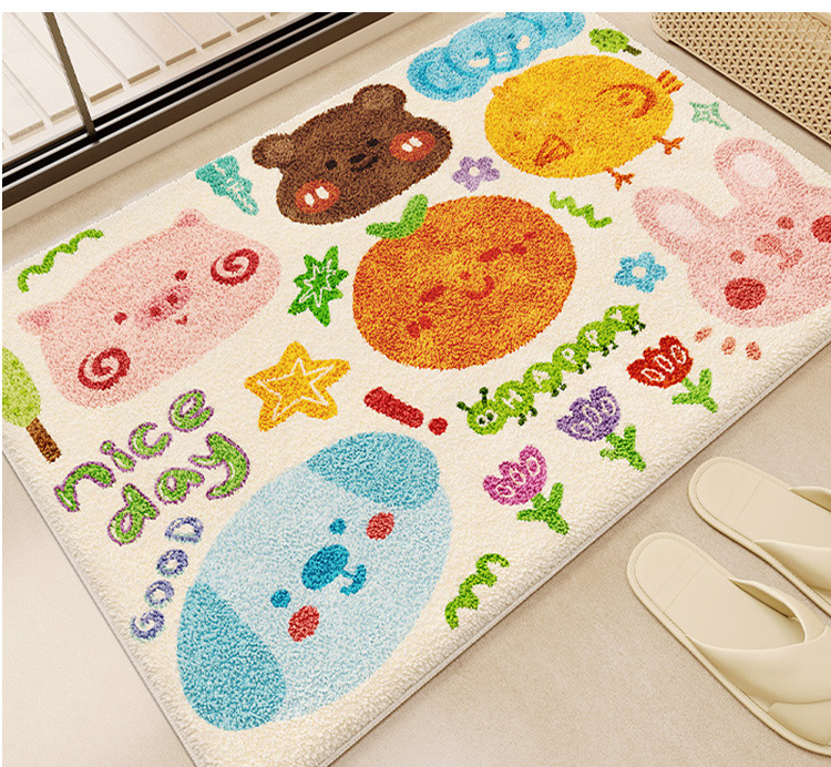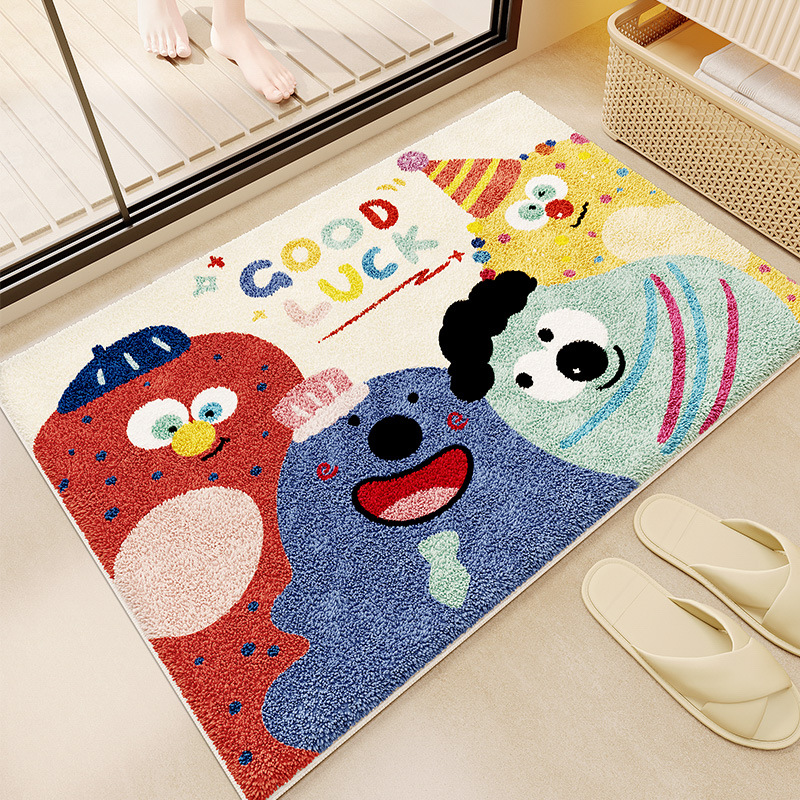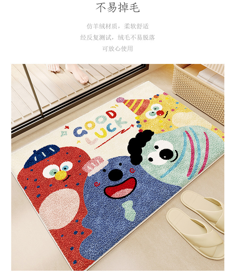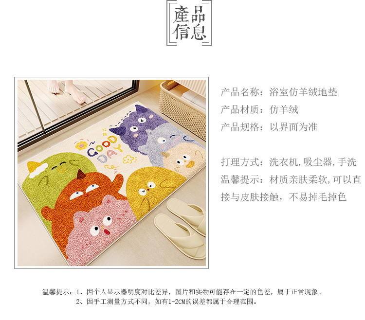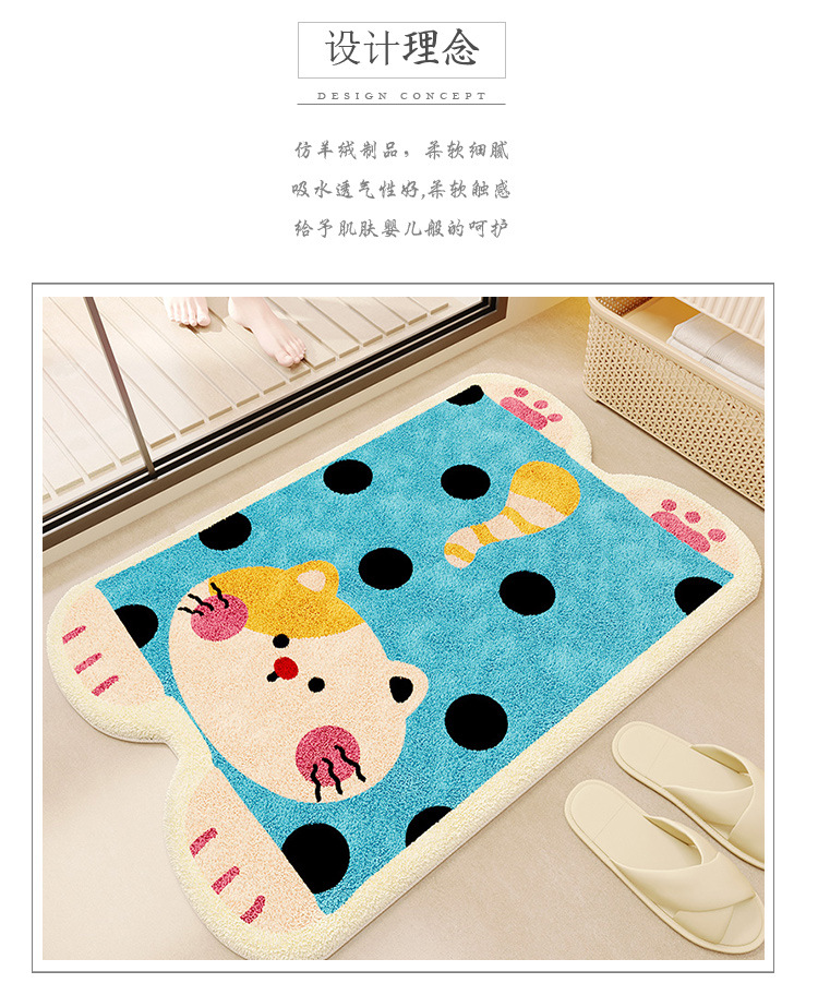 욕실 바닥 매트 가정용 흡수성 미끄럼 방지 매트 만화 귀여운 모조 캐시미어 바닥 매트 화장실 문 더러운-머리카락을위한 저항하는 발 매트스토어 가기