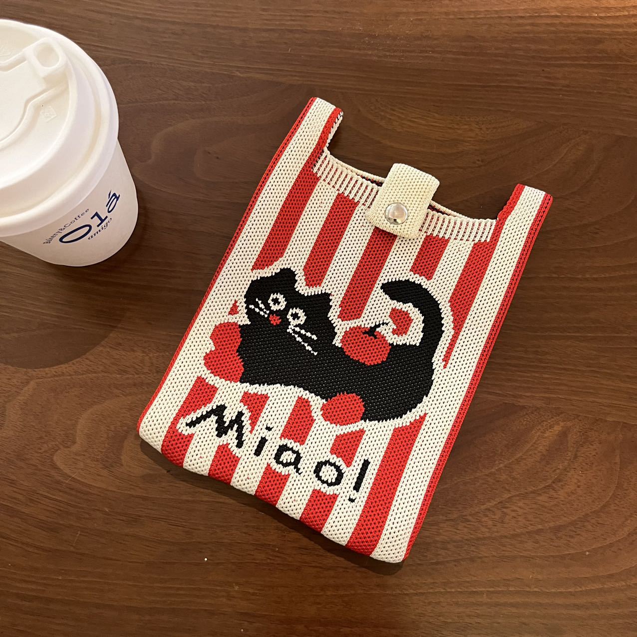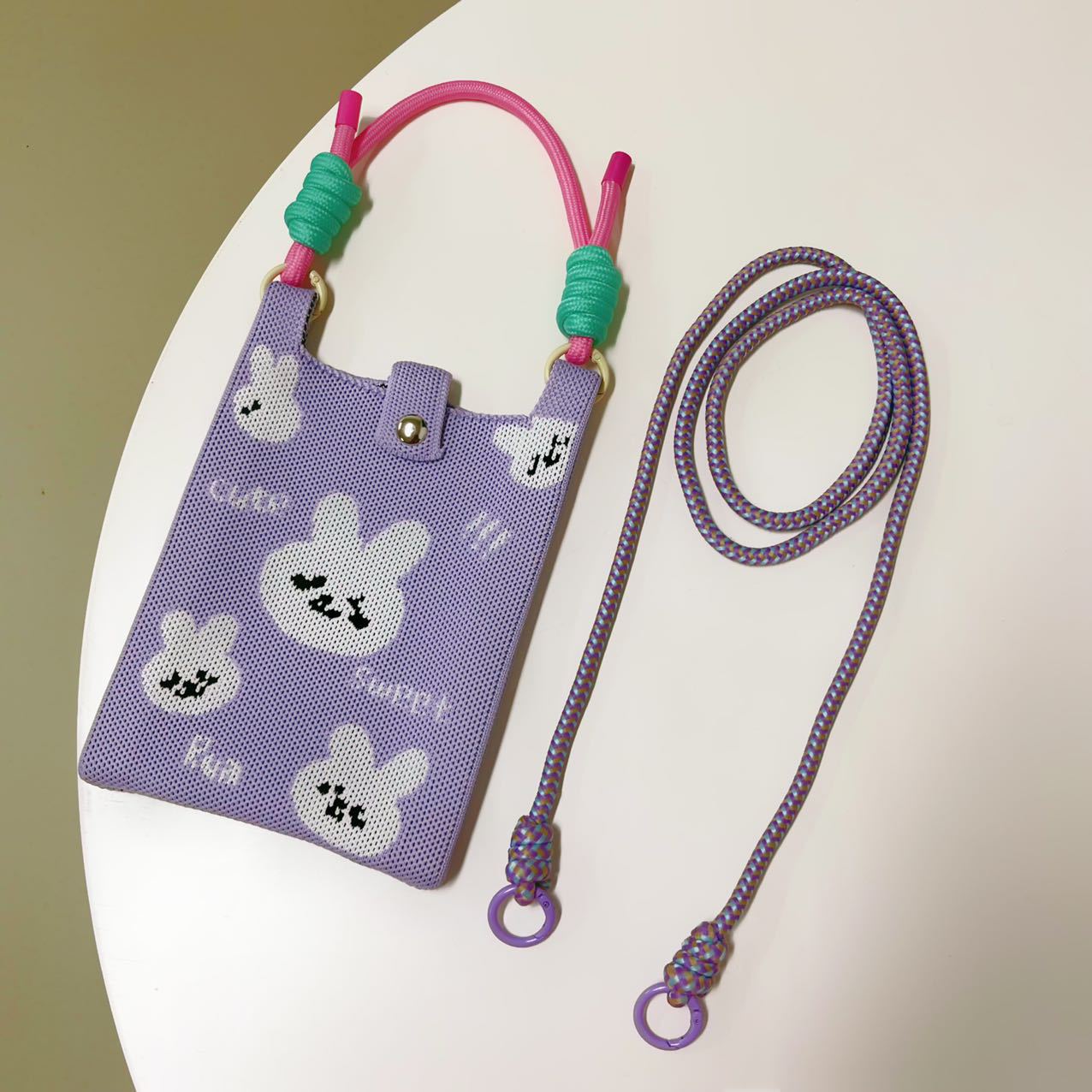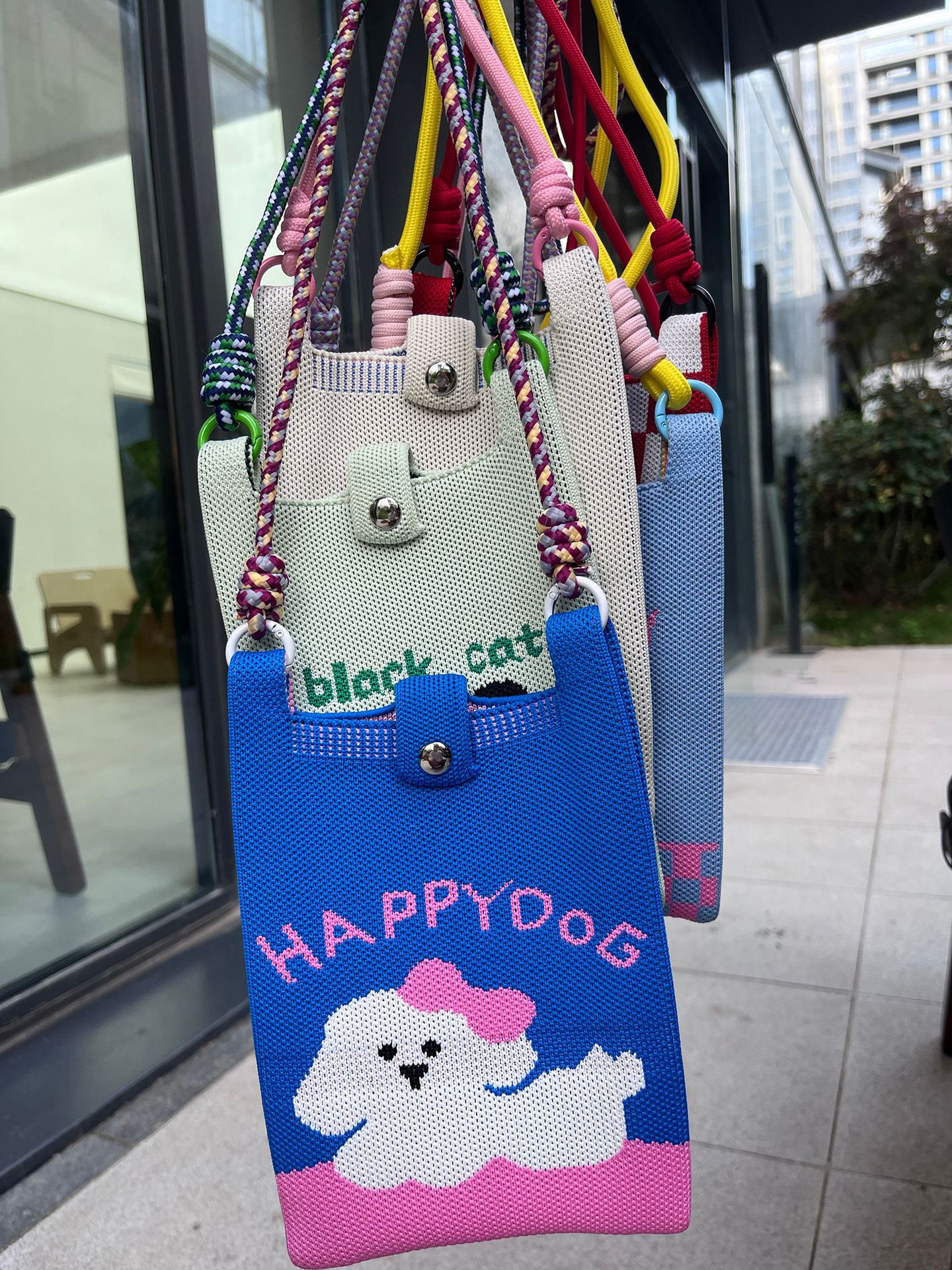 봄과 여름 핫 트렌드 여성 니트 가방 만화 휴대 전화 가방 도파민 핸드백 사진 촬영 어깨 크로스 바디 백