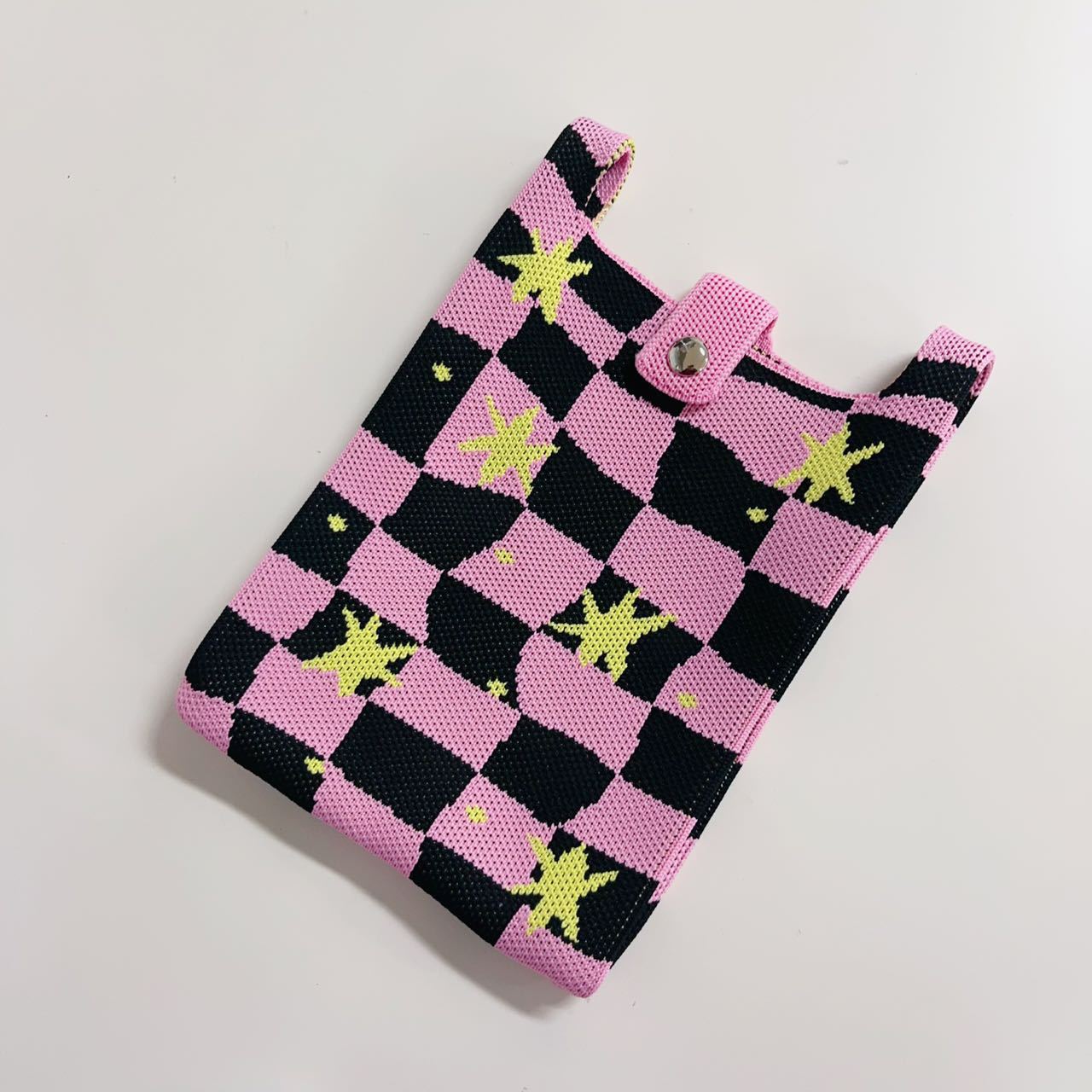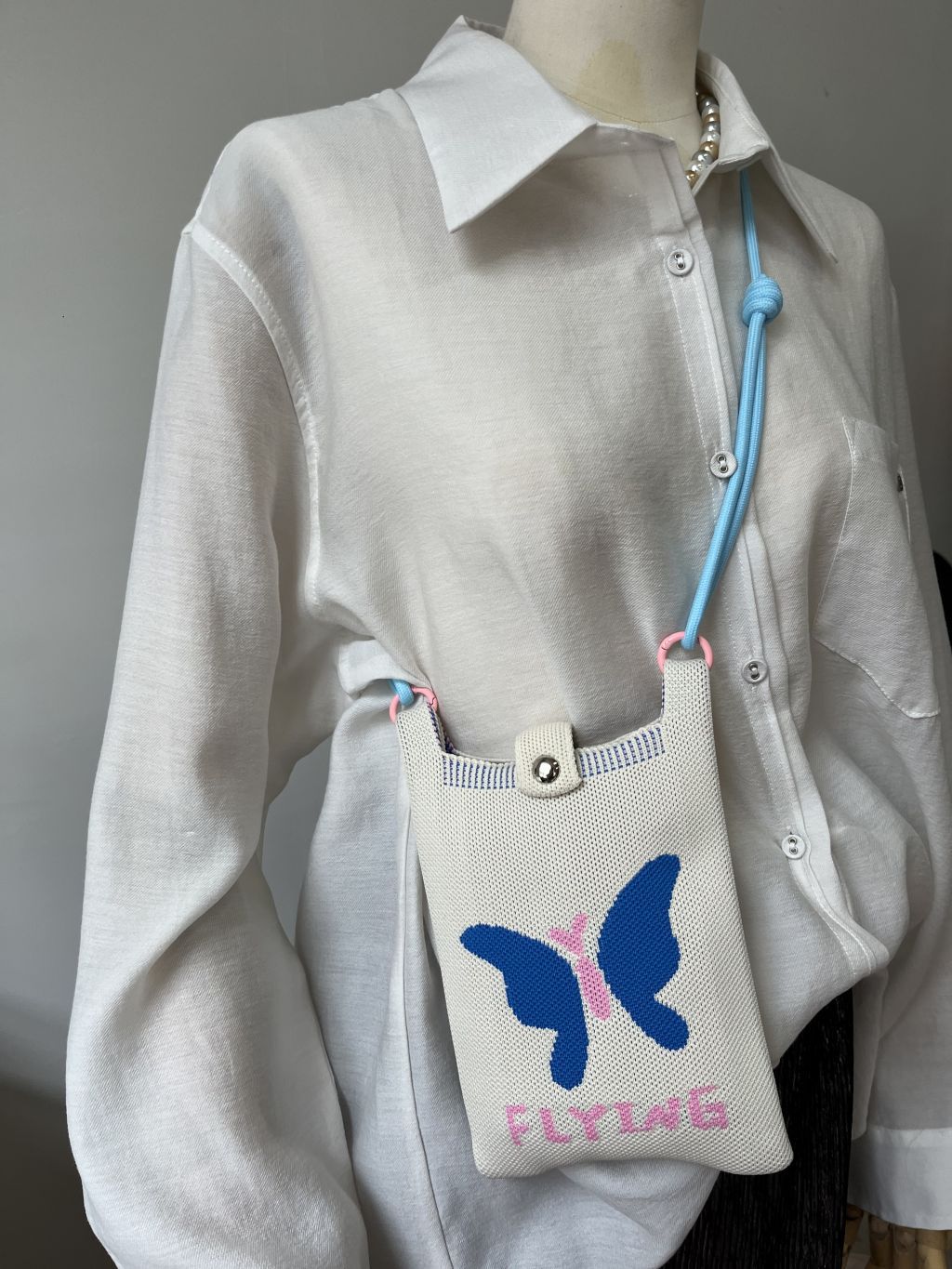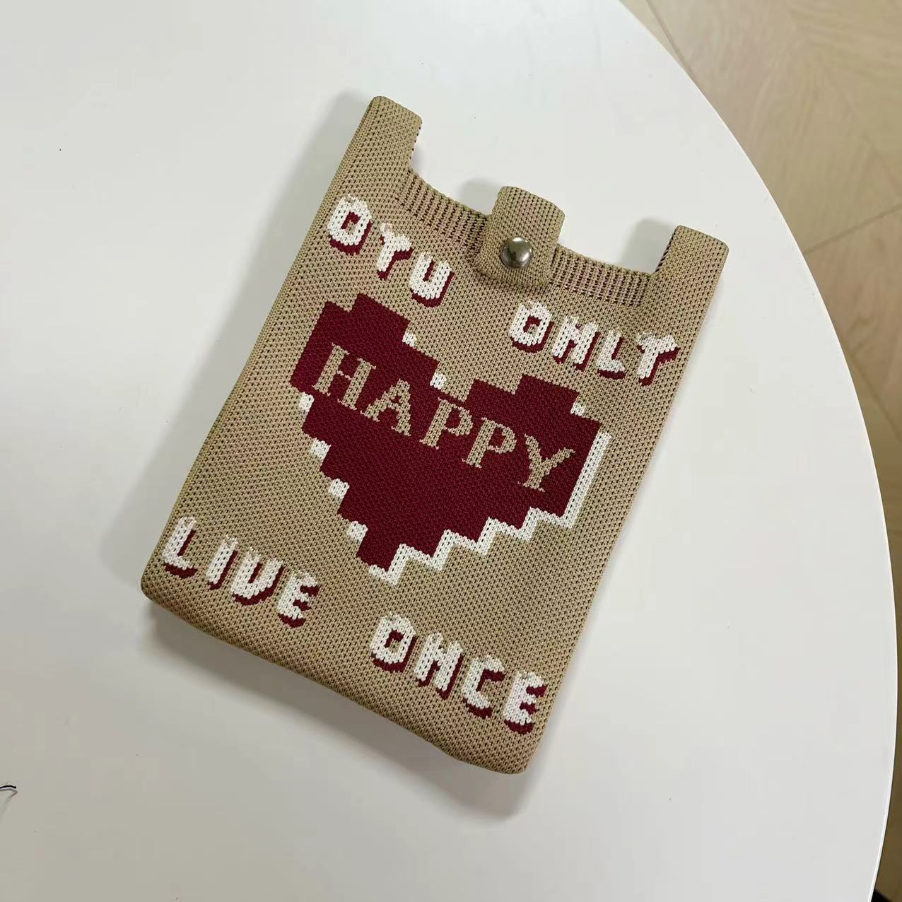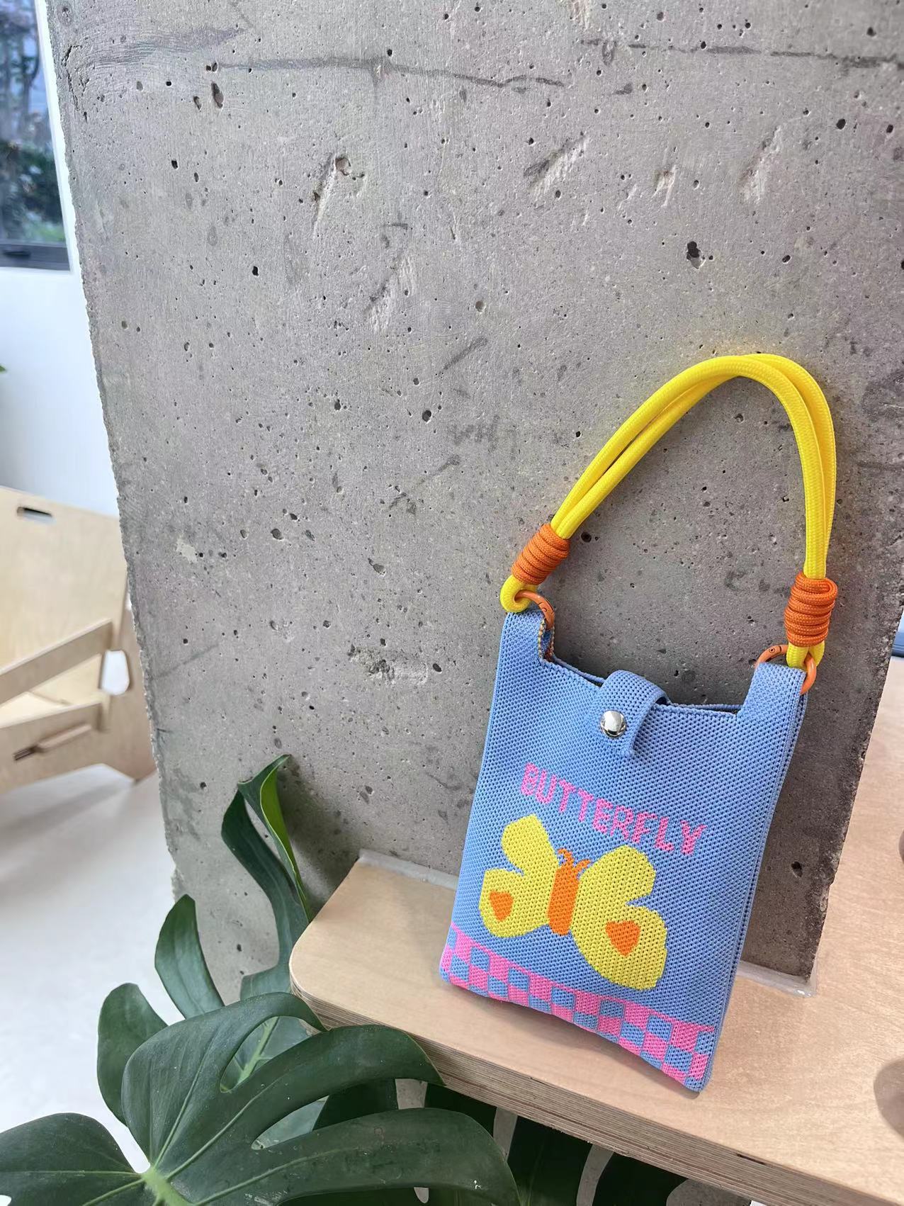 봄과 여름 핫 트렌드 여성 니트 가방 만화 휴대 전화 가방 도파민 핸드백 사진 촬영 어깨 크로스 바디 백