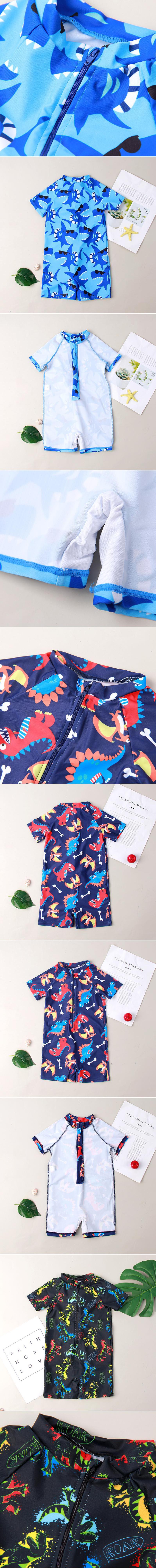 남자 소년 원피스 수영복 공룡 상어 인쇄 지퍼 편안한 고탄성 수영복 어린이 수영복스토어 가기