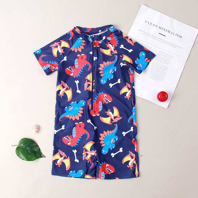 남자 소년 원피스 수영복 공룡 상어 인쇄 지퍼 편안한 고탄성 수영복 어린이 수영복