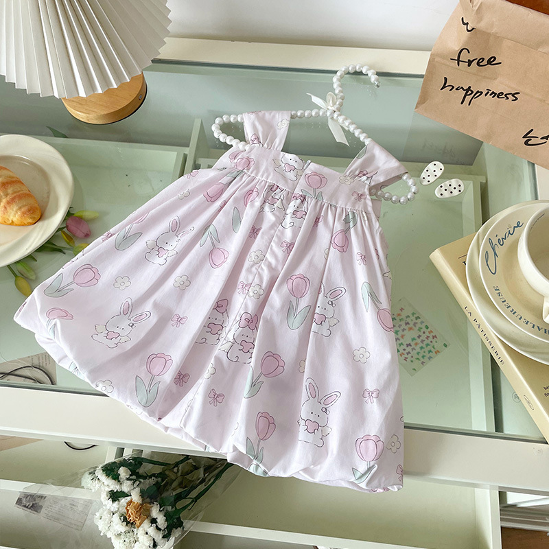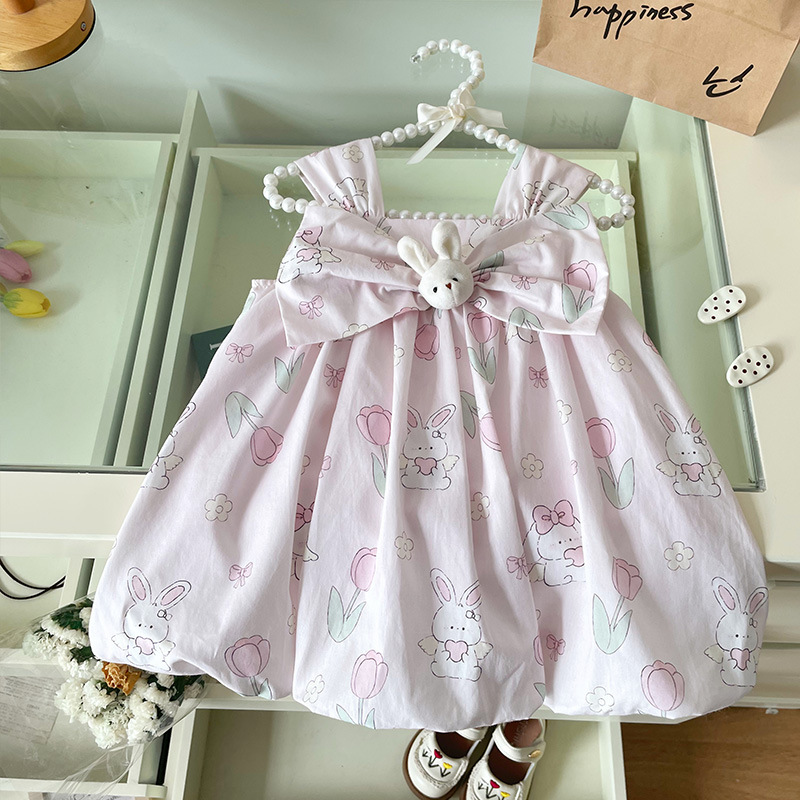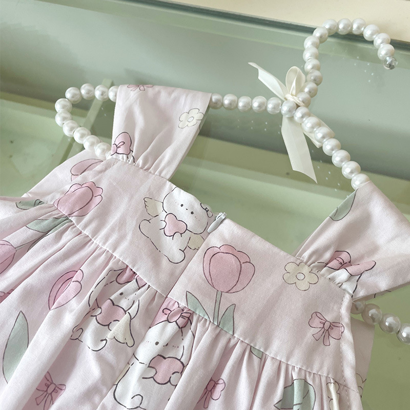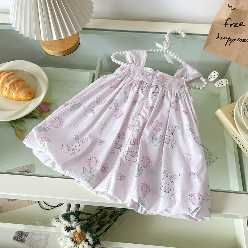 XQ259320 소녀 원피스 2025 여름 새로운 만화 토끼 활 튤립 인쇄 달콤한 원피스스토어 가기