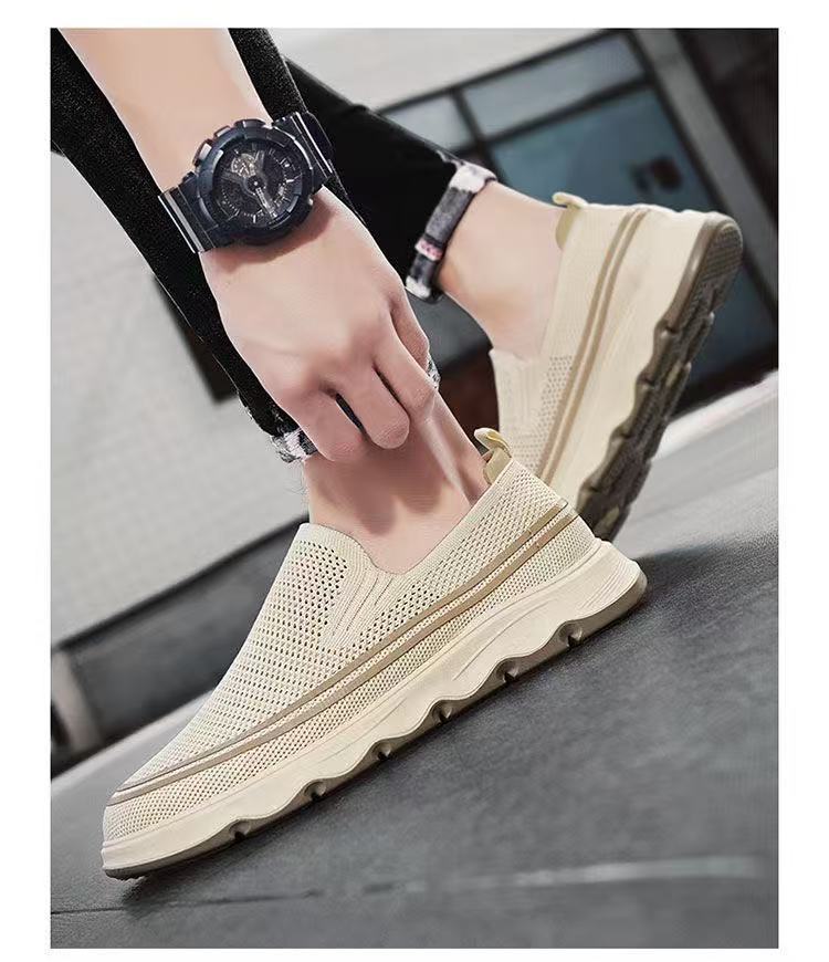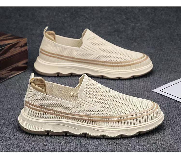 국경 간 메쉬 신발 남자의 통기성 캐주얼 신발 게으른 부드러운 밑창 메쉬 경량 슬립 온 올 매치 플라잉 짠 스포츠 메쉬 신발
