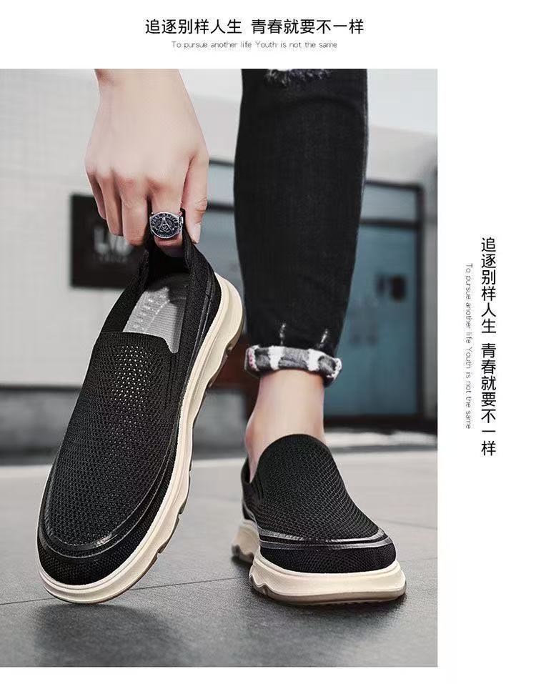 국경 간 메쉬 신발 남자의 통기성 캐주얼 신발 게으른 부드러운 밑창 메쉬 경량 슬립 온 올 매치 플라잉 짠 스포츠 메쉬 신발스토어 가기