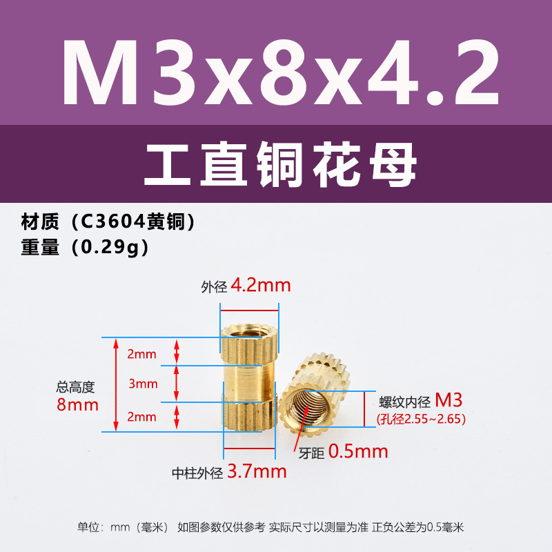 • M3*8*4.2(산업용 직선 구리 꽃 어머니)