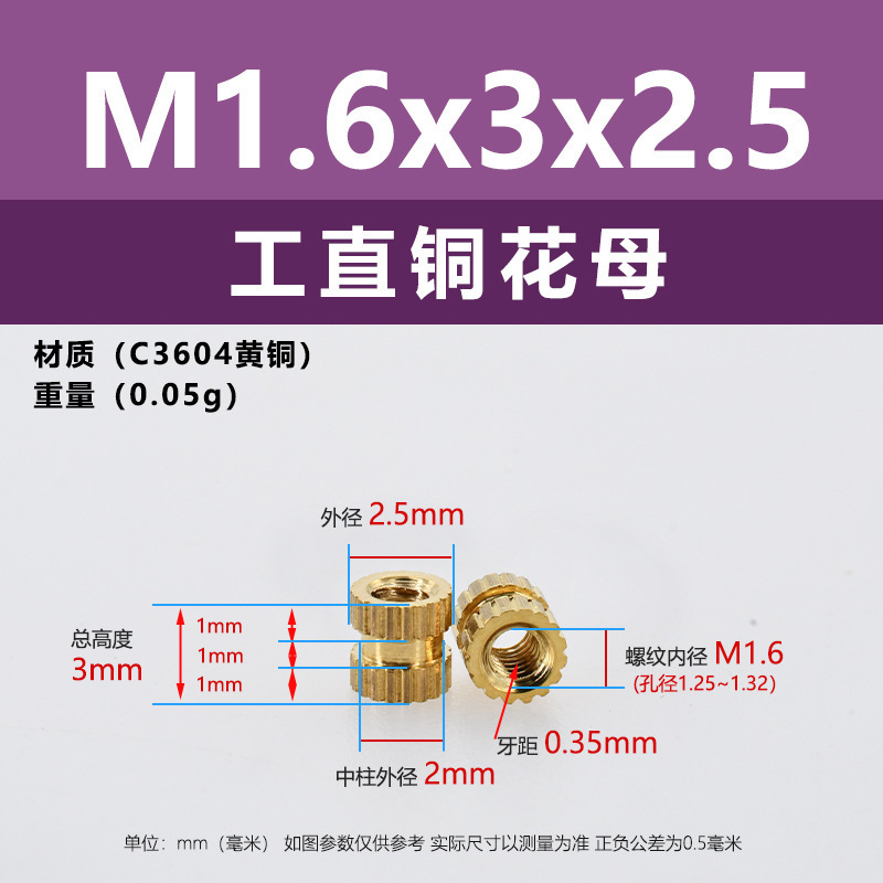 • M1.6*3*2.5(산업용 직선 구리 꽃 어머니)