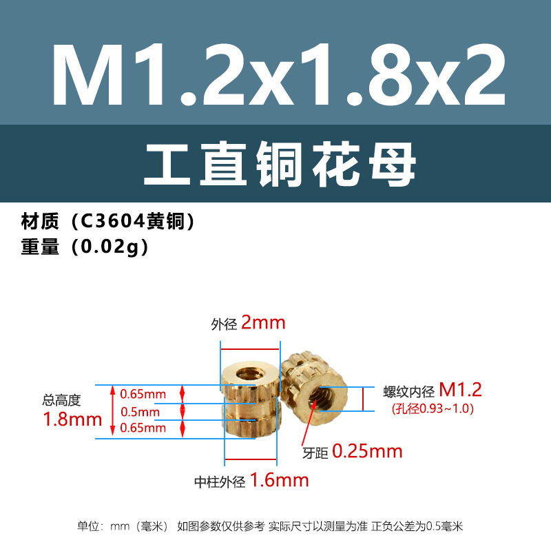 • M1.2*2.5*2(산업용 직선 구리 꽃 어머니)