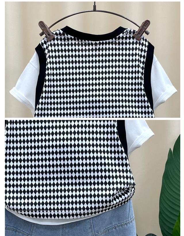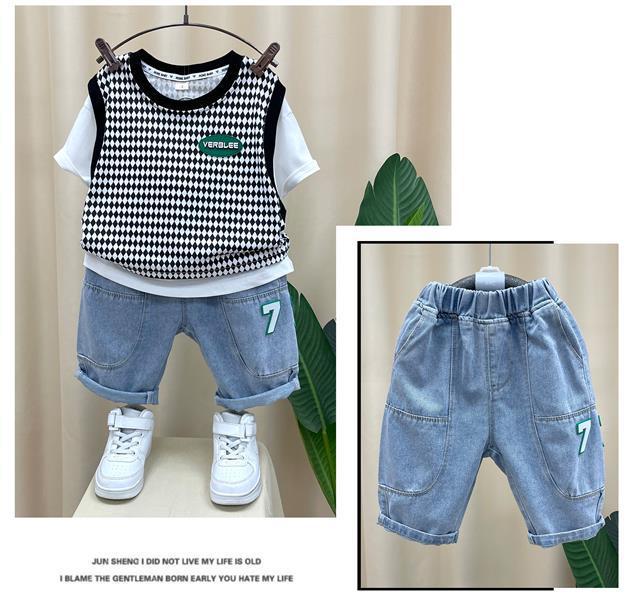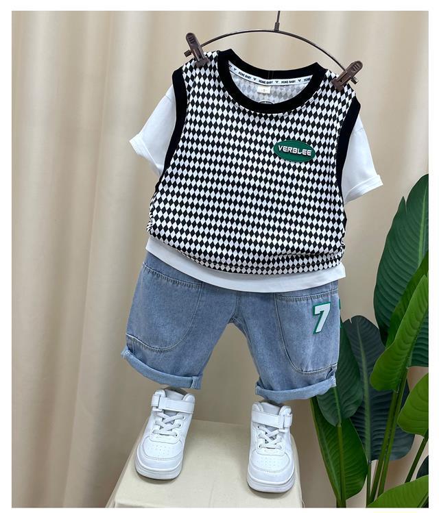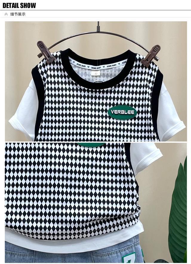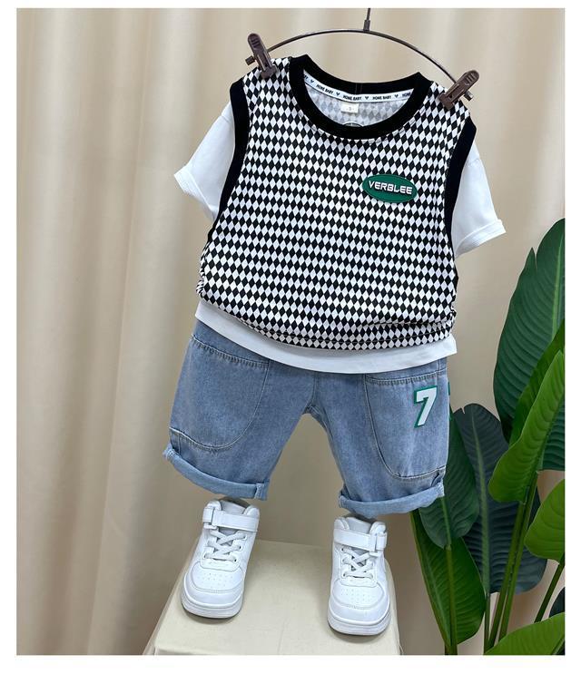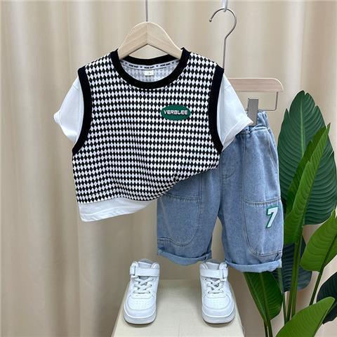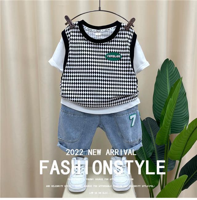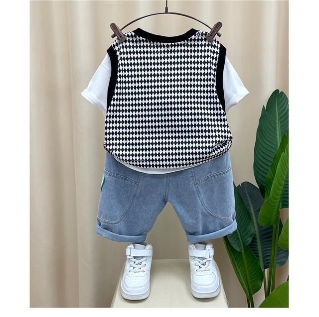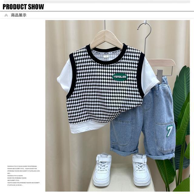 소년 여름 세트 2024 새로운 서양식 아기 잘 생긴 어린이 유행 캐주얼 인터넷 인기있는 남자를위한 반팔 옷스토어 가기