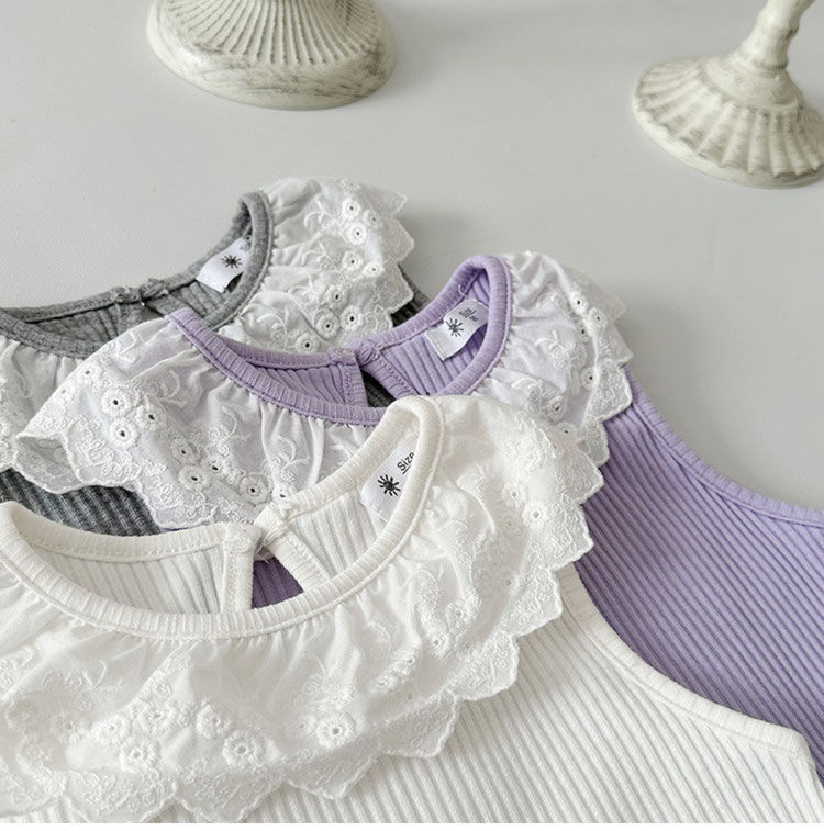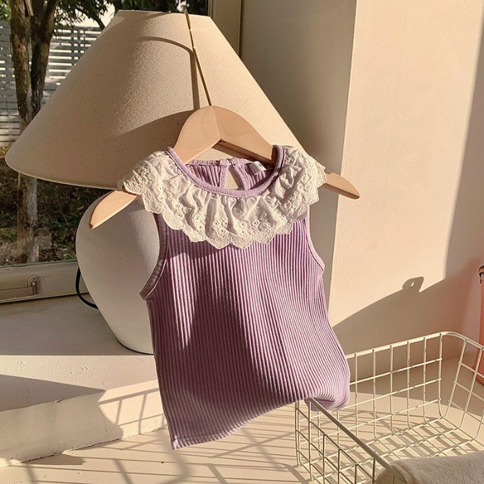 여자 조끼 2025 여름 새로운 한국어 스타일 만화 탑 아동복 레이스 칼라 얇은 민소매 겉옷