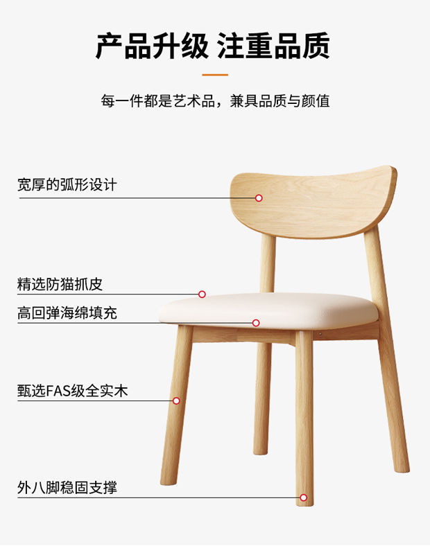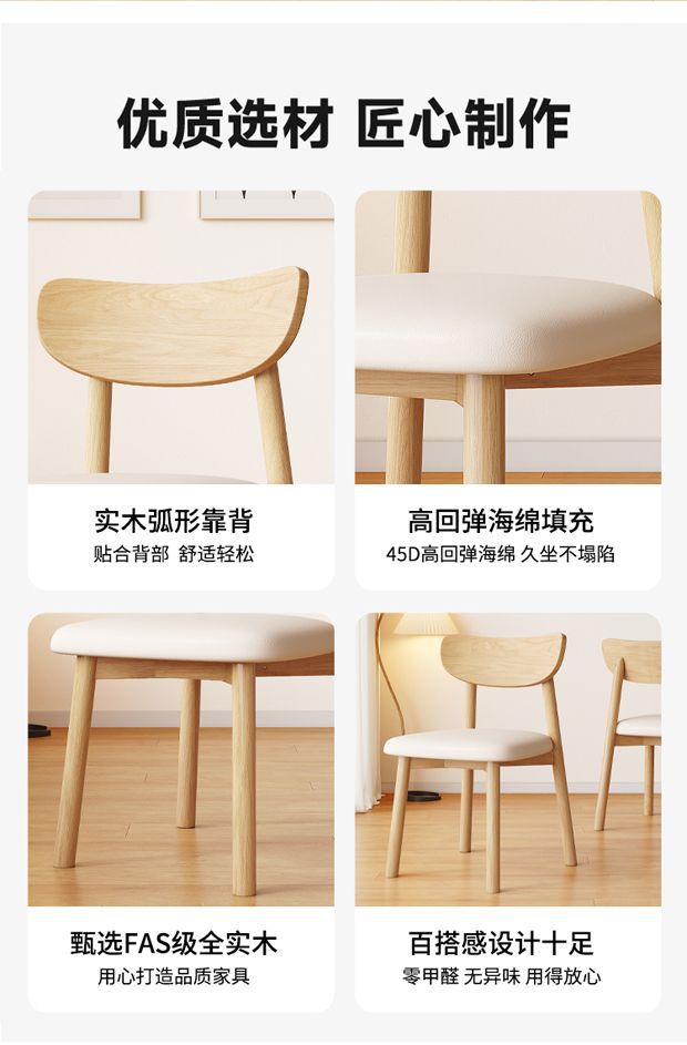 2025 새로운 단단한 나무 Ganoderma 의자 플러스 작은 부드러운 등받이 의자 북유럽 가정용 간단한 현대 테이블과 의자스토어 가기