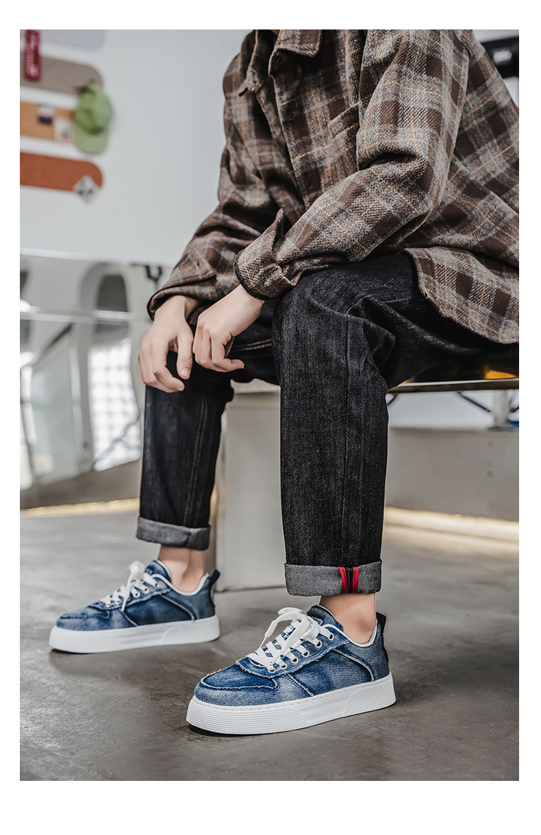 남자 새 사계절 캐주얼 패션 매일 올 매치 레이스 업 솔리드 컬러 패셔너블 카 스티치 남자 스니커즈 착용