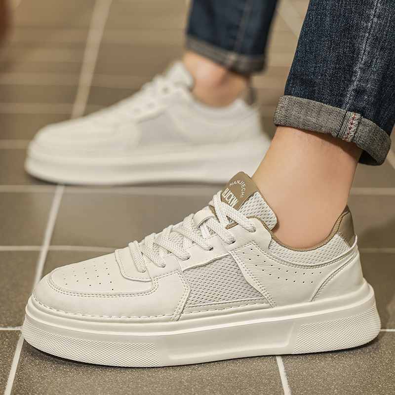 남성 신발 2025 새로운 두꺼운 단독 메쉬 스포츠 화이트 신발 남성 여름 통기성 대학 스타일 스케이트 신발 패션 캐주얼스토어 가기