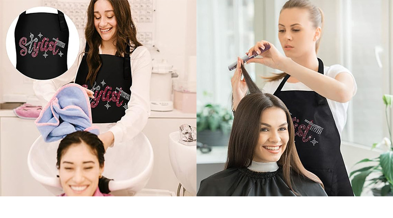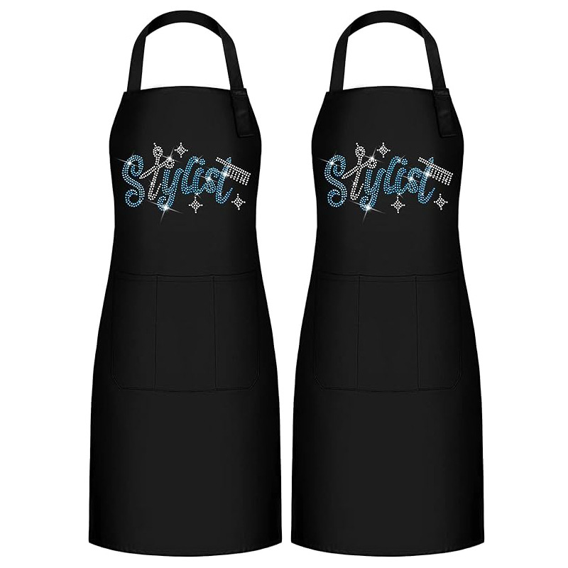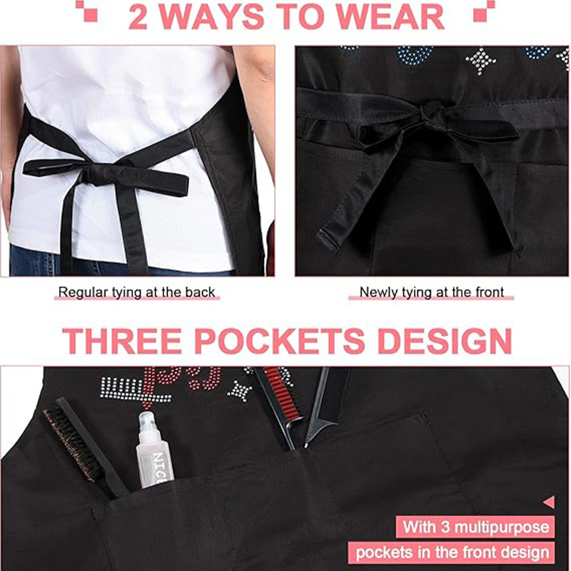 국경 간 아마존 핫 판매 다이아몬드 홀터 앞치마 제조 업체 도매 우유 차 커피 숍 작업복 앞치마 인쇄 로고스토어 가기