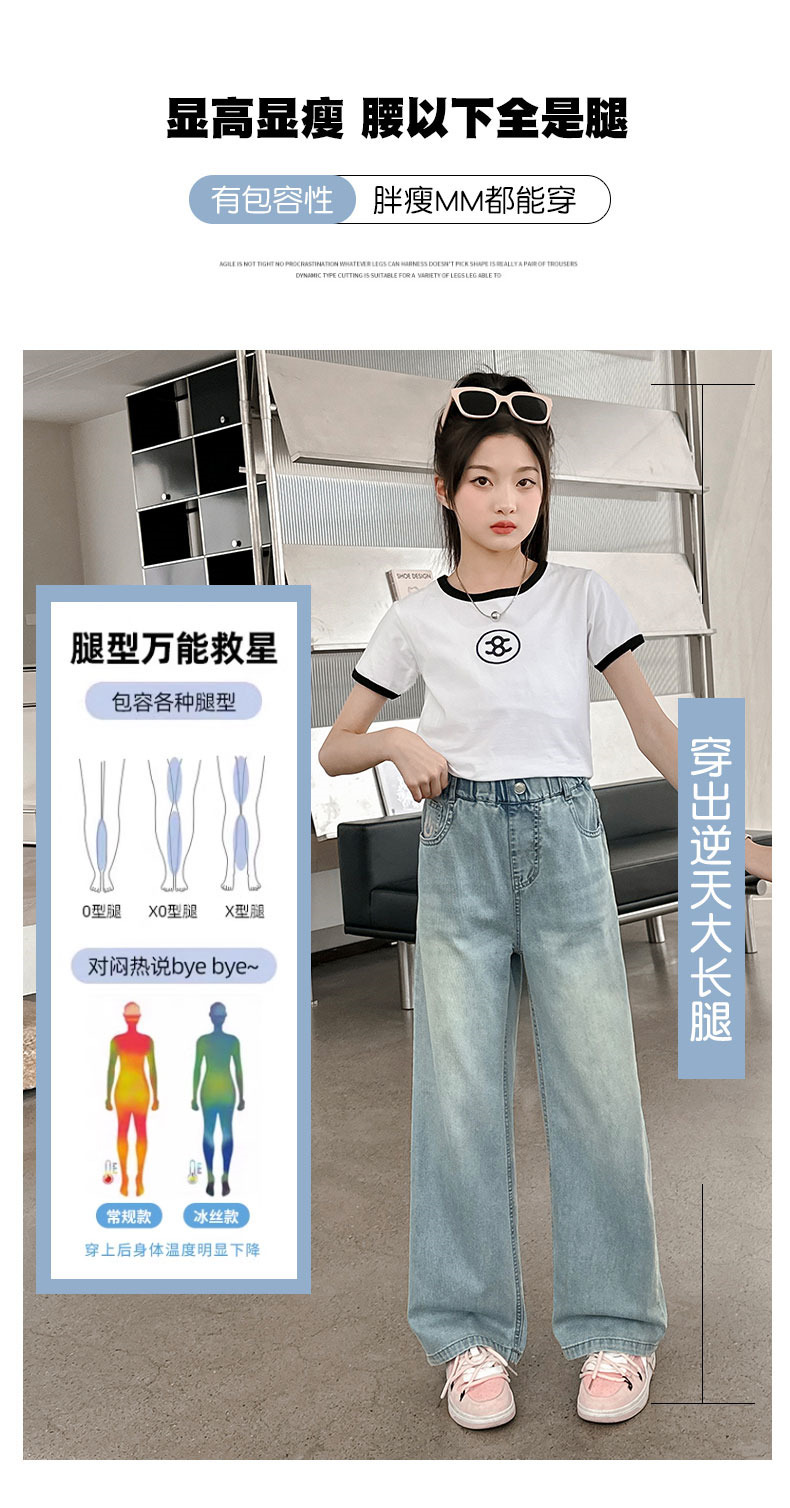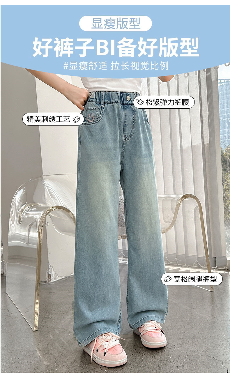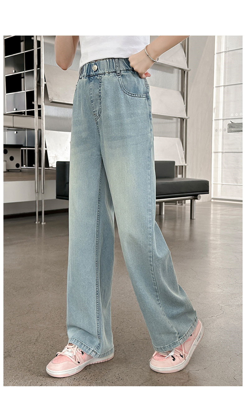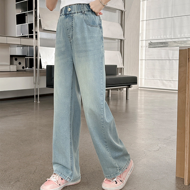 소녀 청바지 여름 얇은 2025 새로운 중학교 여학생 느슨한 바지 어린이 큰 어린이 텐셀 넓은 다리 바지스토어 가기