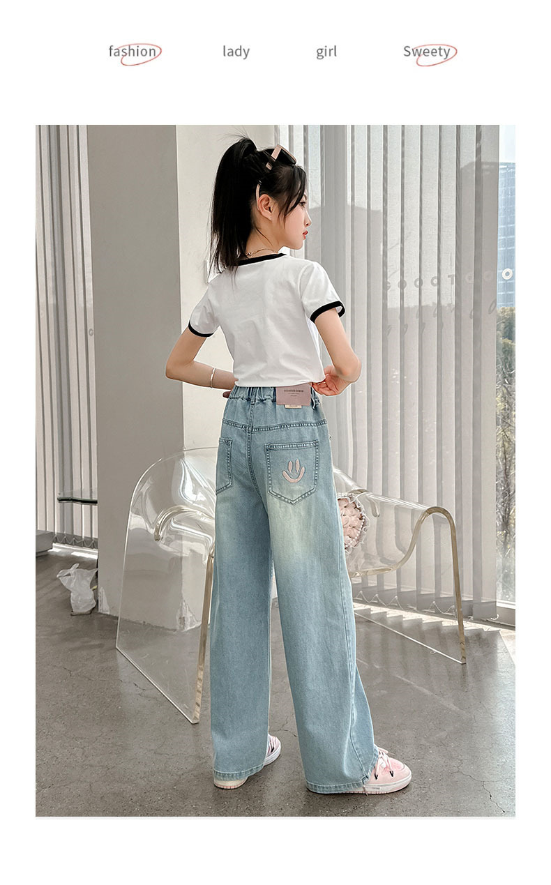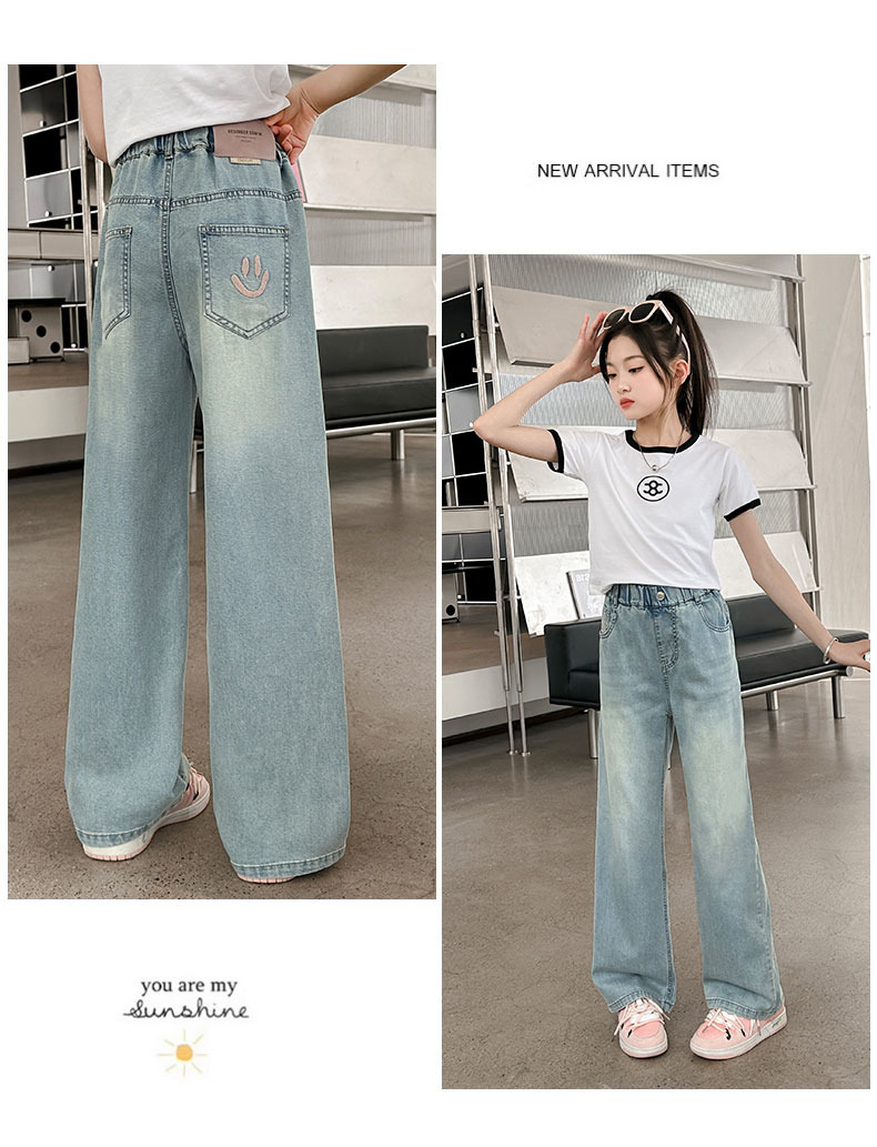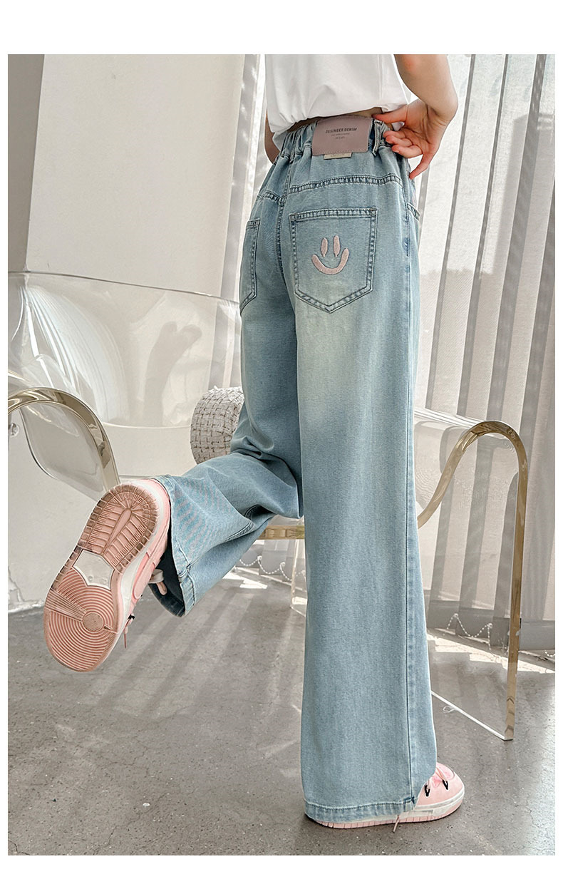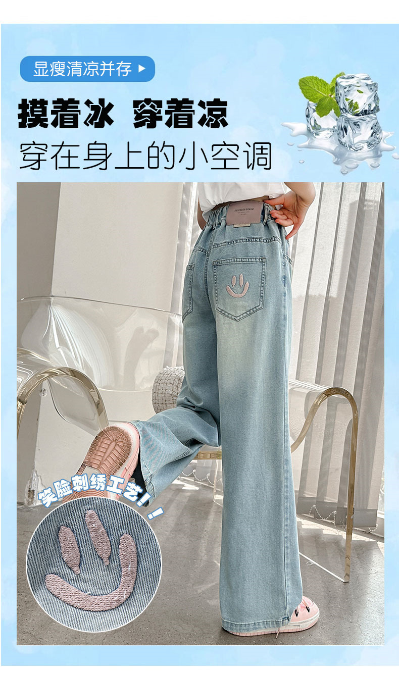 소녀 청바지 여름 얇은 2025 새로운 중학교 여학생 느슨한 바지 어린이 큰 어린이 텐셀 넓은 다리 바지스토어 가기