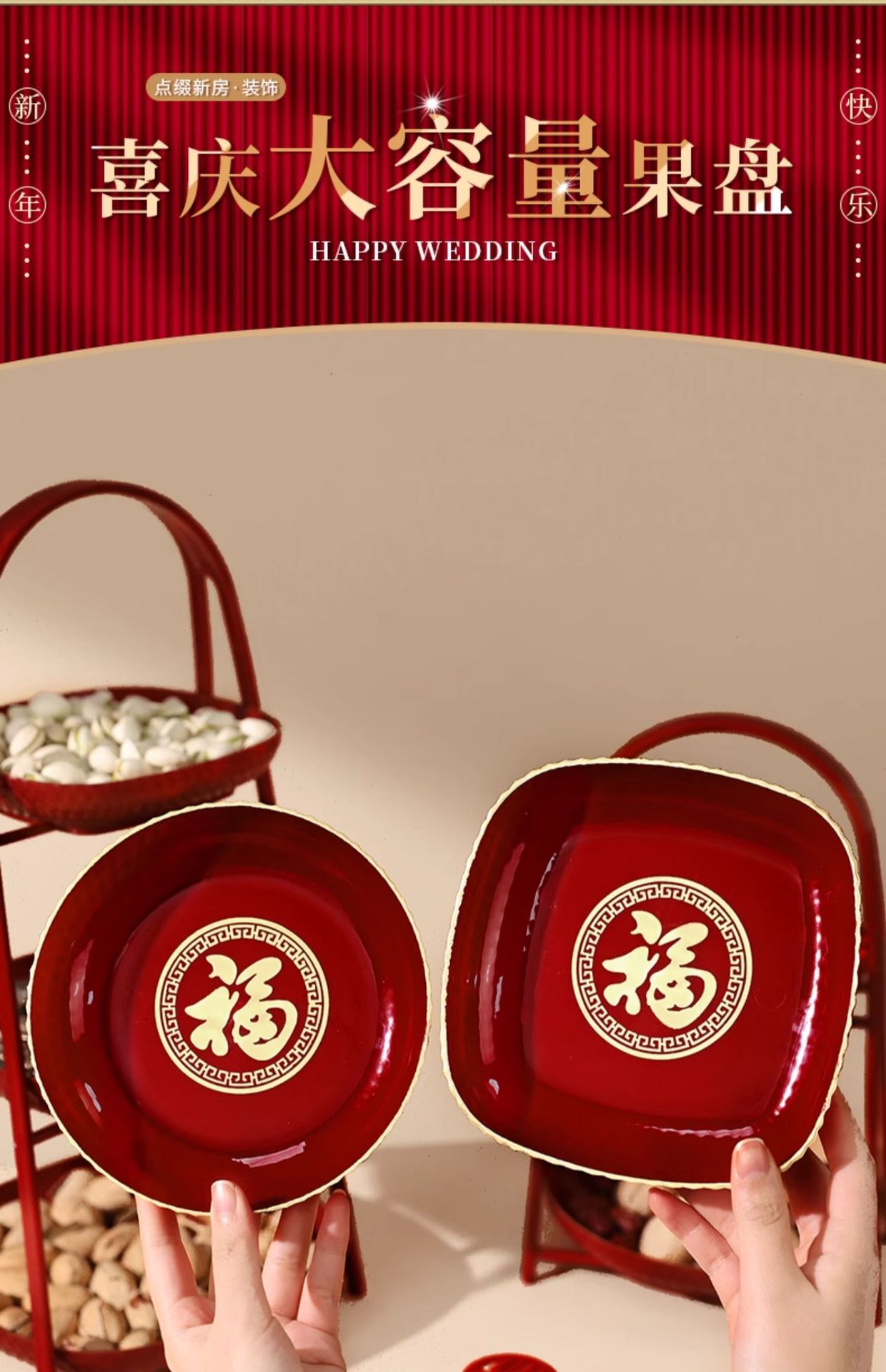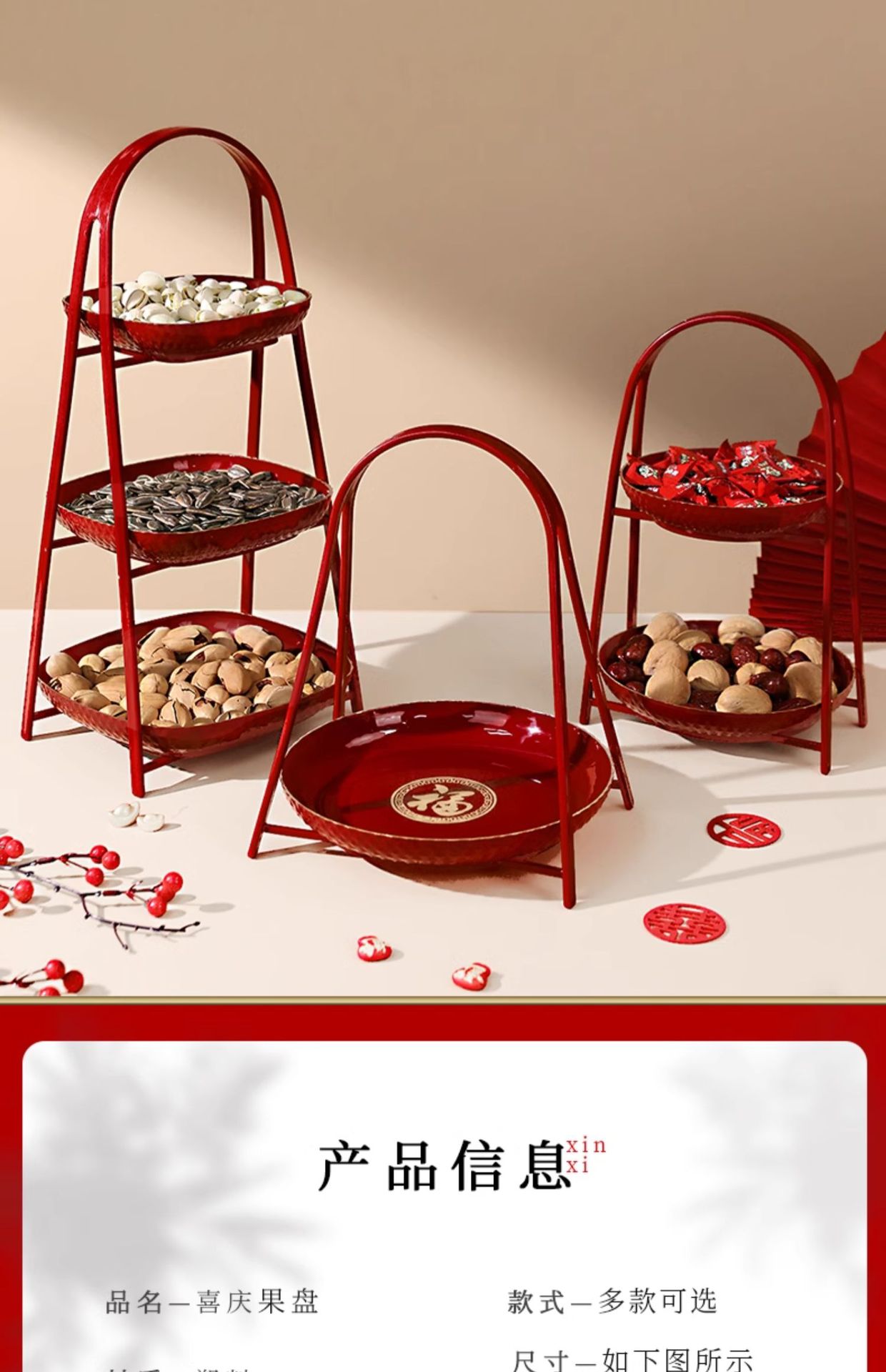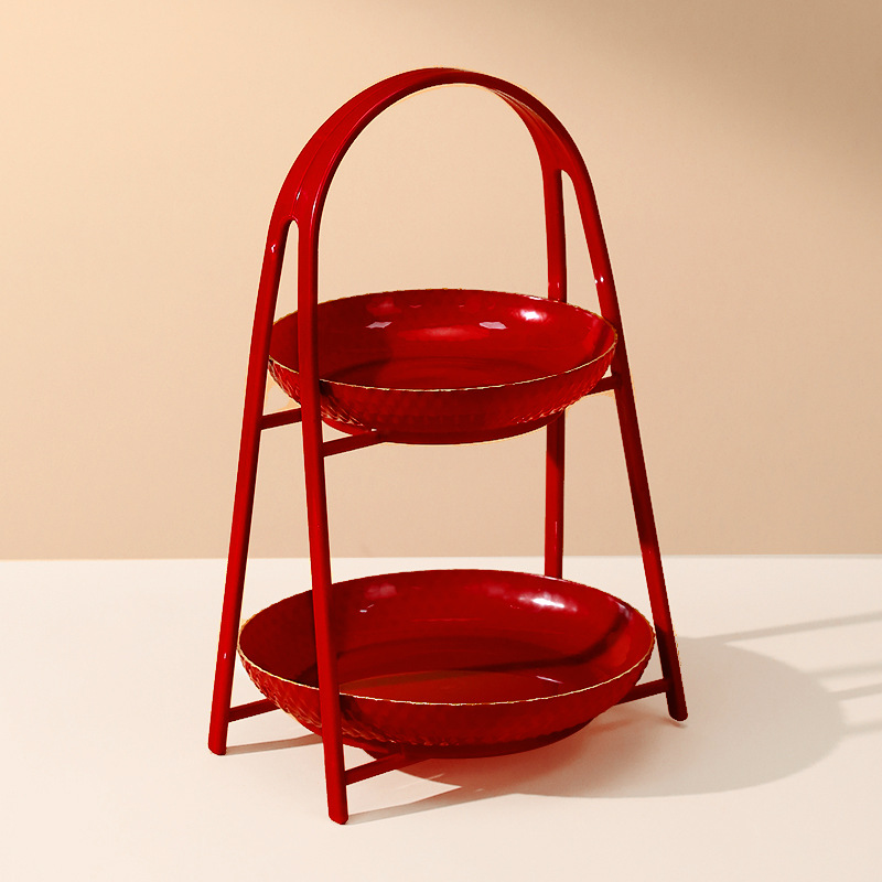 • [더블 레이어] 둥근 빨간색 과일 접시 1세트(과일 접시 홀더 포함)