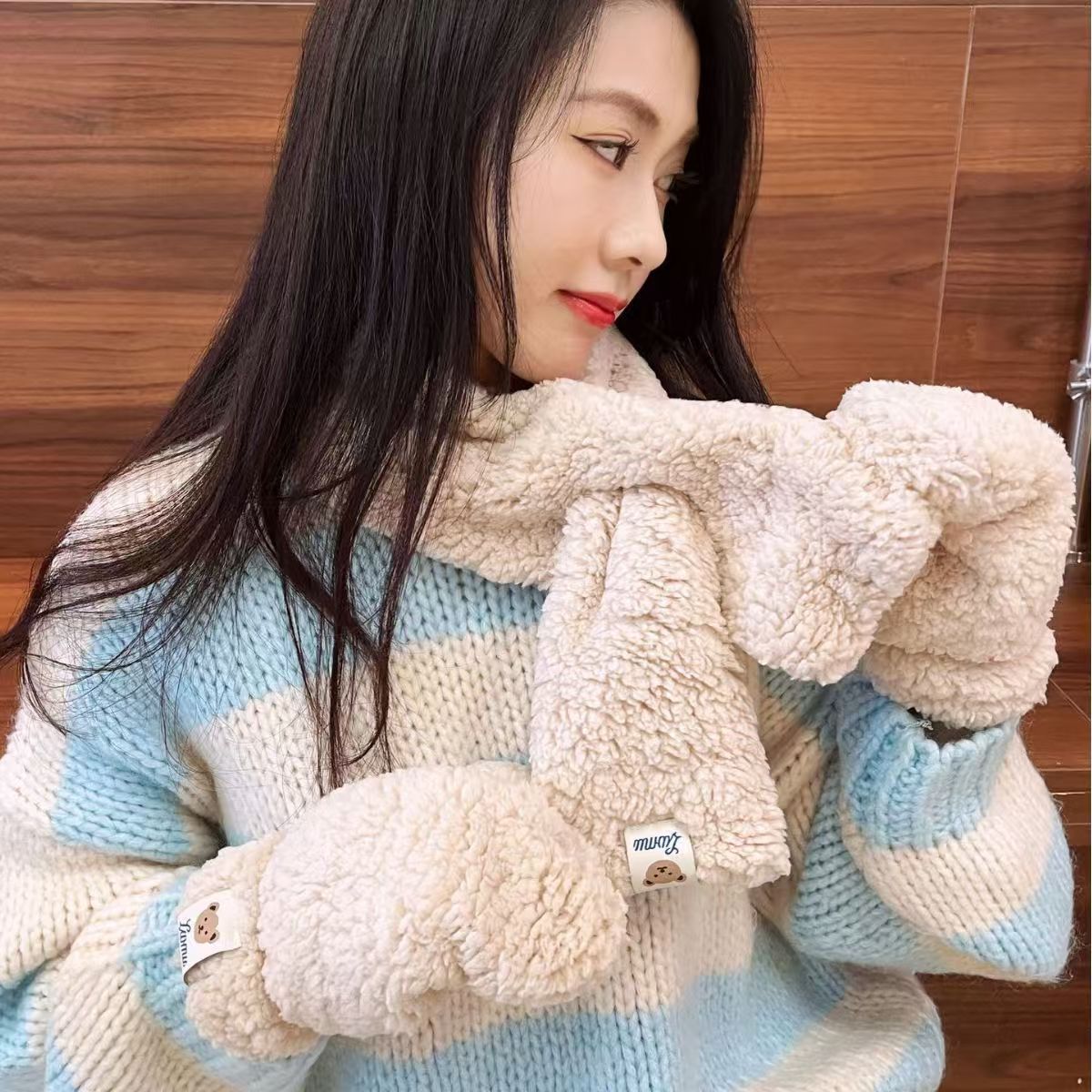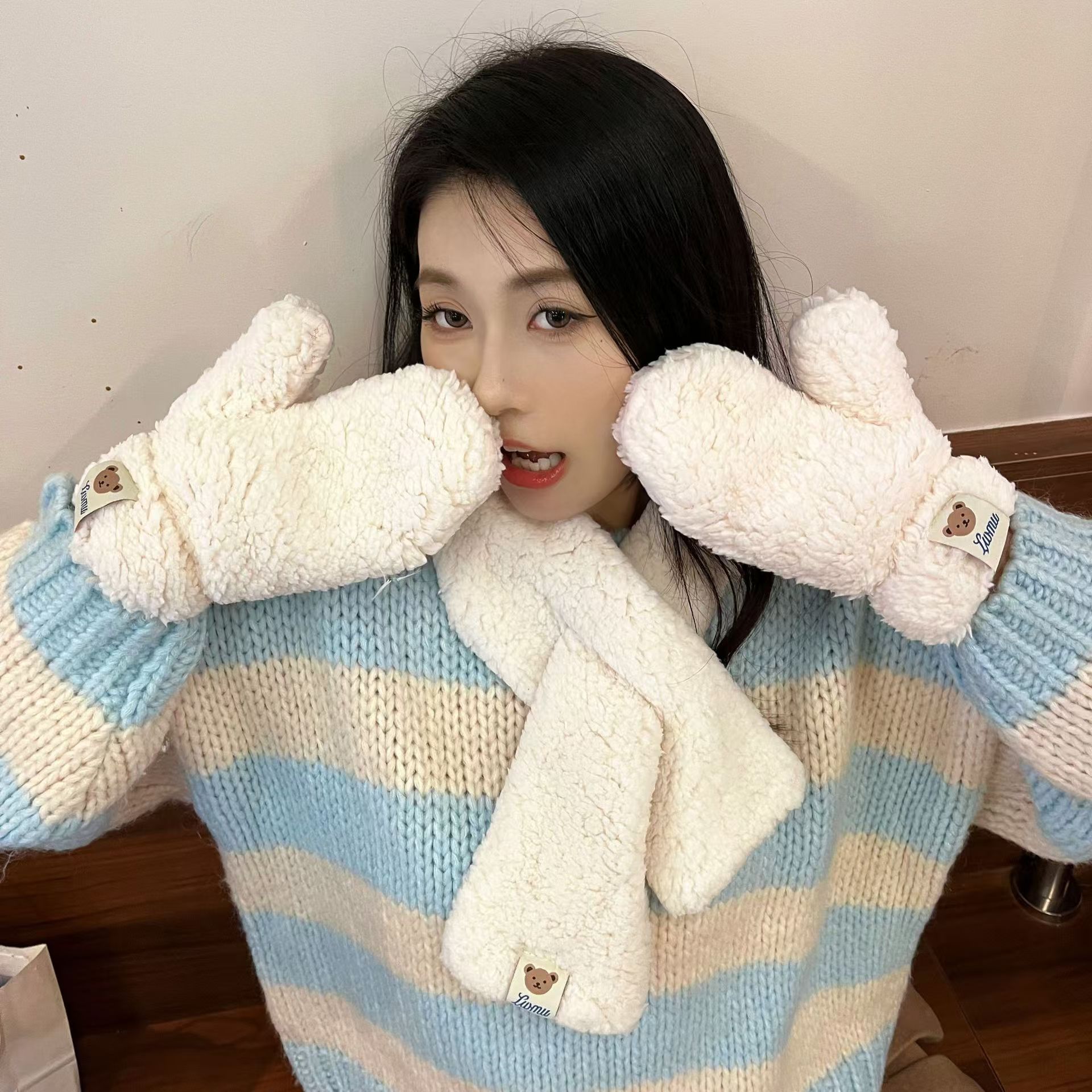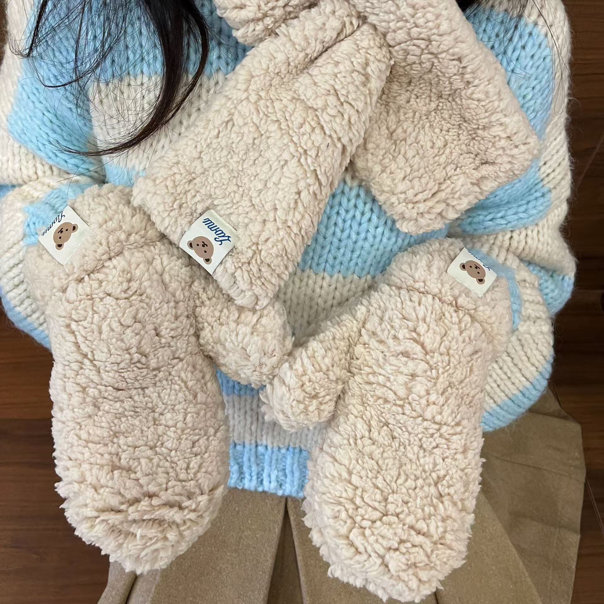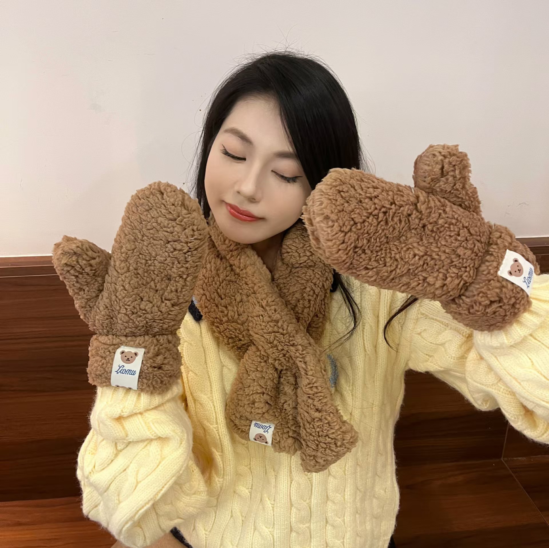 겨울용 사이클링 면 장갑, 소년 소녀용 귀여운 곰 플러시 홀터넥, 겨울 사이클링 장갑, 따뜻하고 두껍고 벨벳스토어 가기