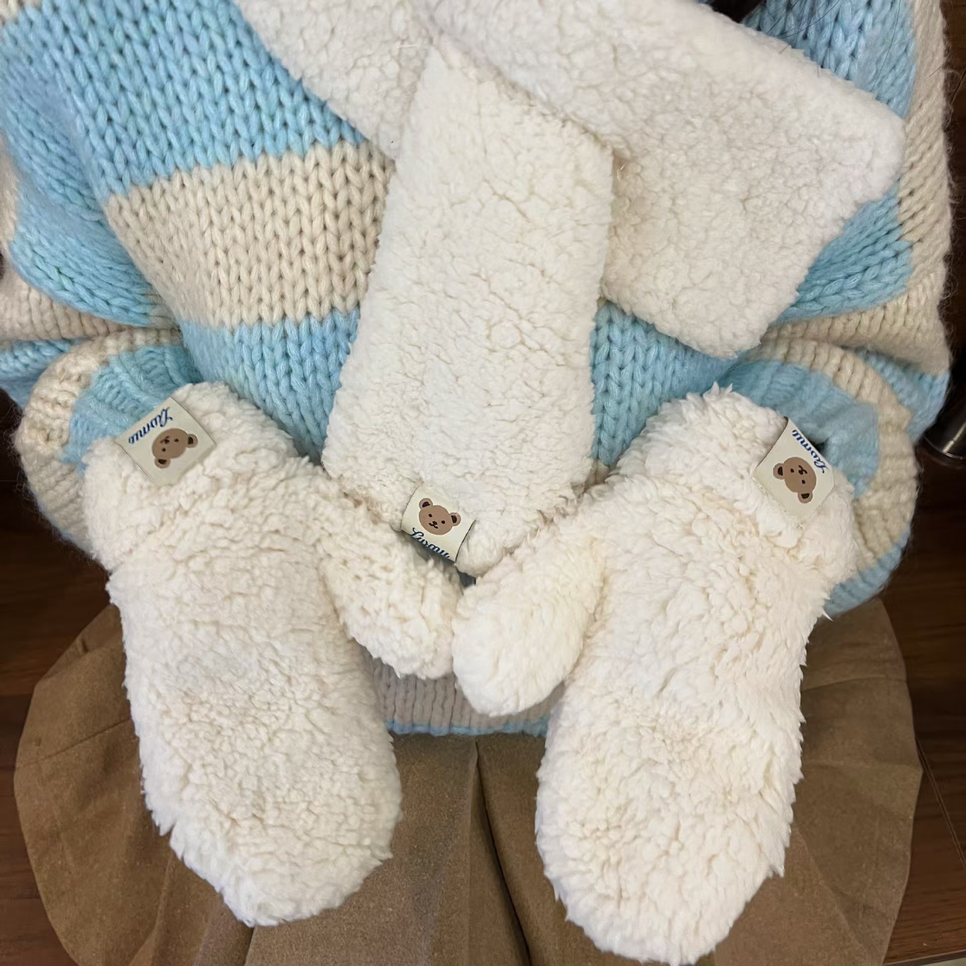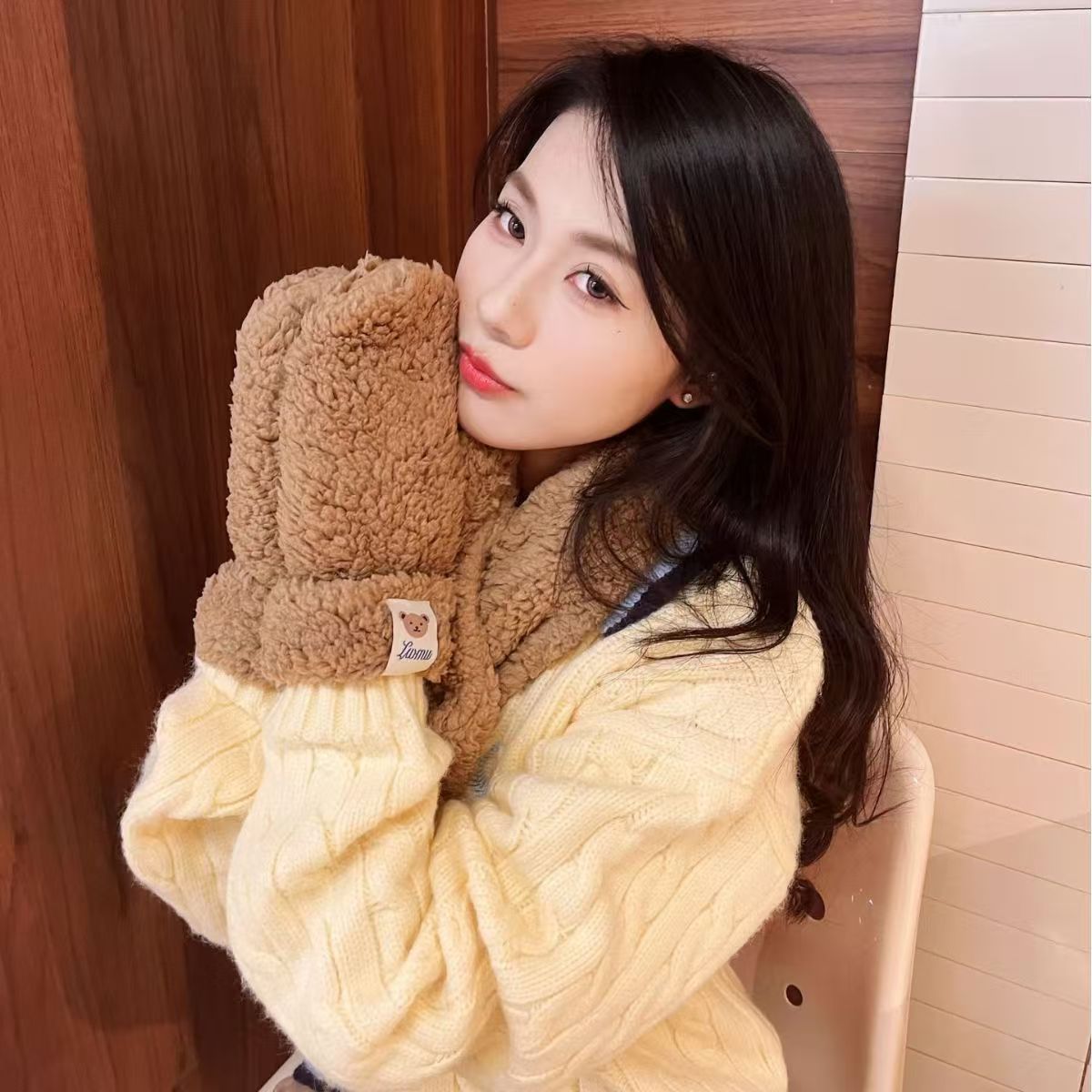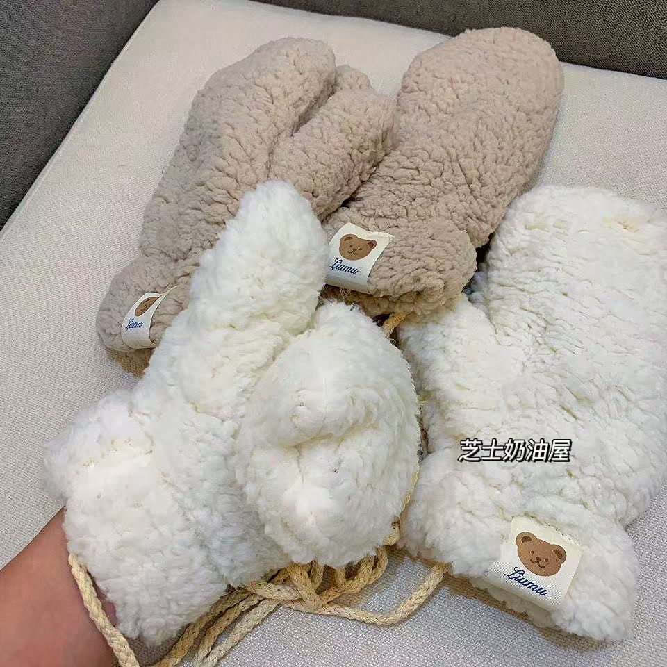 겨울용 사이클링 면 장갑, 소년 소녀용 귀여운 곰 플러시 홀터넥, 겨울 사이클링 장갑, 따뜻하고 두껍고 벨벳