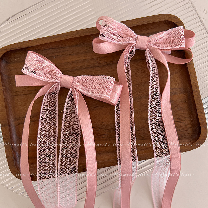 슈퍼 페어리 발레 스타일 활 레이스 리본 헤어핀 소녀 더블 포니 테일 리본 넥타이 헤어 와이드 헤어핀 헤드웨어 도매