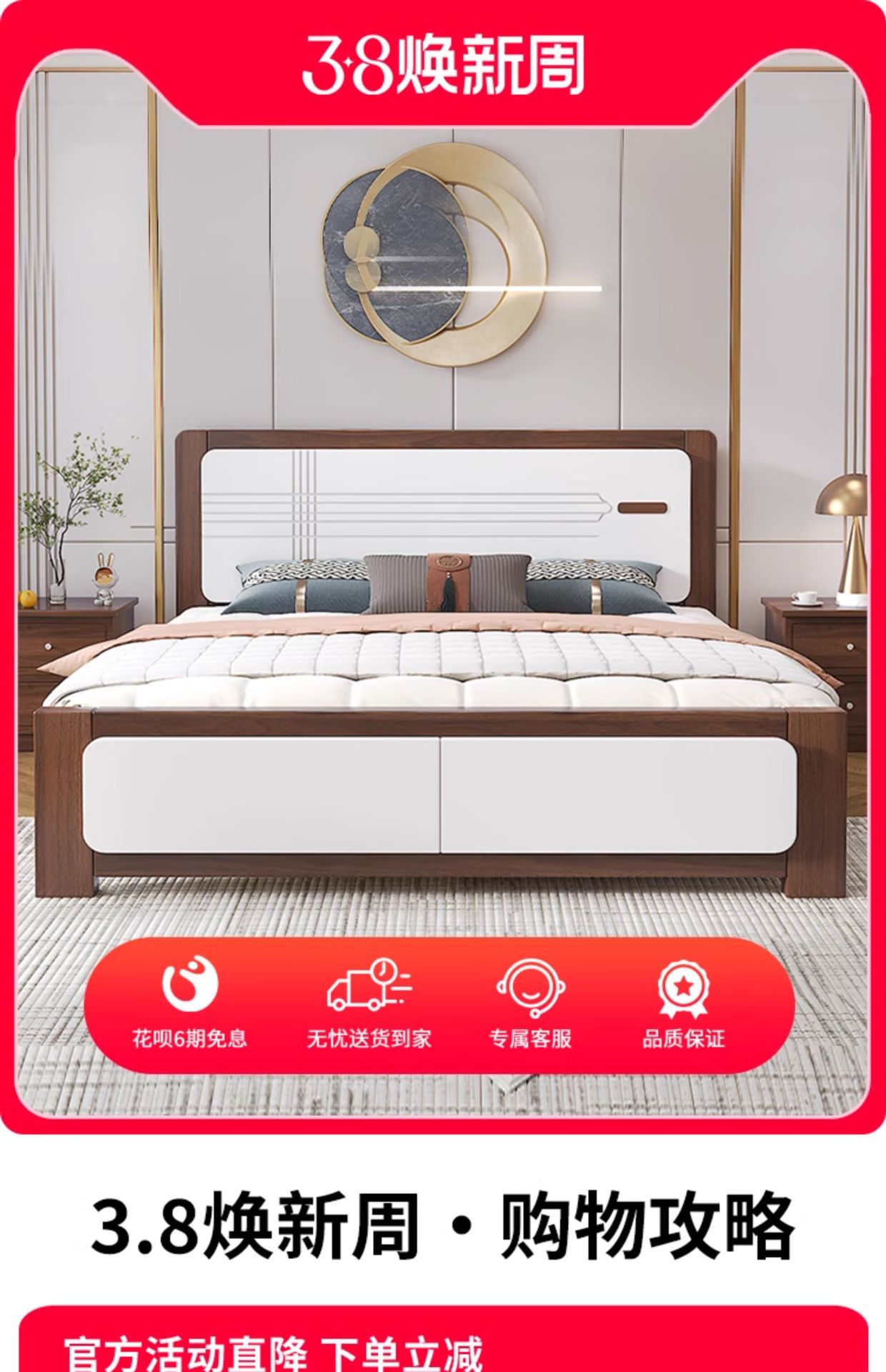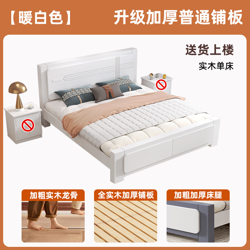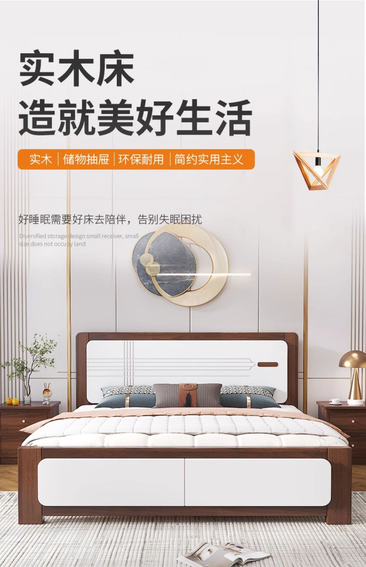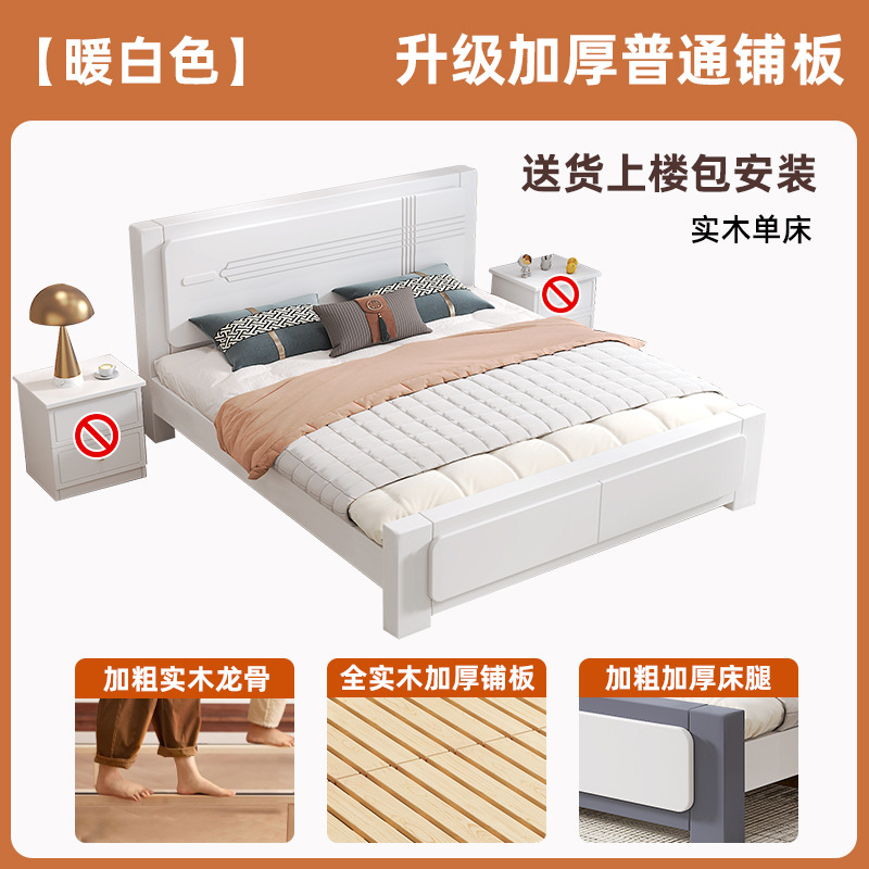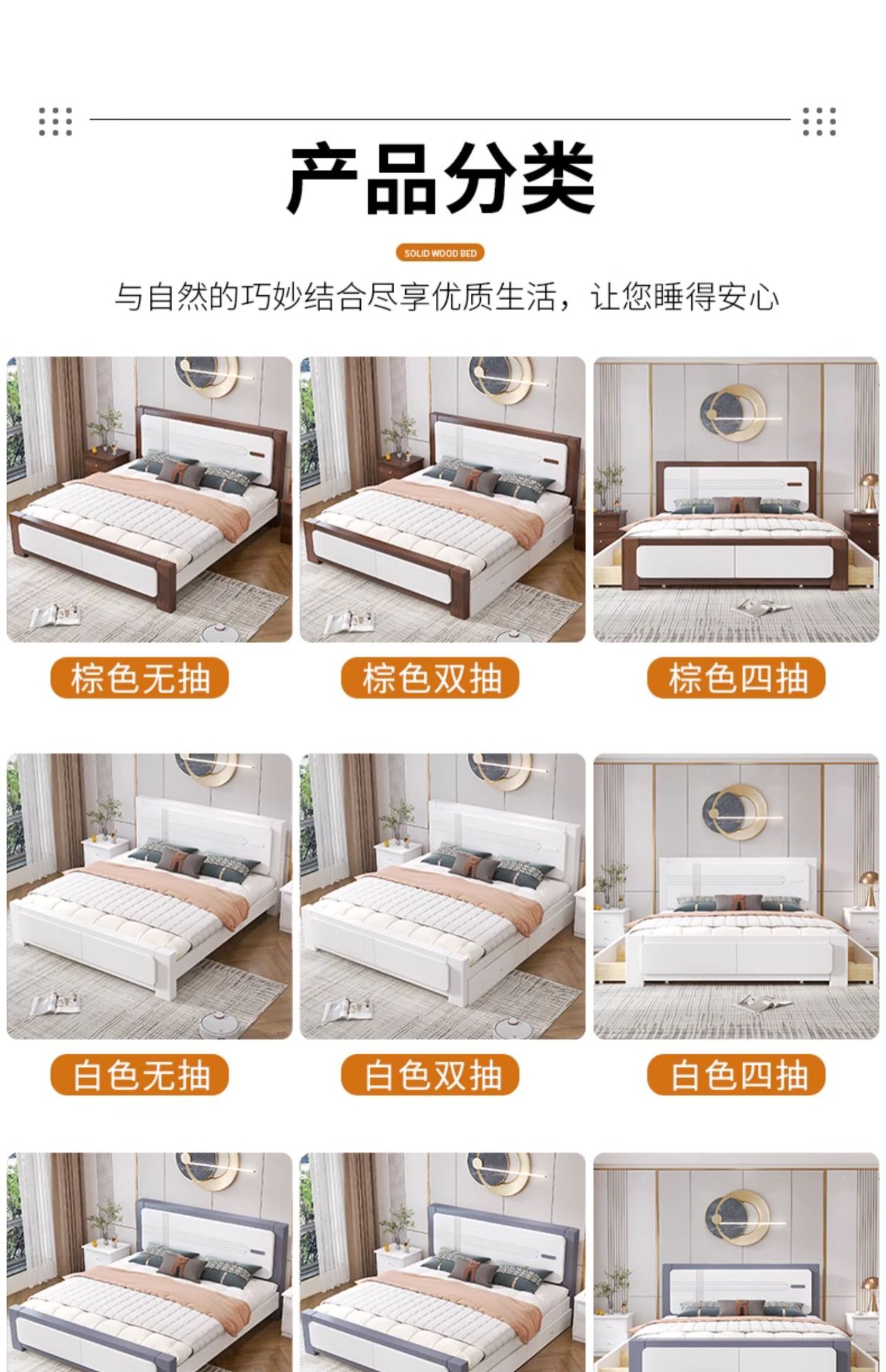 2024 새로운 원목 침대 북유럽 마스터 침실 1.8 더블 침대 1.5m 홈 원목 침대 임대 집 1.2m 싱글 J^스토어 가기