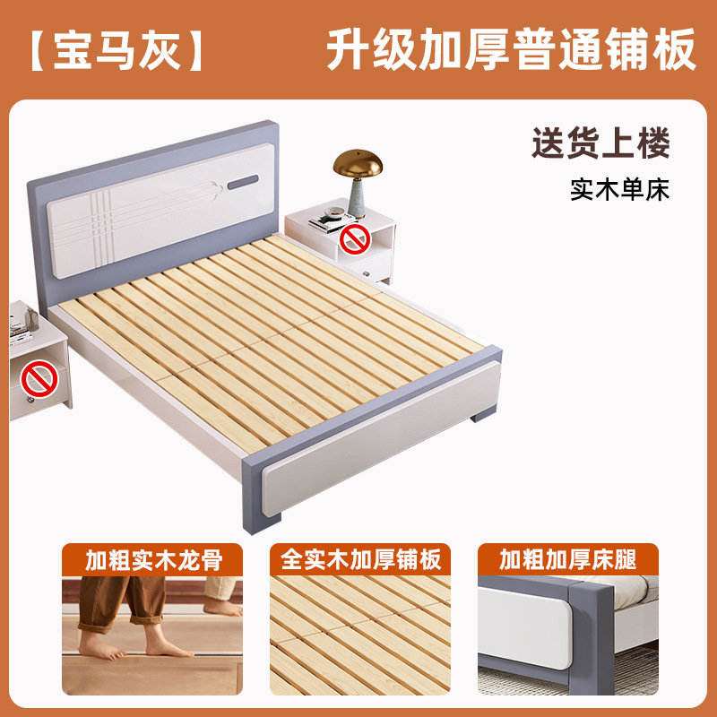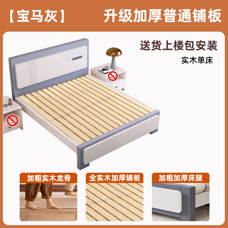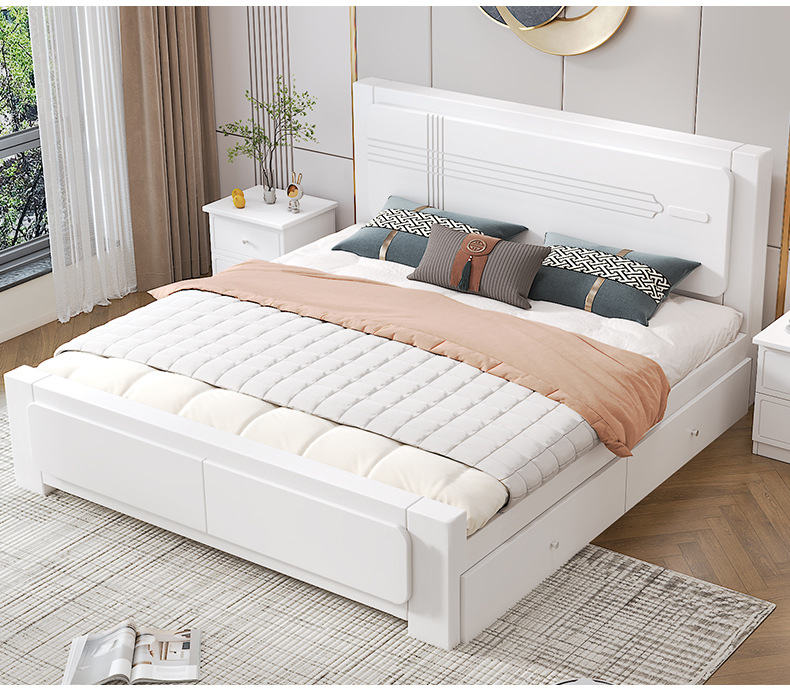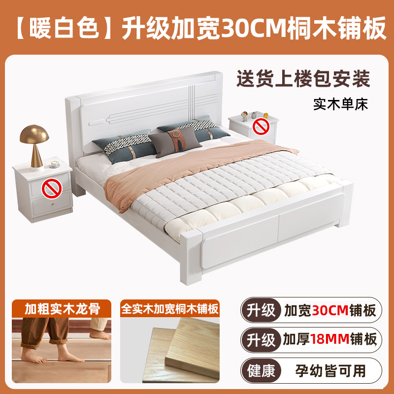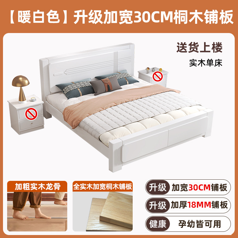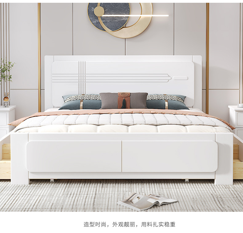 2024 새로운 원목 침대 북유럽 마스터 침실 1.8 더블 침대 1.5m 홈 원목 침대 임대 집 1.2m 싱글 J^스토어 가기