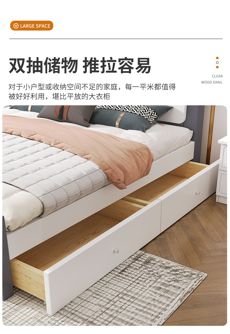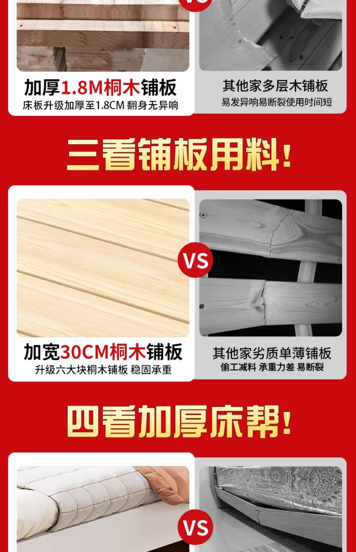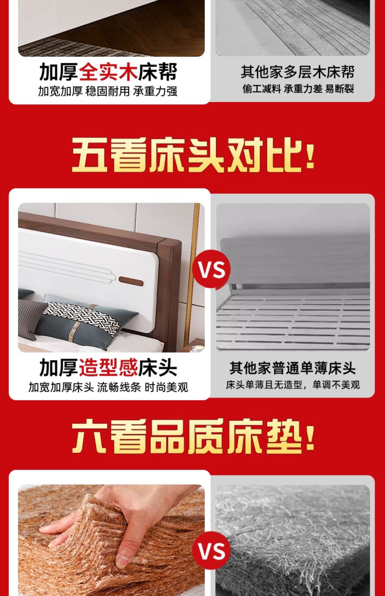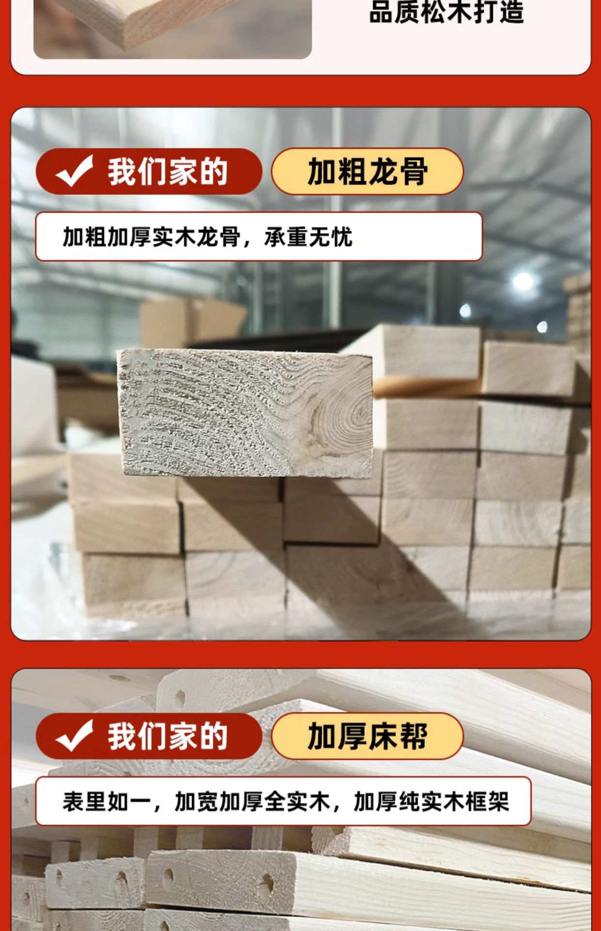 2024 새로운 원목 침대 북유럽 마스터 침실 1.8 더블 침대 1.5m 홈 원목 침대 임대 집 1.2m 싱글 J^스토어 가기