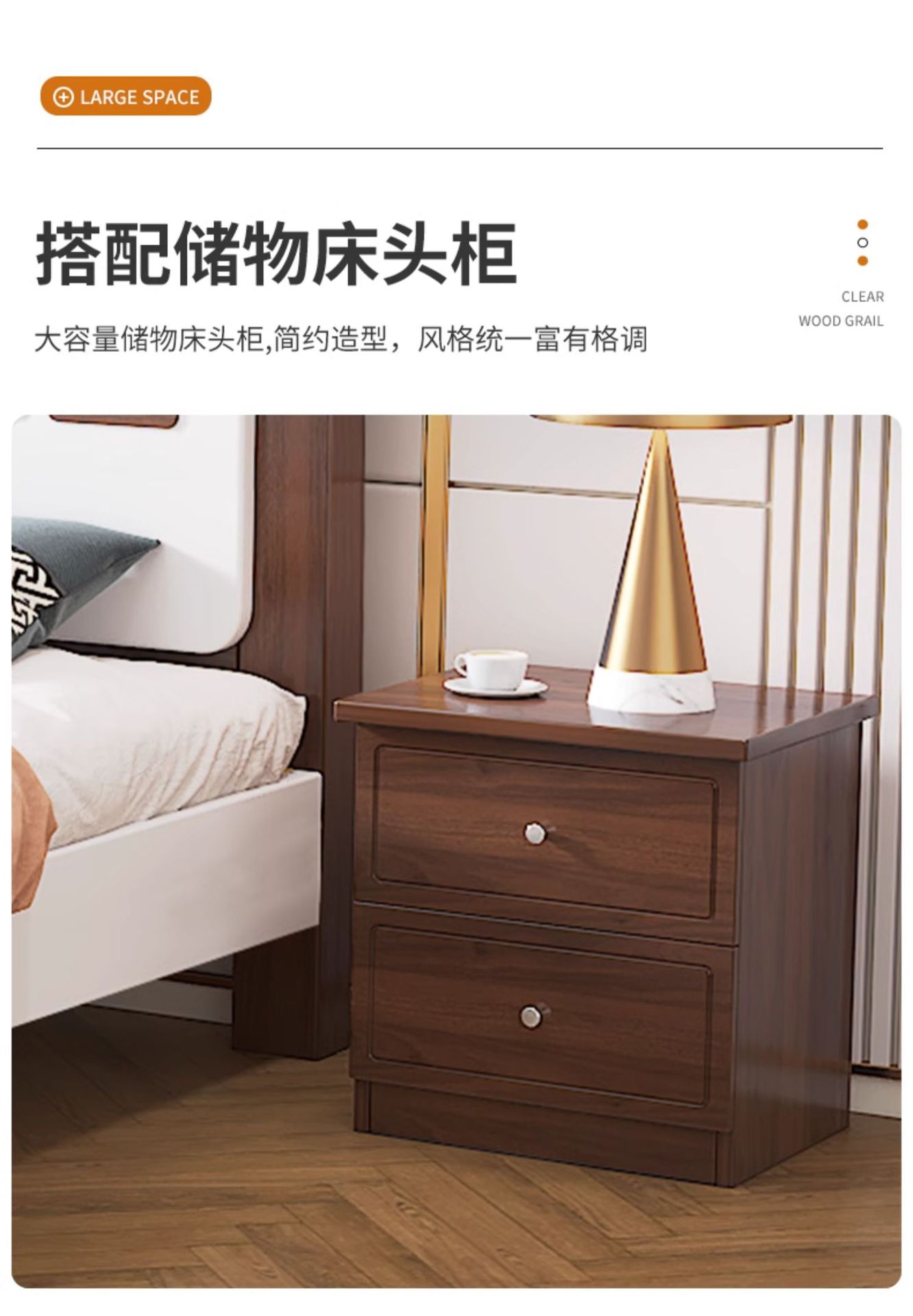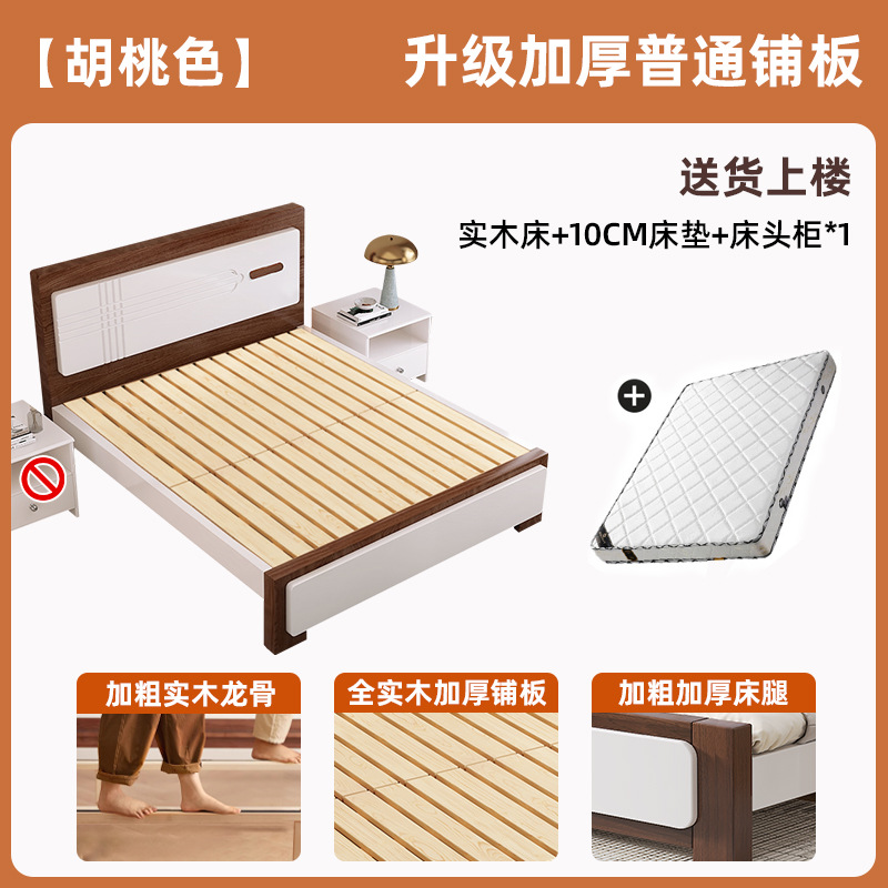 • [월넛 컬러] 원목 침대, 넓고 두꺼워진 침대판 + 5CM 브라운 매트 + 침대 옆 탁자 * 2 [위층 포함]