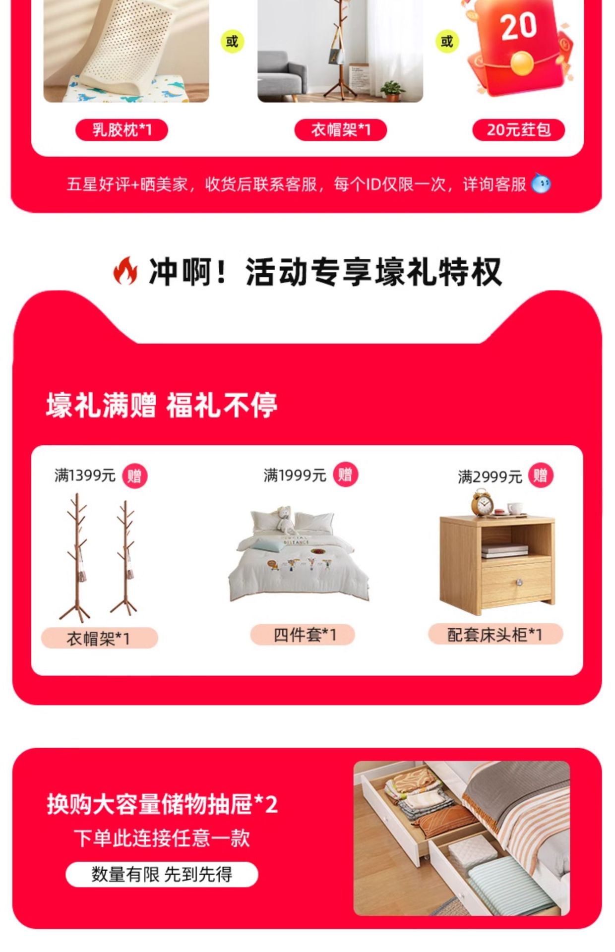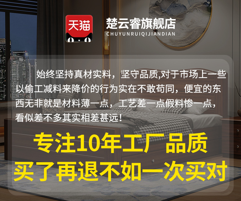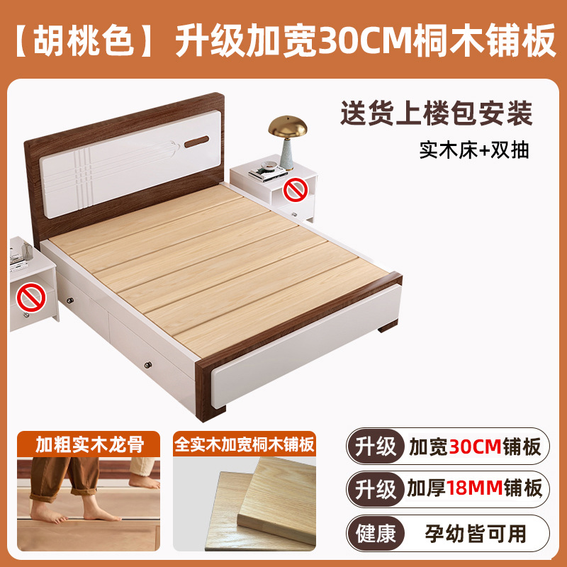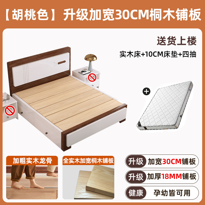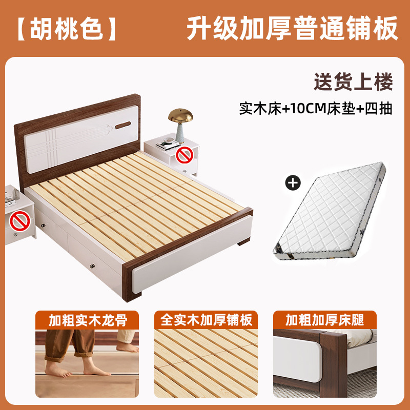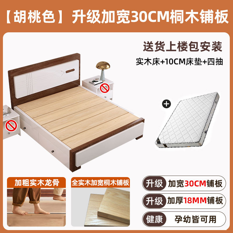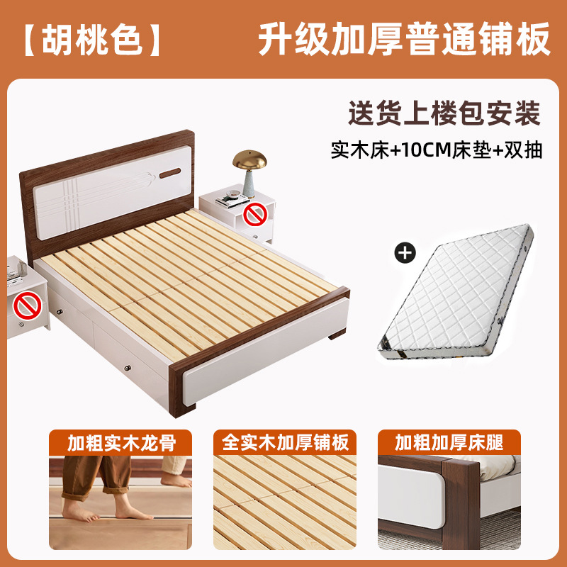 • [월넛 컬러] 원목 침대, 넓고 두꺼워진 침대판 + 10CM 브라운 매트 + 이중 서랍 [위층 패키지 설치]