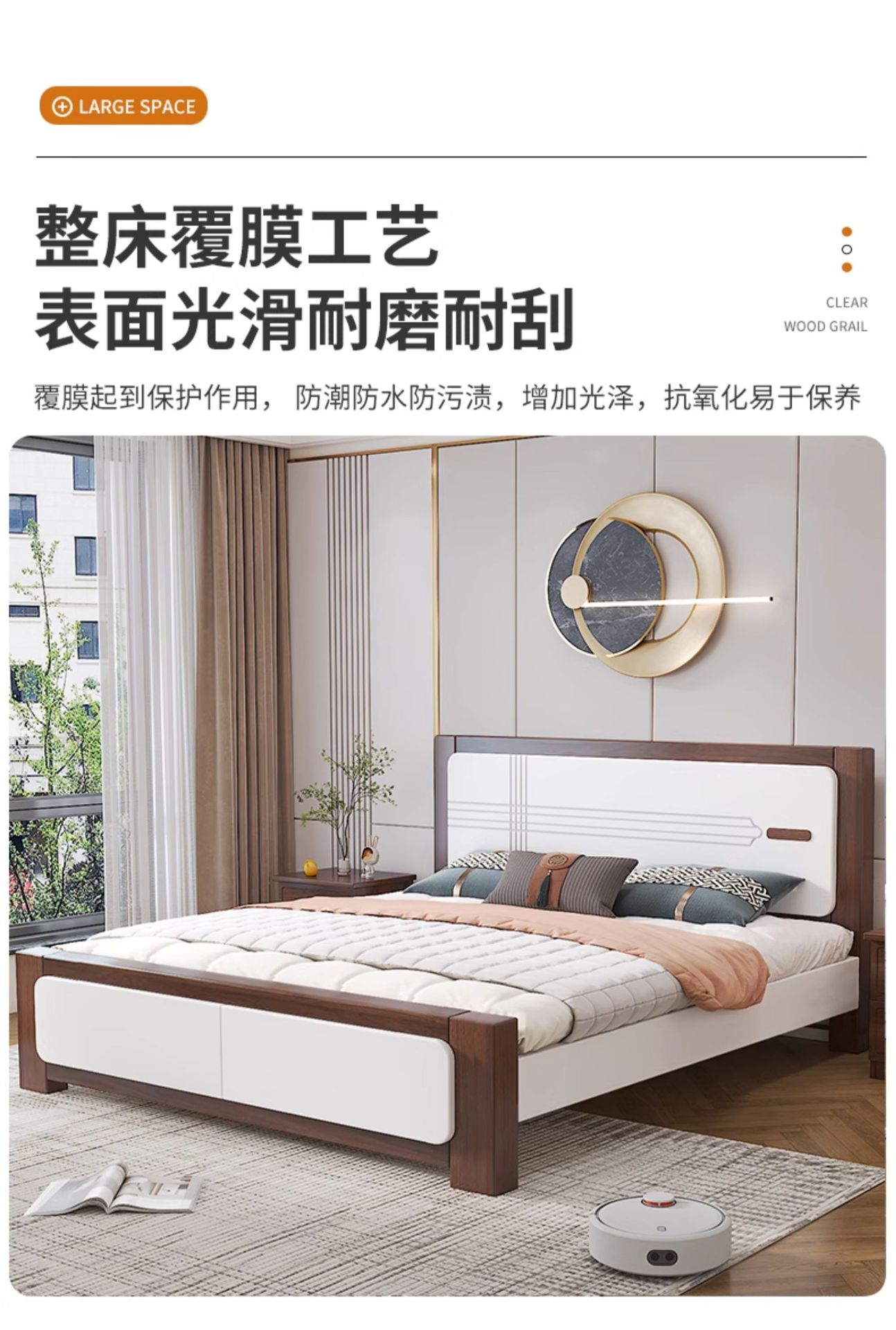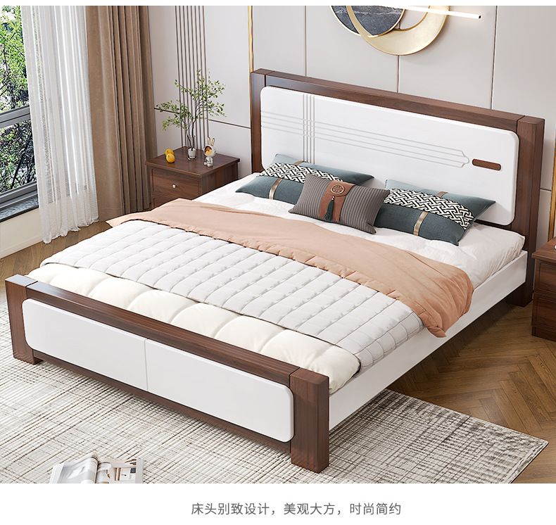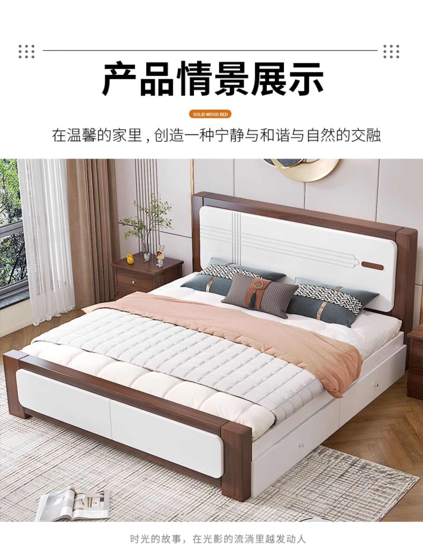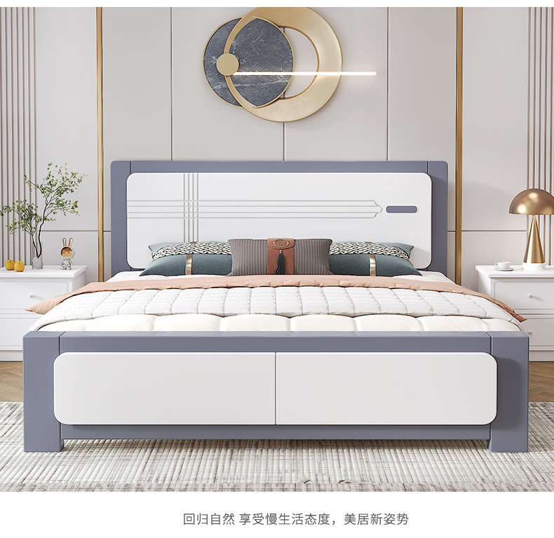 2024 새로운 원목 침대 북유럽 마스터 침실 1.8 더블 침대 1.5m 홈 원목 침대 임대 집 1.2m 싱글 J^