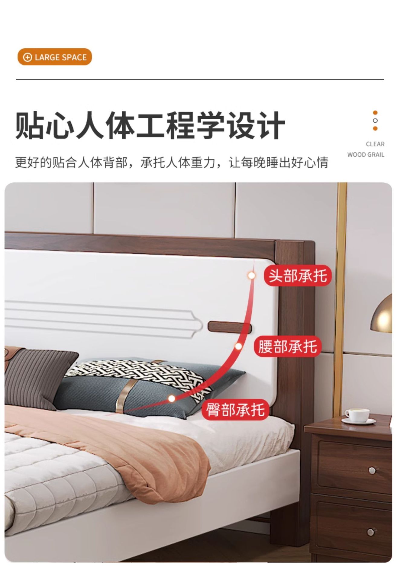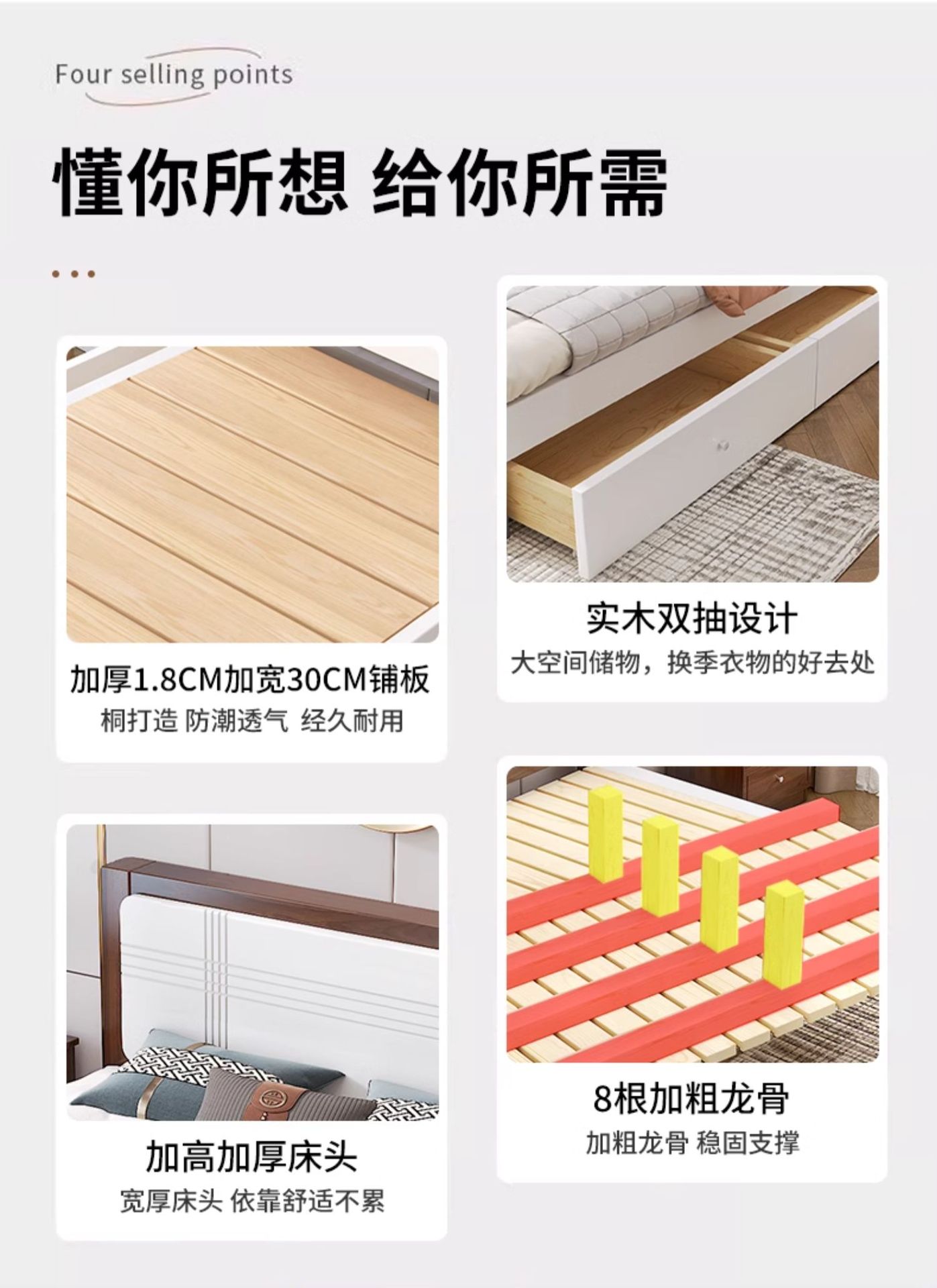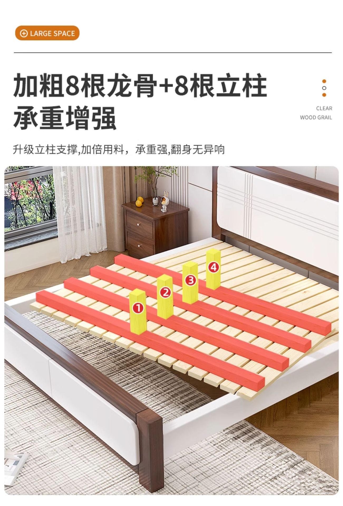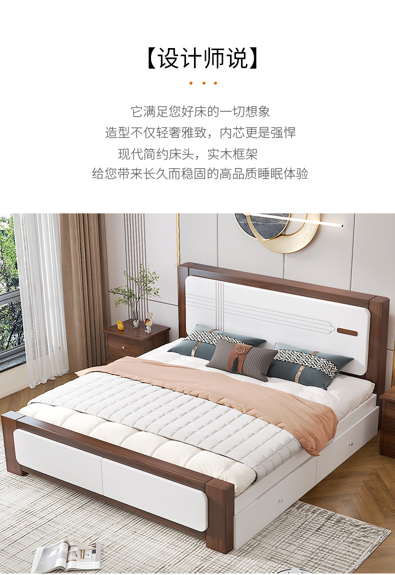 2024 새로운 원목 침대 북유럽 마스터 침실 1.8 더블 침대 1.5m 홈 원목 침대 임대 집 1.2m 싱글 J^