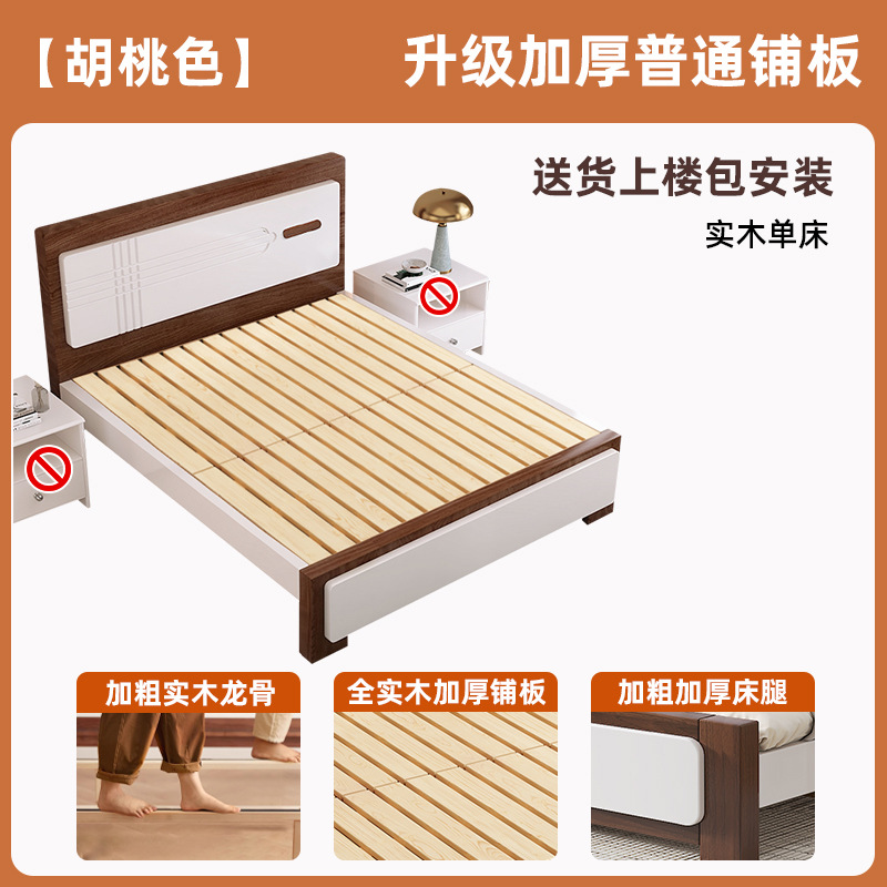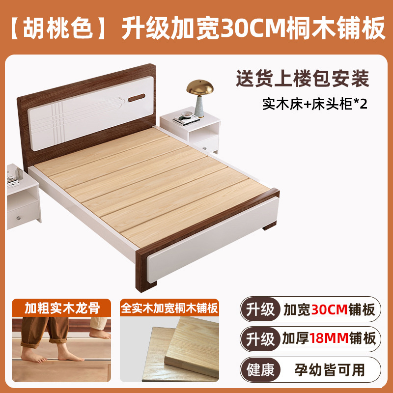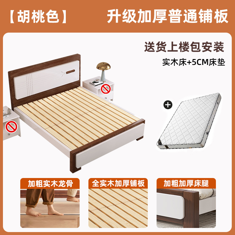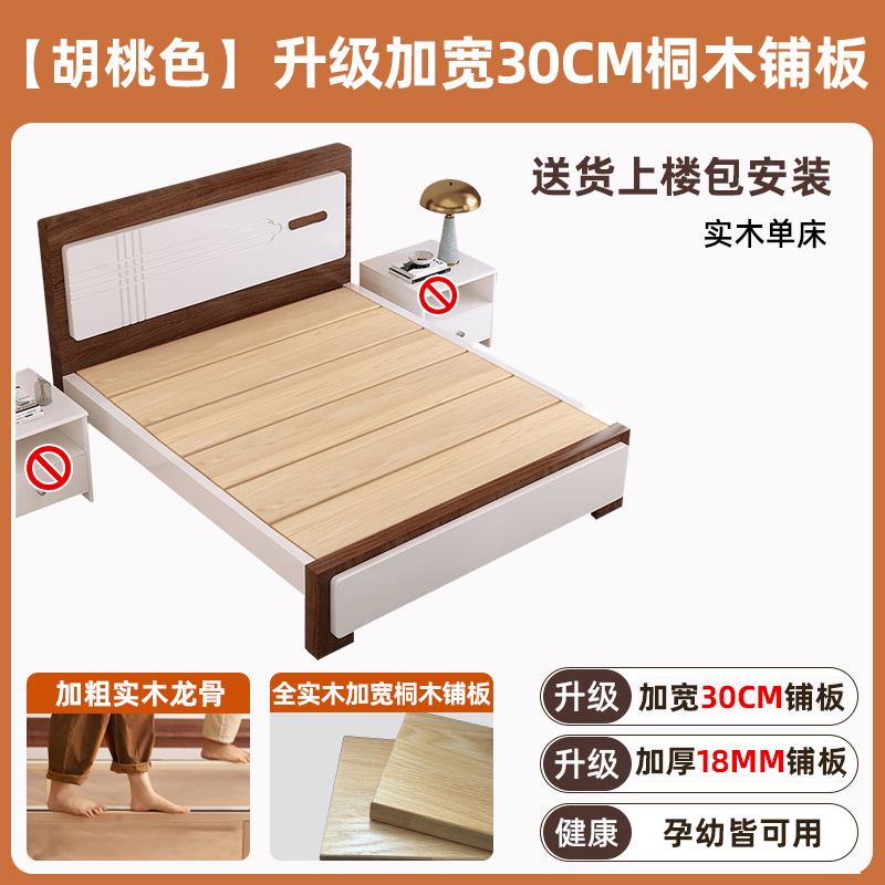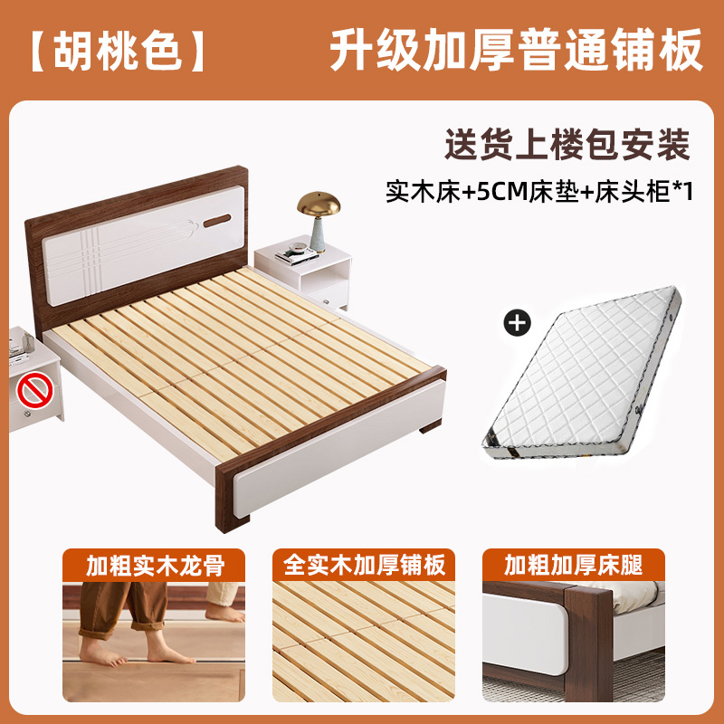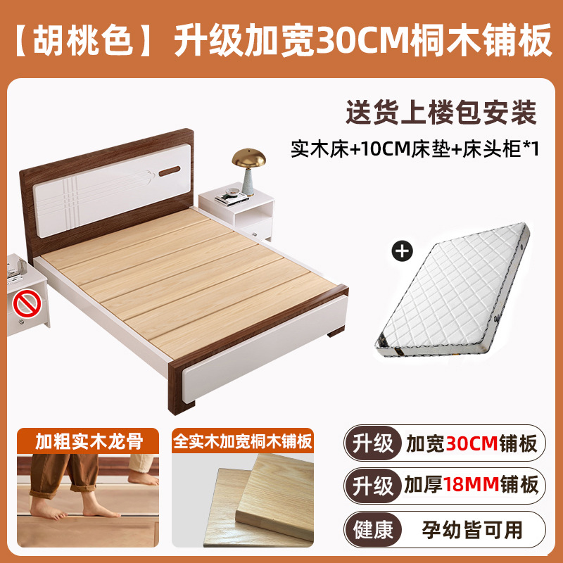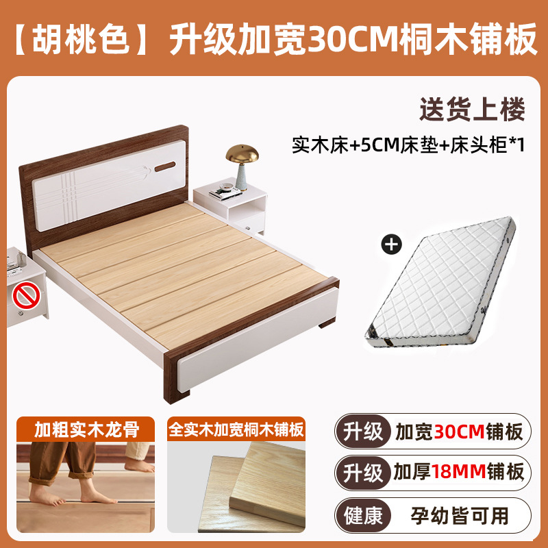 • [월넛 컬러] 원목 침대, 넓고 두꺼워진 침대판 + 5CM 브라운 매트 + 침대 옆 탁자 * 2 [위층 패키지 설치]