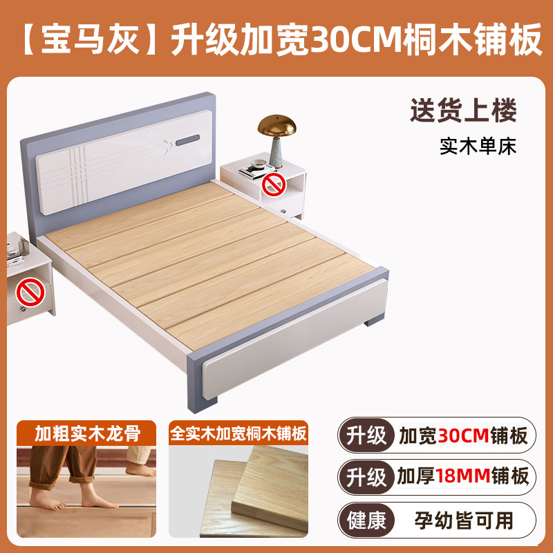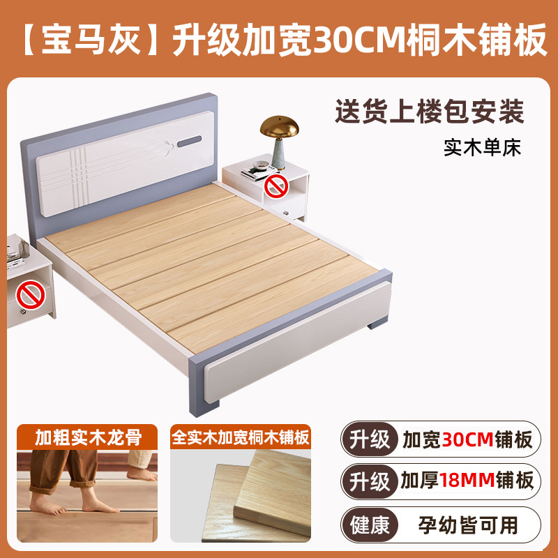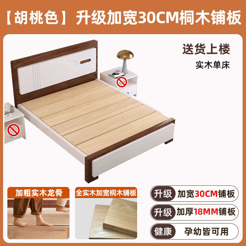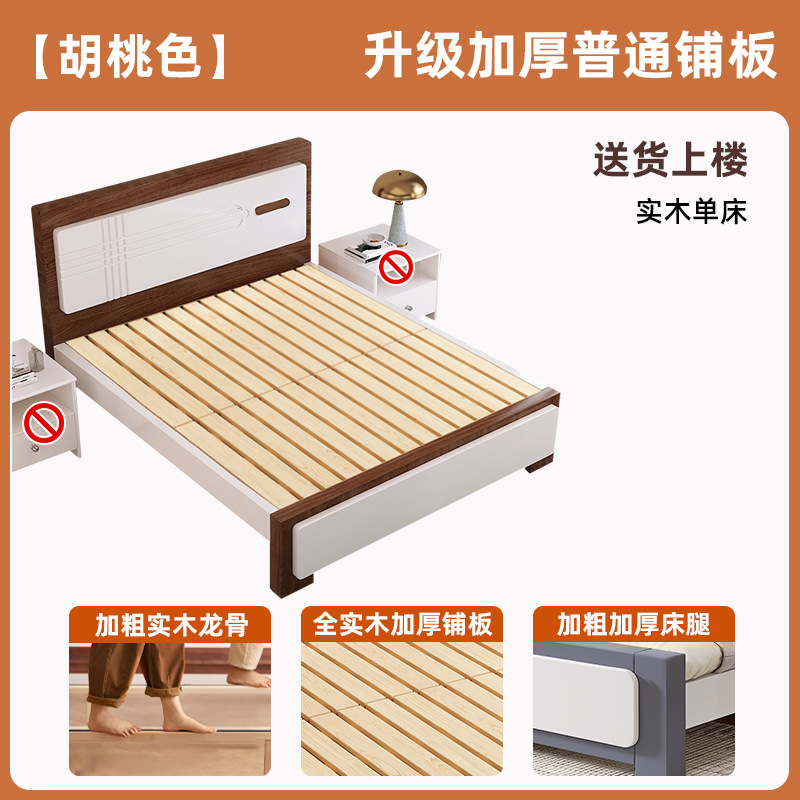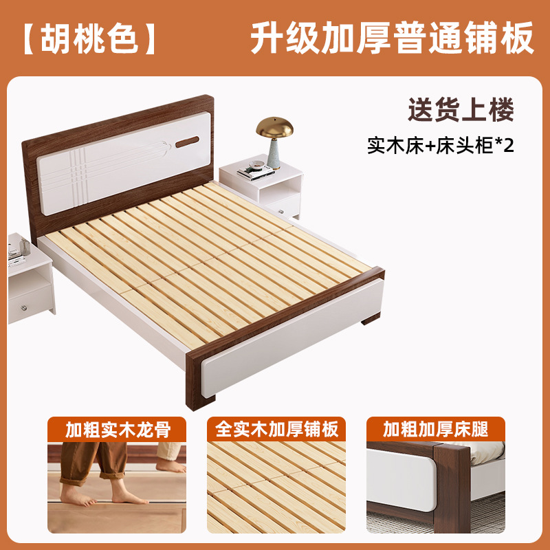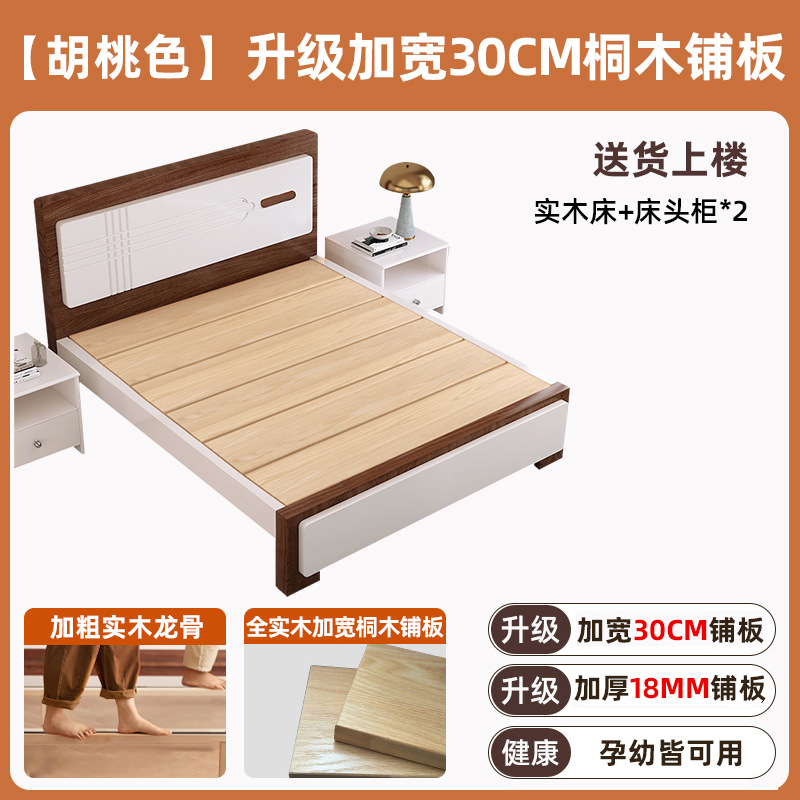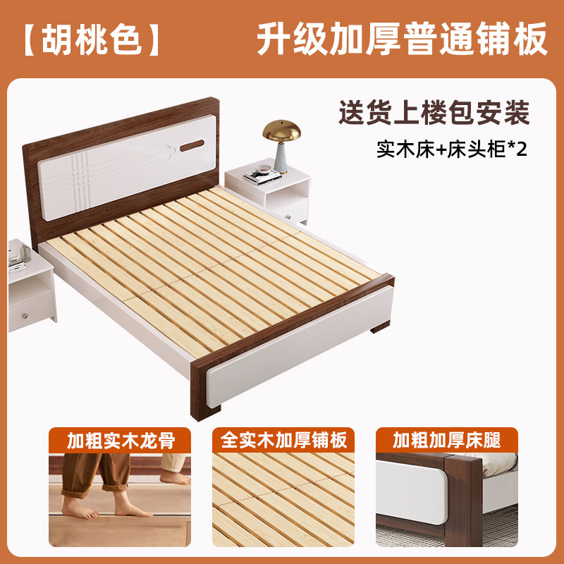 • [월넛 컬러] 원목 침대, 넓고 두꺼워진 침대판 + 5CM 브라운 매트 + 침대 옆 탁자 * 2 [위층 패키지 설치]