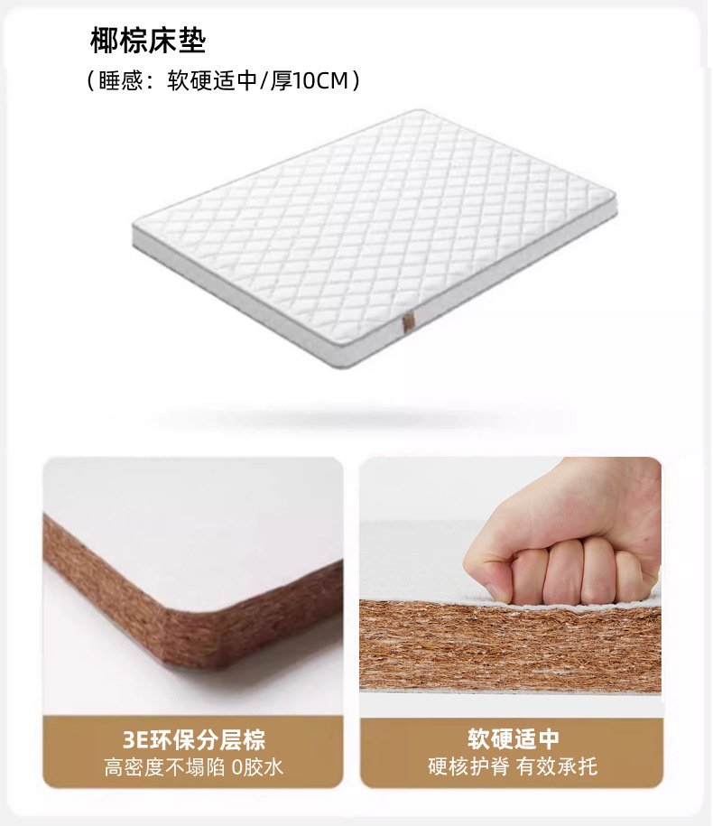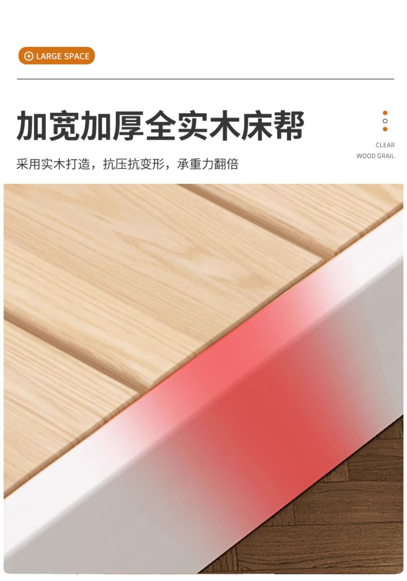 • [월넛 컬러] 원목 침대, 넓고 두꺼워진 침대판 + 5CM 브라운 매트 + 침대 옆 탁자 * 1 [위층 포함]