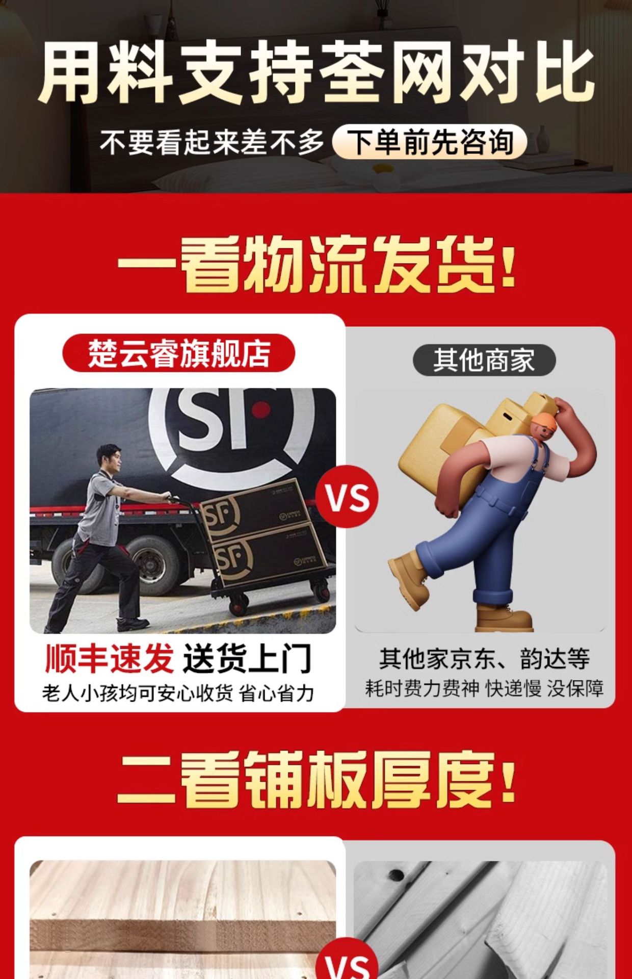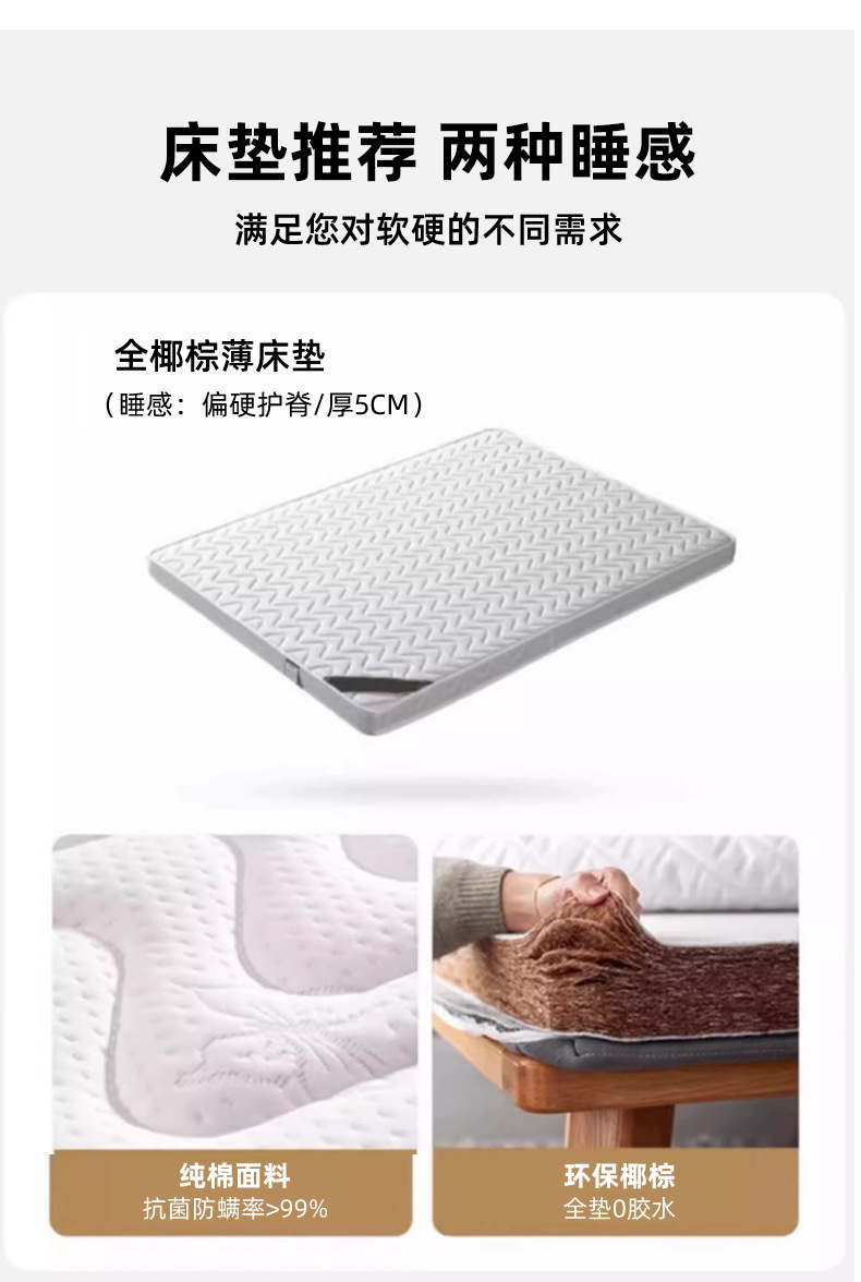 • [월넛 컬러] 원목 침대, 넓고 두꺼워진 침대판 + 5CM 브라운 매트 + 침대 옆 탁자 * 1 [위층 패키지 설치]